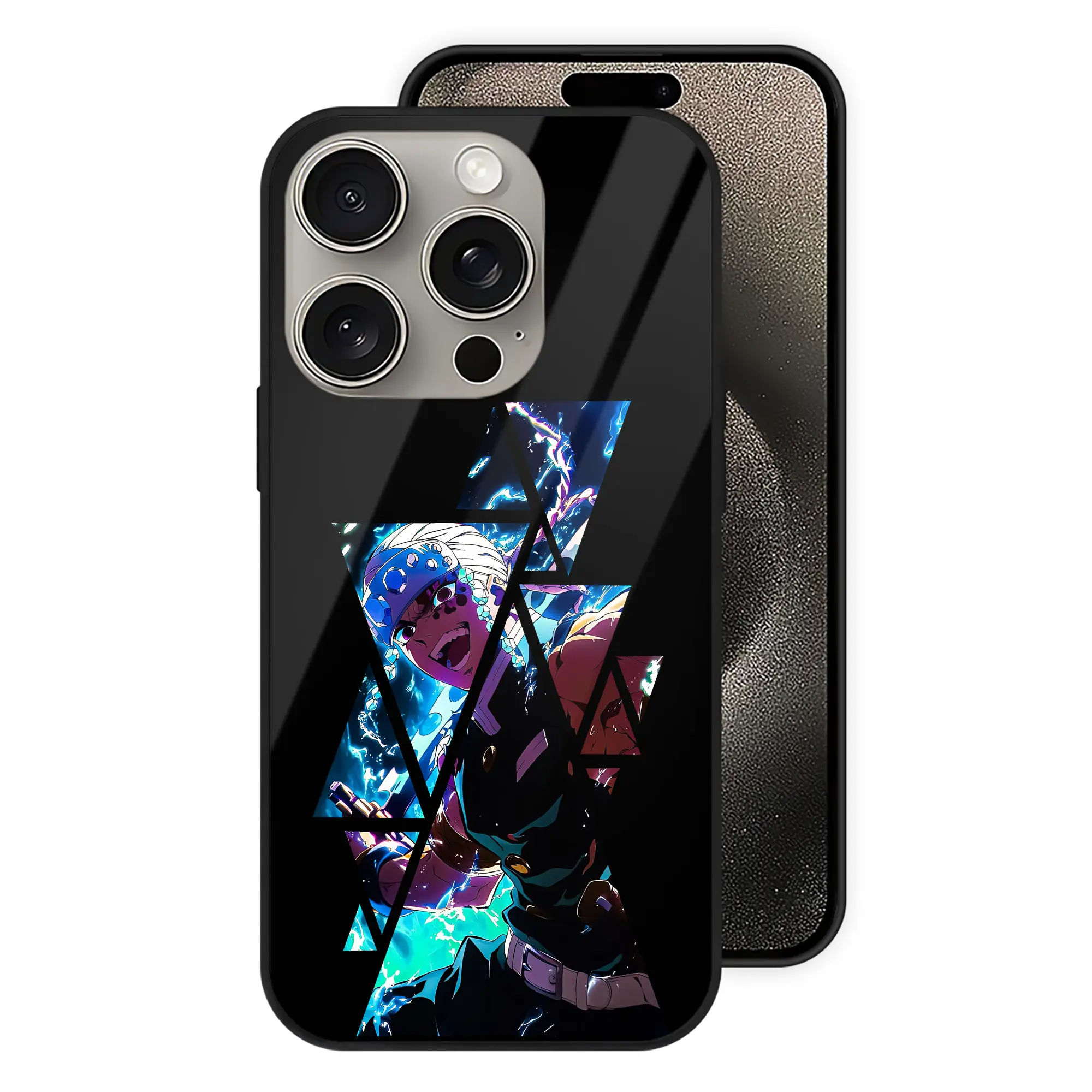 鬼滅の刃 グッズ,宇髄 天元 - IPhone15Pro対応 ・ スマホケース ・ 背面ガラス ・ TPU+強化ガラス ・ 耐衝撃 ・ 黄変防止 ・ ワイヤレス充電対応 ・ 3D立体ボタン