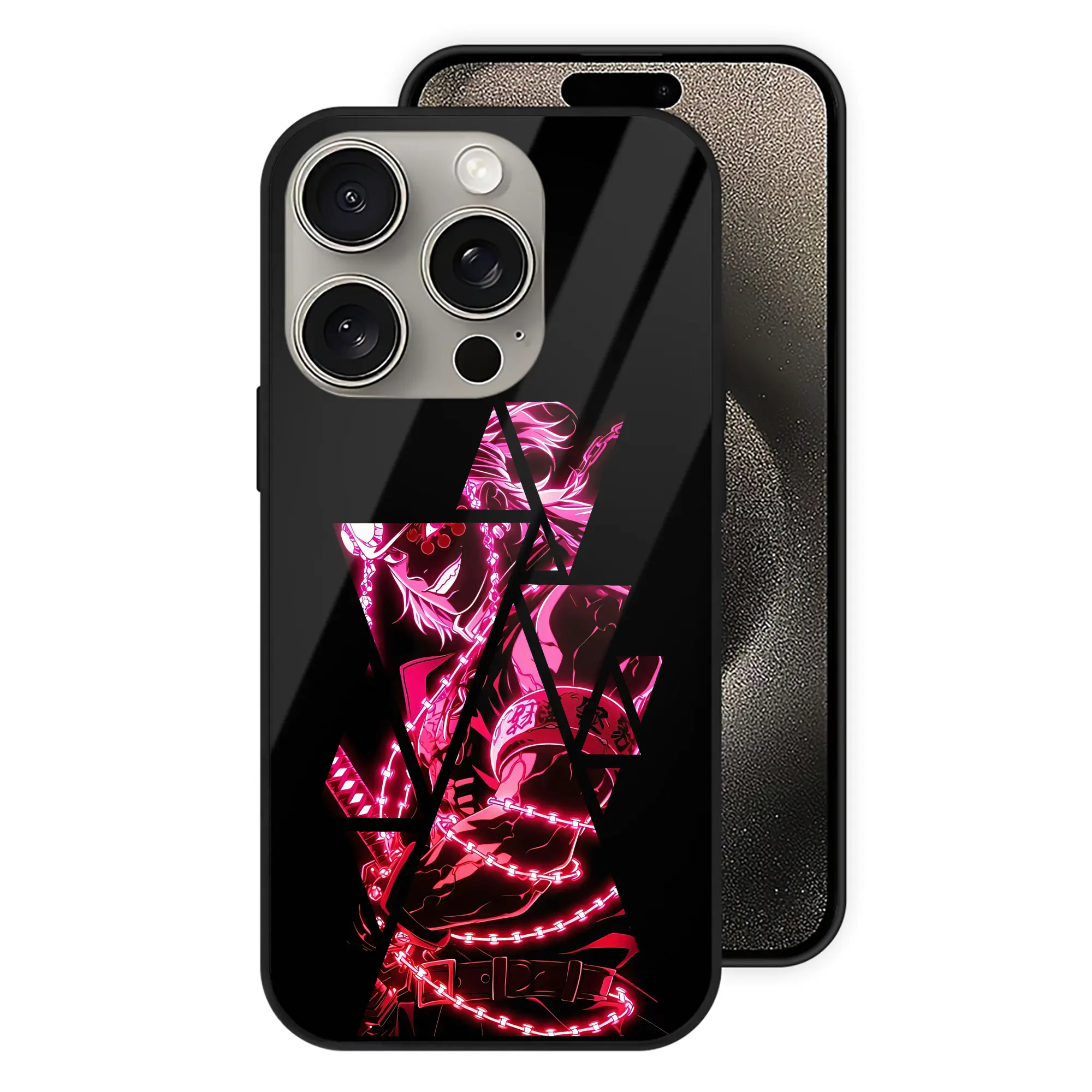 鬼滅の刃 グッズ,宇髄 天元 - IPhone15Pro対応 ・ スマホケース ・ 背面ガラス ・ TPU+強化ガラス ・ 耐衝撃 ・ 黄変防止 ・ ワイヤレス充電対応 ・ 3D立体ボタン