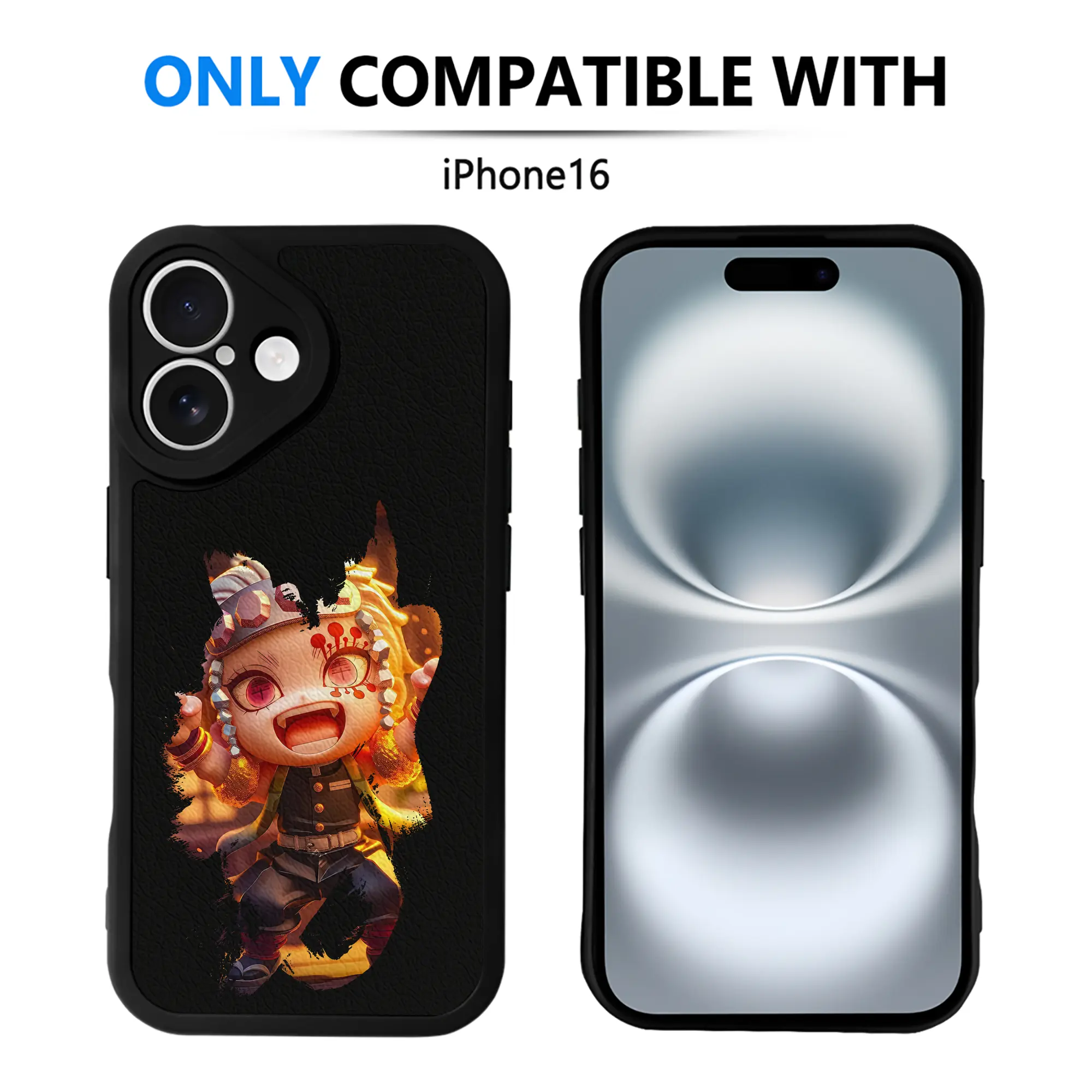 鬼滅の刃 グッズ,宇髄 天元 - IPhone 16シリーズ対応 ・ シリコンスマホケース ・ レザー調 ・ 高精度フィット ・ 耐衝撃 ・ ワイヤレス充電対応 ・ 精密カット