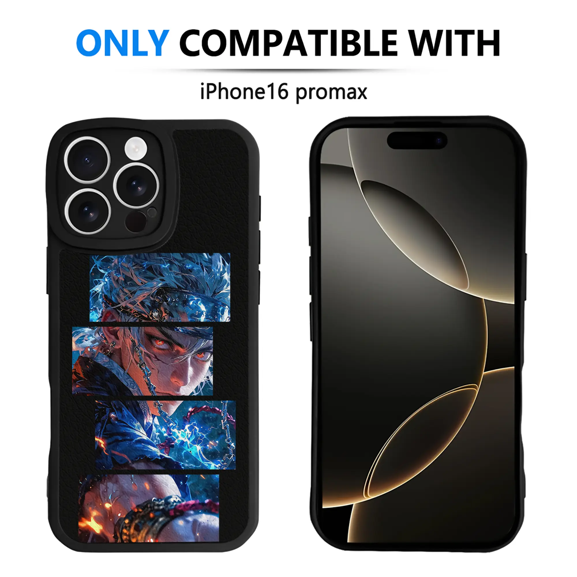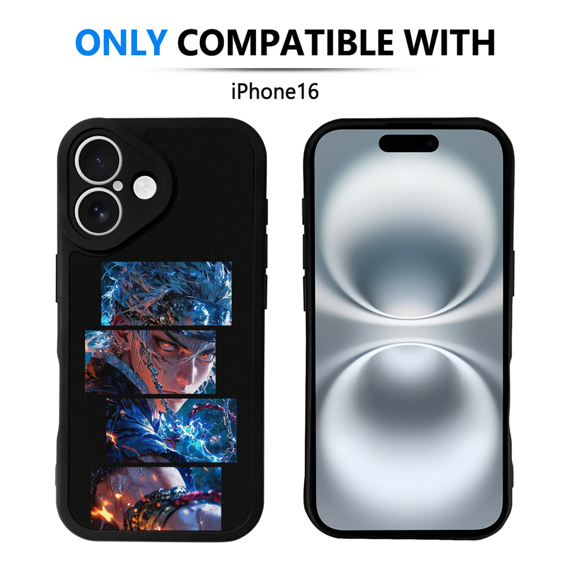 鬼滅の刃 グッズ,宇髄 天元 - IPhone 16シリーズ対応 ・ シリコンスマホケース ・ レザー調 ・ 高精度フィット ・ 耐衝撃 ・ ワイヤレス充電対応 ・ 精密カット