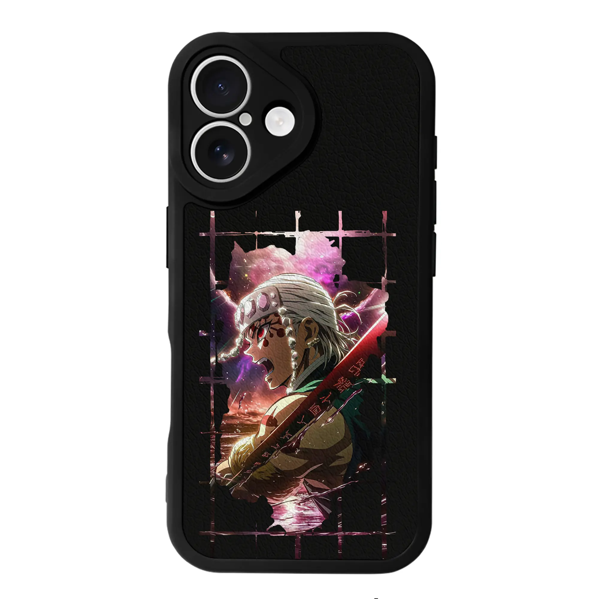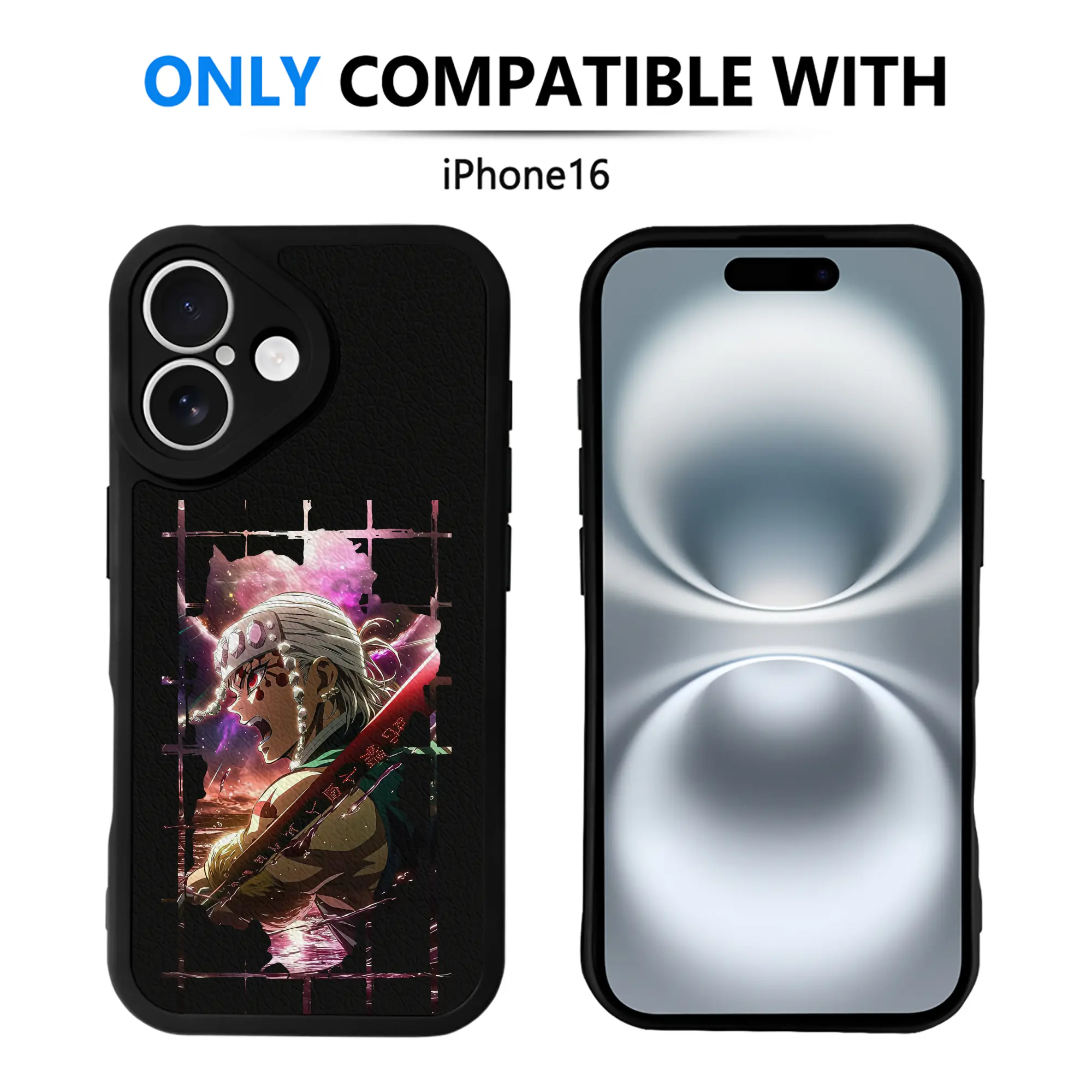 鬼滅の刃 グッズ,宇髄 天元 - IPhone 16シリーズ対応 ・ シリコンスマホケース ・ レザー調 ・ 高精度フィット ・ 耐衝撃 ・ ワイヤレス充電対応 ・ 精密カット
