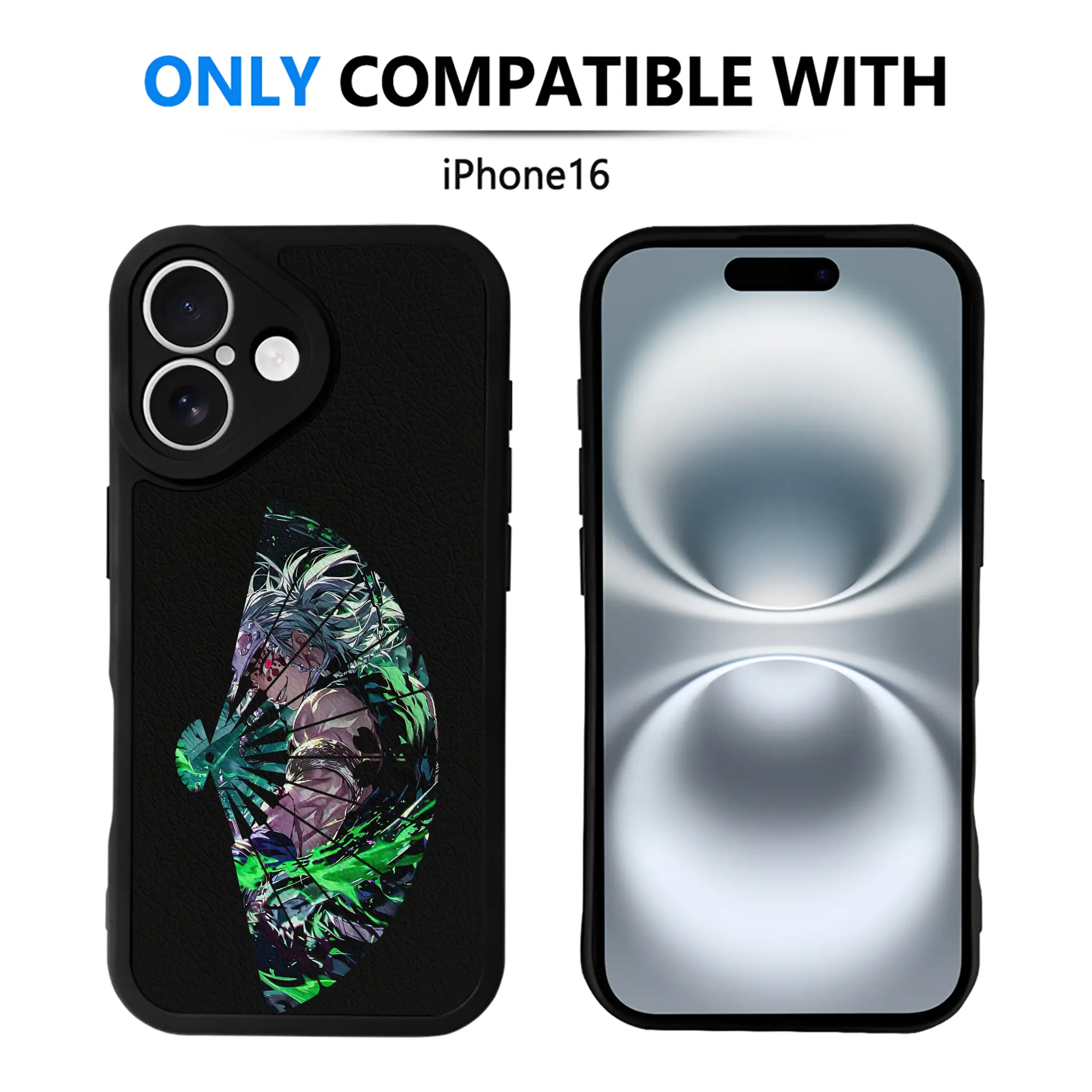 鬼滅の刃 グッズ,宇髄 天元 - IPhone 16シリーズ対応 ・ シリコンスマホケース ・ レザー調 ・ 高精度フィット ・ 耐衝撃 ・ ワイヤレス充電対応 ・ 精密カット
