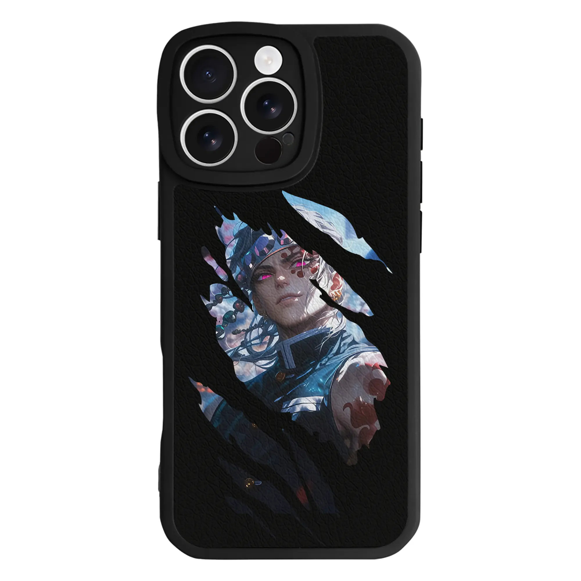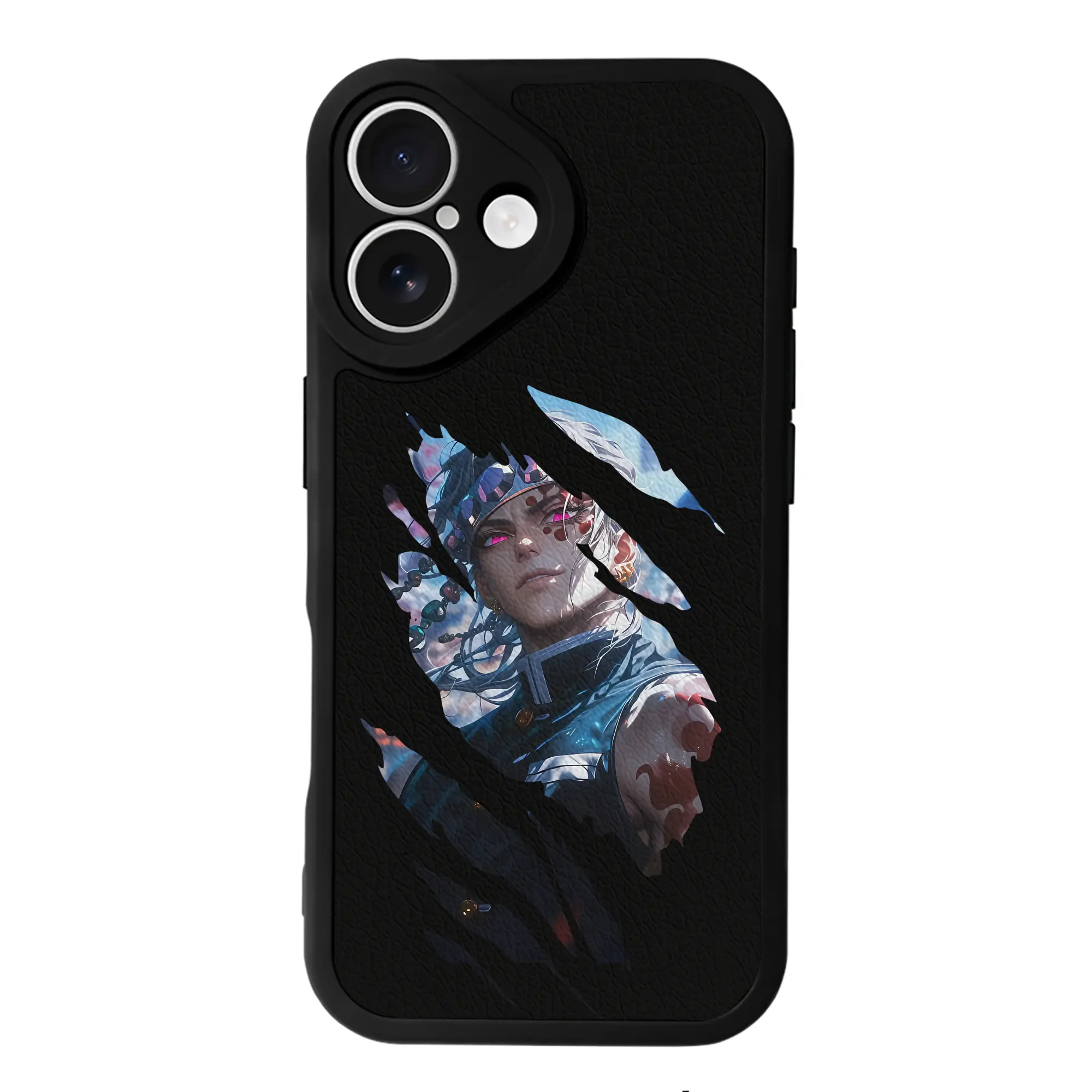 鬼滅の刃 グッズ,宇髄 天元 - IPhone 16シリーズ対応 ・ シリコンスマホケース ・ レザー調 ・ 高精度フィット ・ 耐衝撃 ・ ワイヤレス充電対応 ・ 精密カット