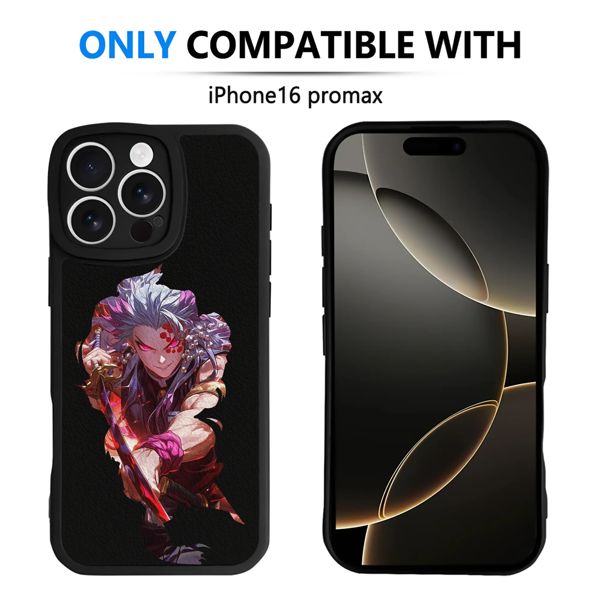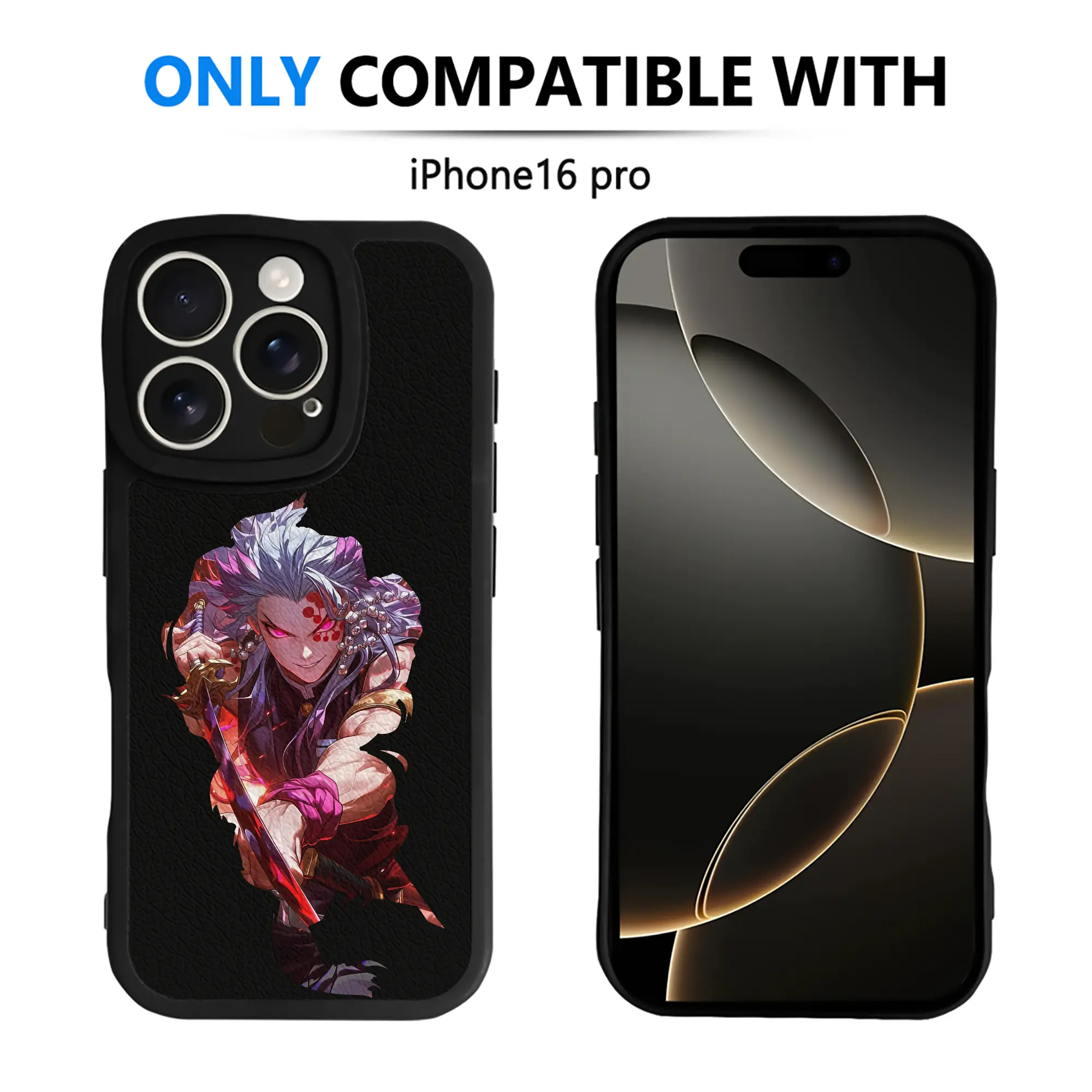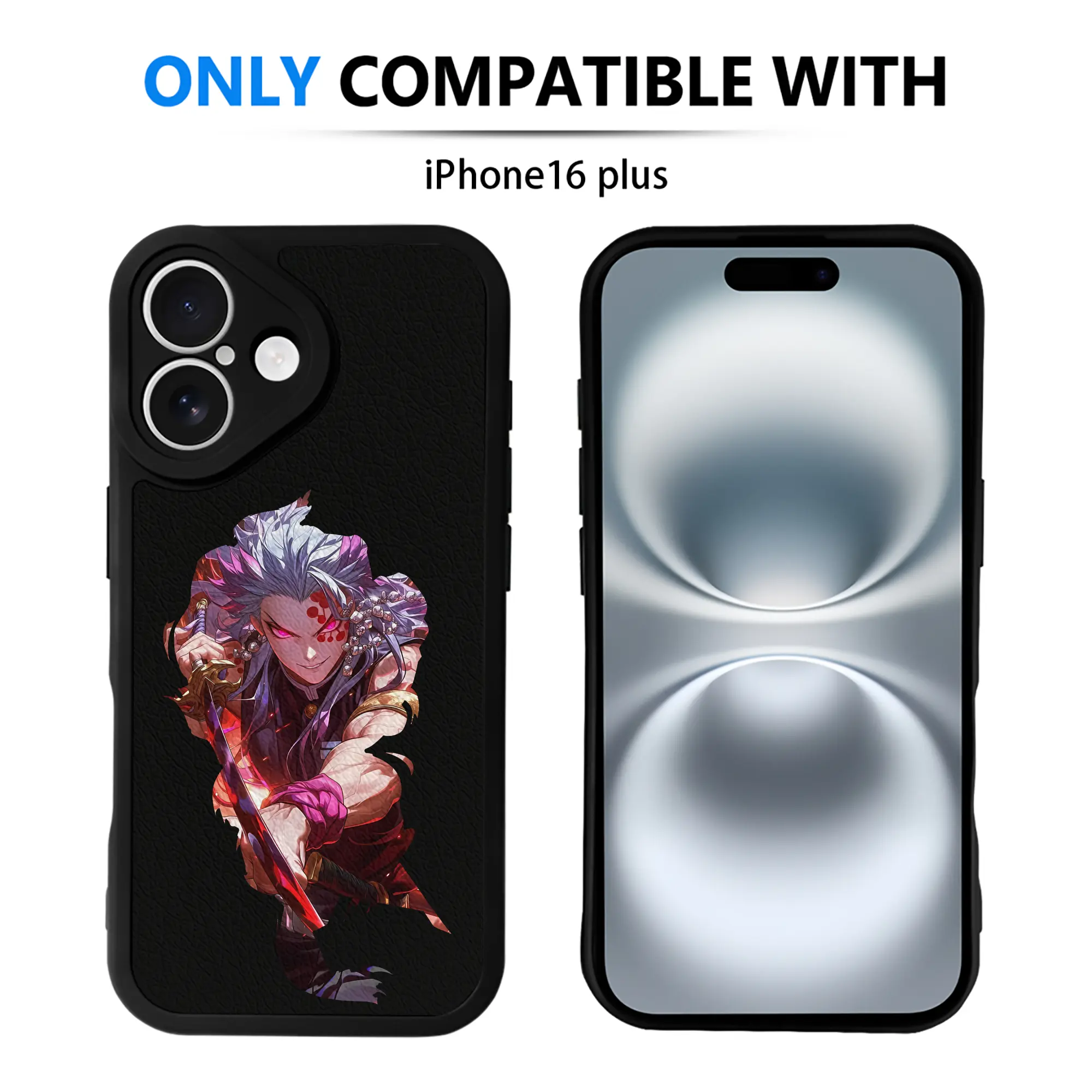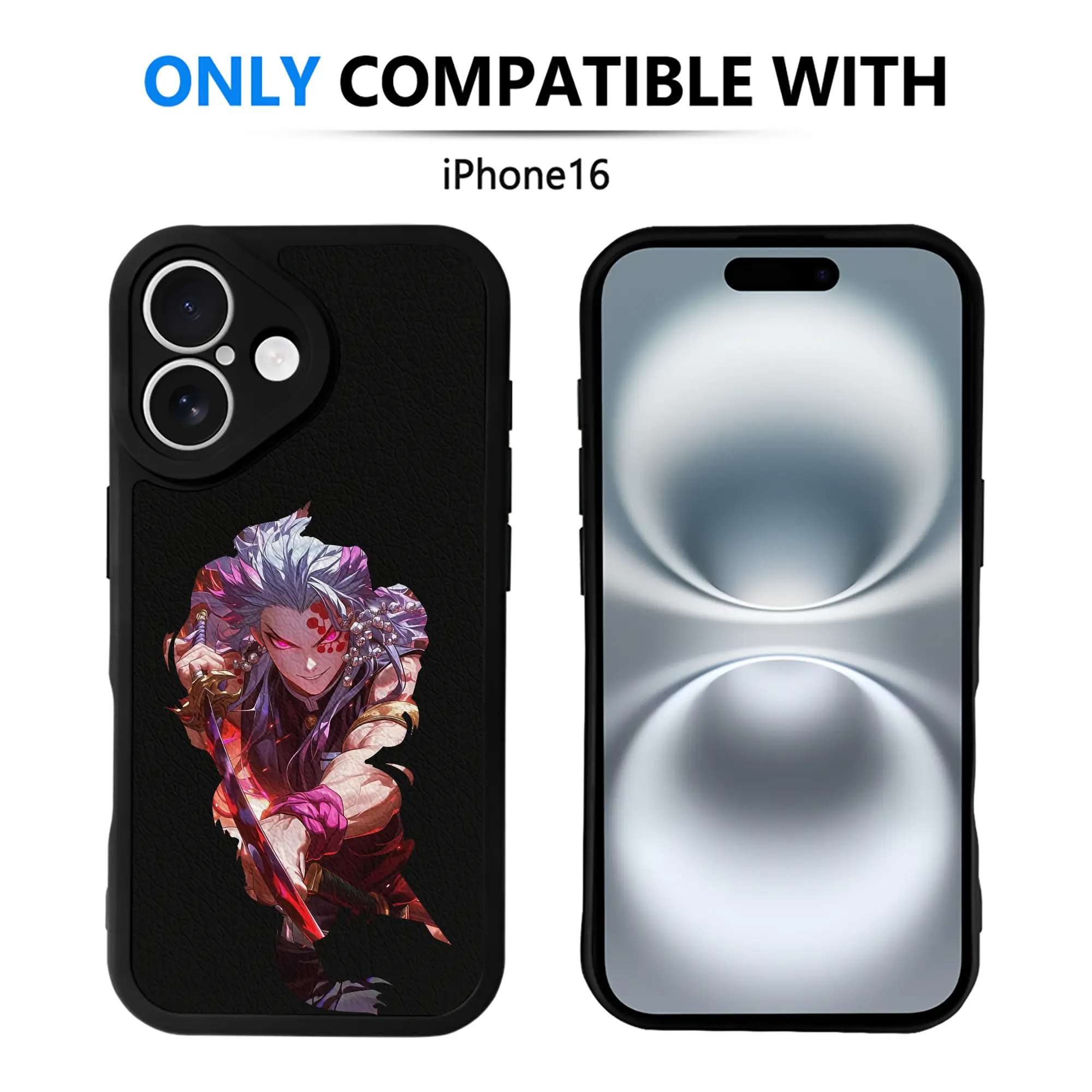鬼滅の刃 グッズ,宇髄 天元 - IPhone 16シリーズ対応 ・ シリコンスマホケース ・ レザー調 ・ 高精度フィット ・ 耐衝撃 ・ ワイヤレス充電対応 ・ 精密カット
