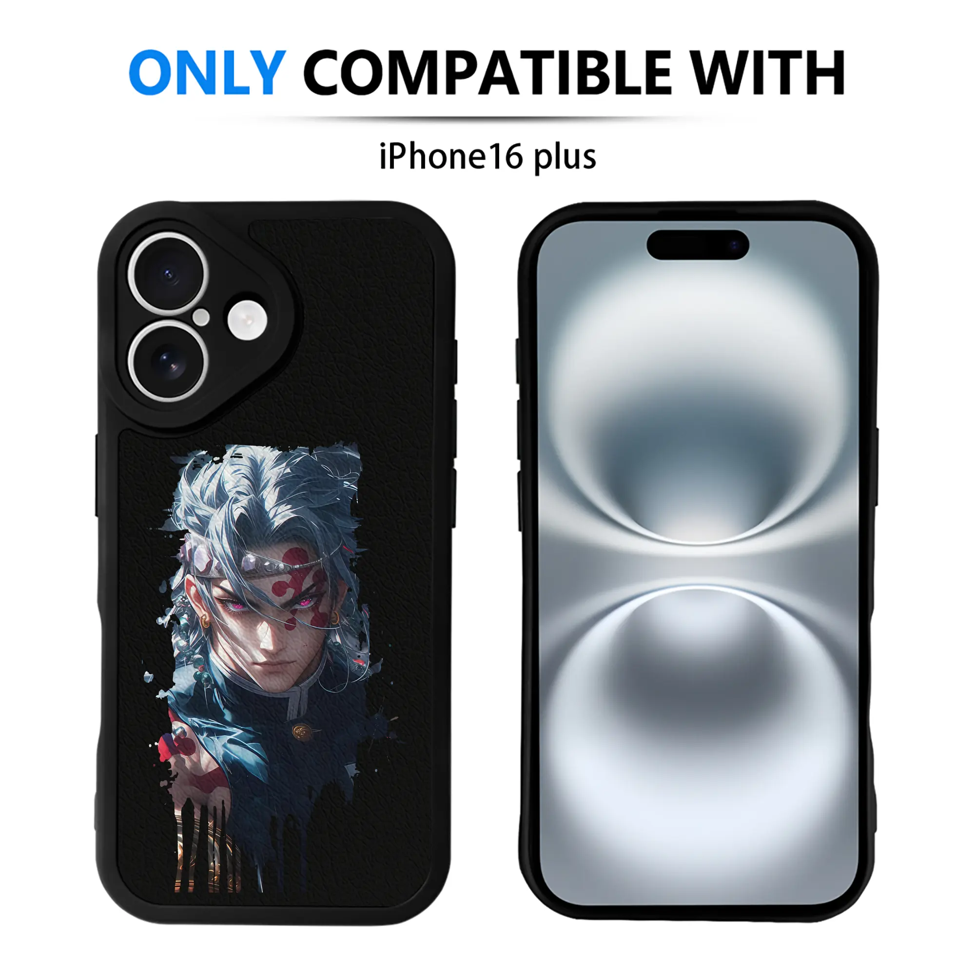 鬼滅の刃 グッズ,宇髄 天元 - IPhone 16シリーズ対応 ・ シリコンスマホケース ・ レザー調 ・ 高精度フィット ・ 耐衝撃 ・ ワイヤレス充電対応 ・ 精密カット