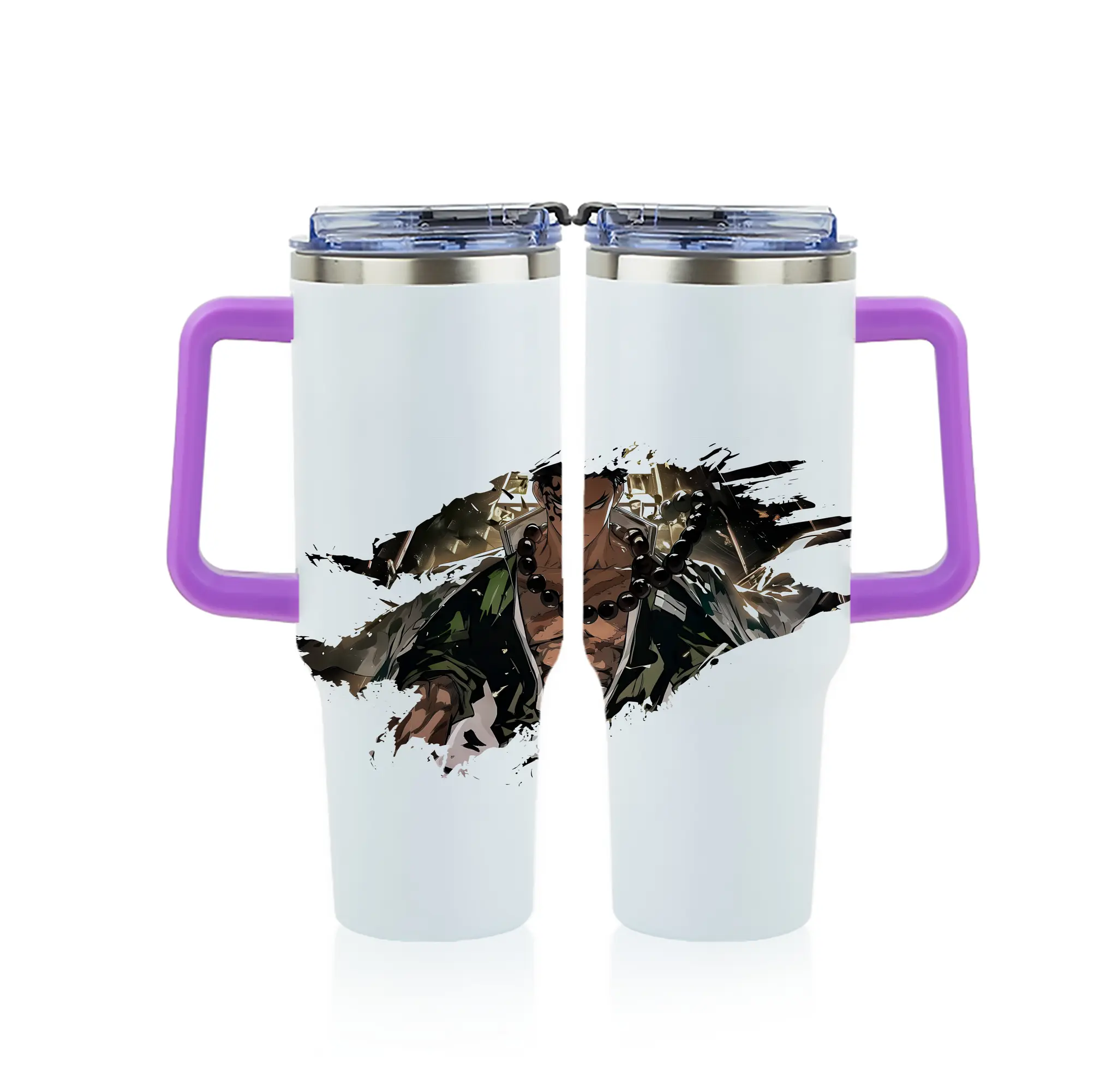 鬼滅の刃 グッズ,悲鳴嶼 行冥 - 1200mL フルプリント車用タンブラー ・ 304ステンレス 内側 ・ 201ステンレス 外側 ・ 保温 保冷 ・ 通勤 ドライブ アウトドア用