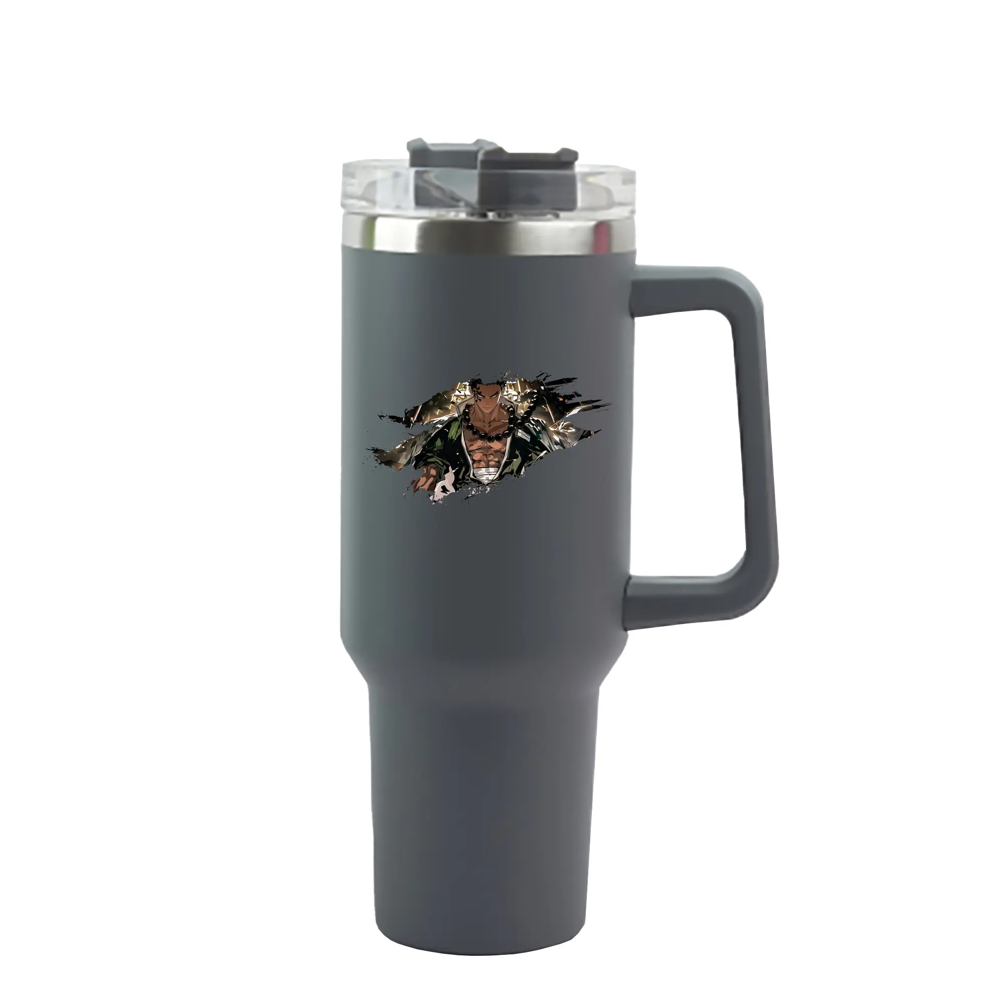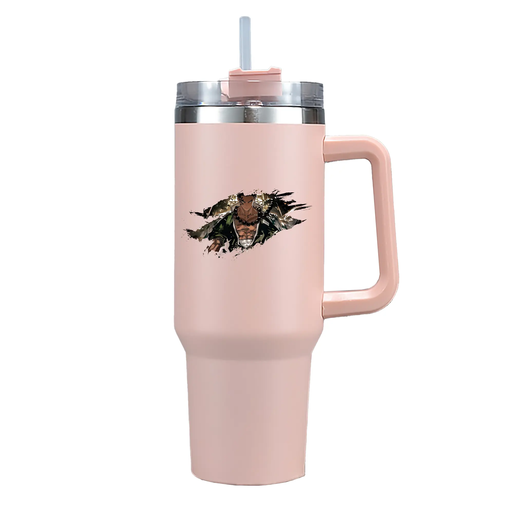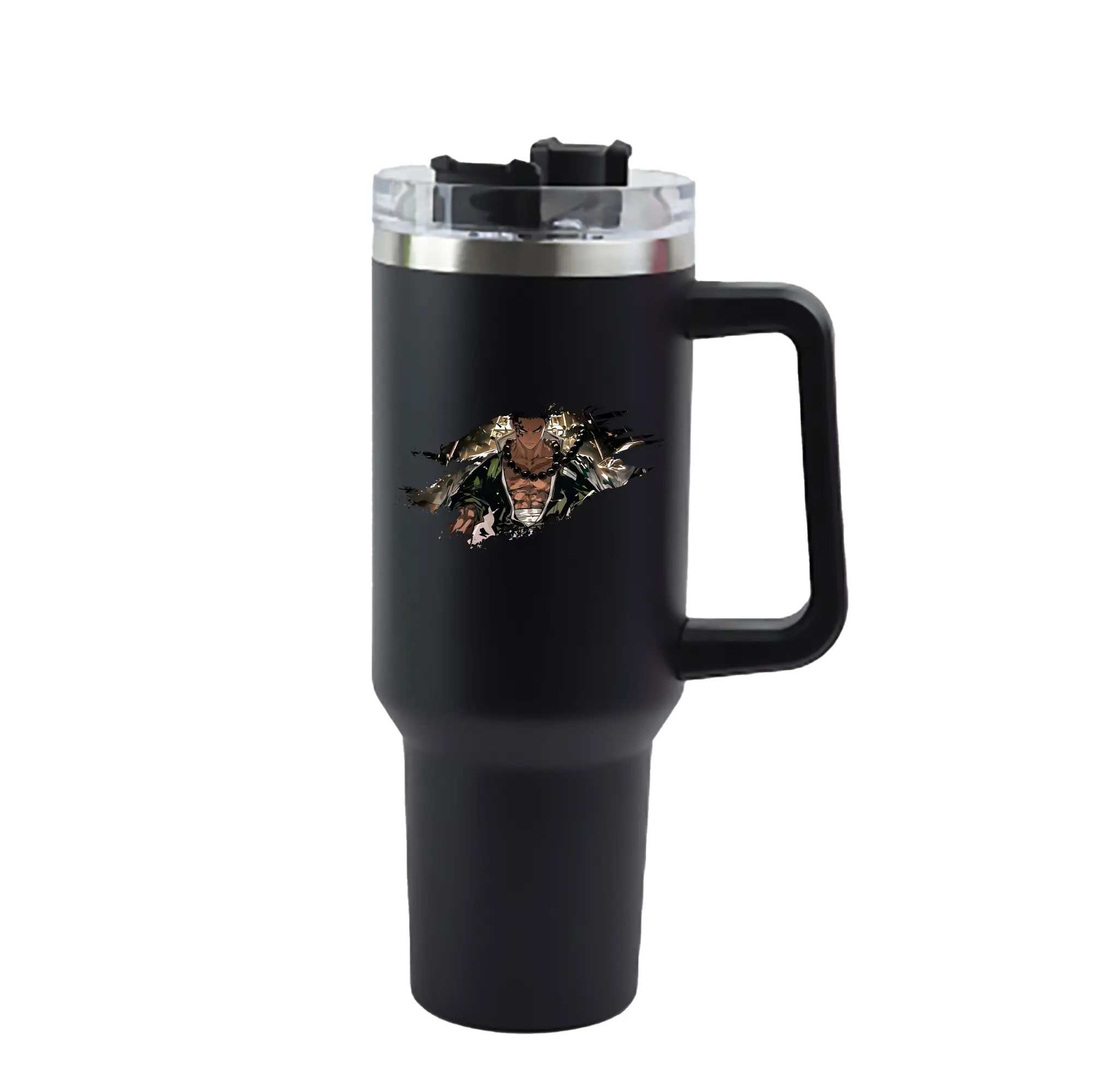 鬼滅の刃 グッズ,悲鳴嶼 行冥 - 1200mL 車用タンブラー ・ クリスタルステッカー ・ 304ステンレス 内側 ・ 201ステンレス 外側 ・ 保温 保冷 ・ ハンドル&ストロー付き ・ 通勤 ドライブ アウトドア用
