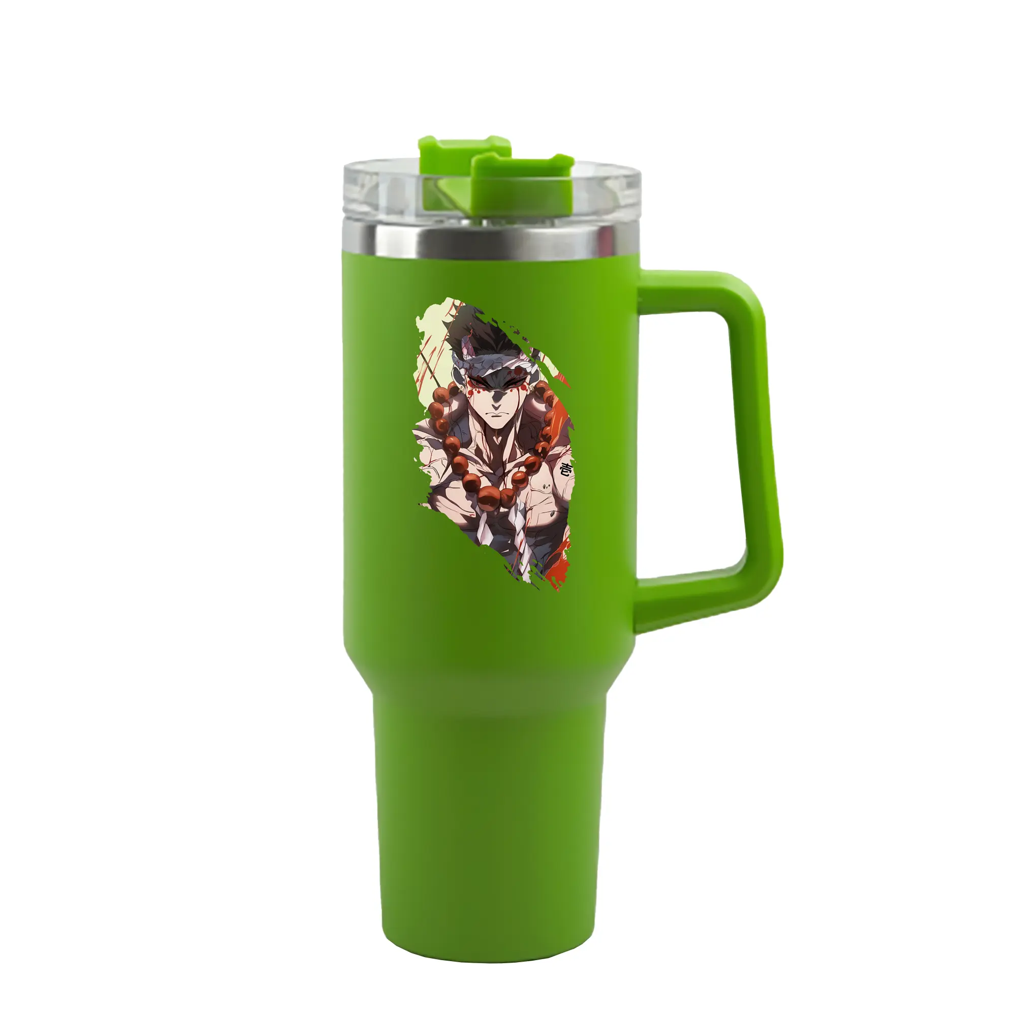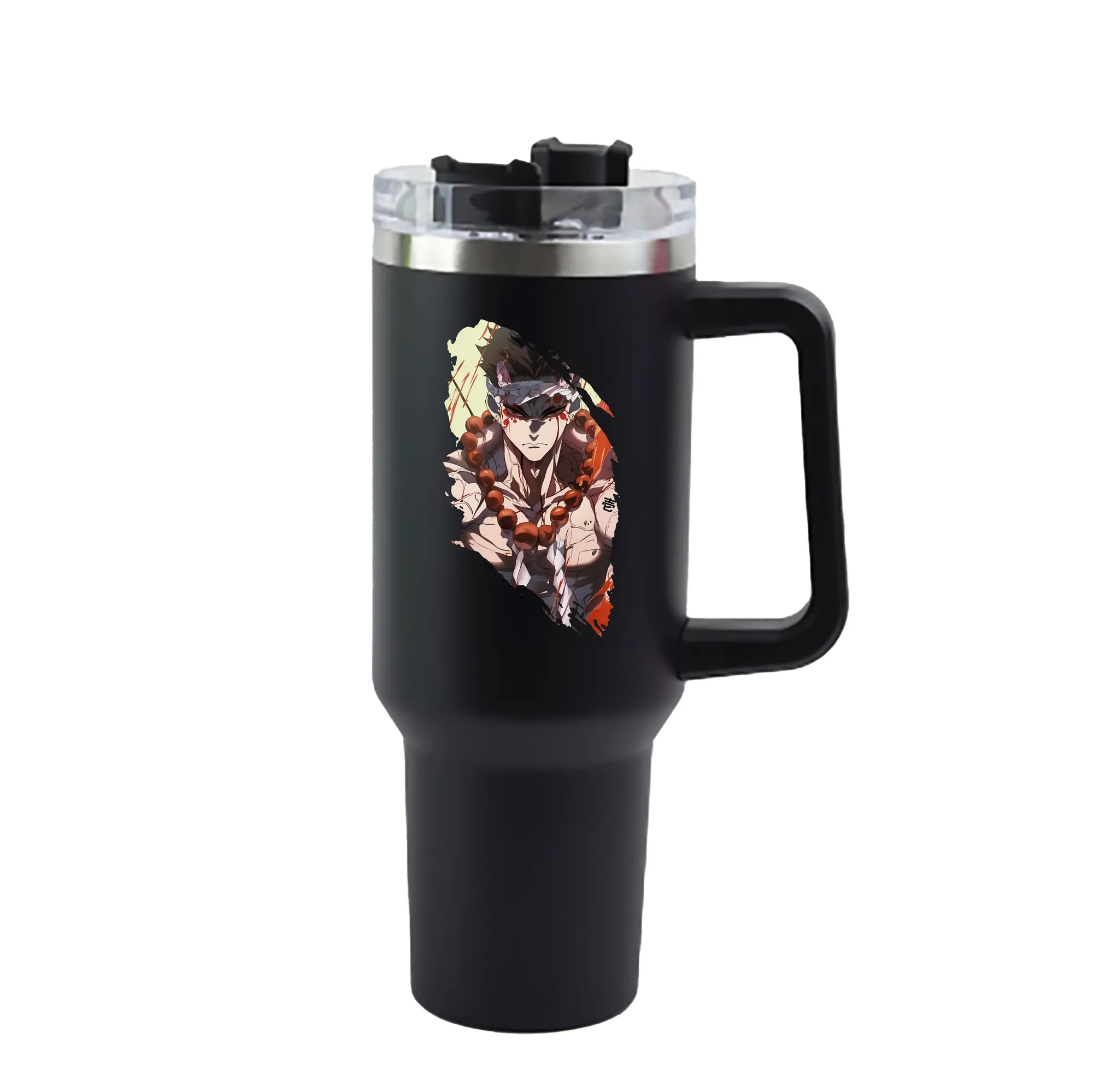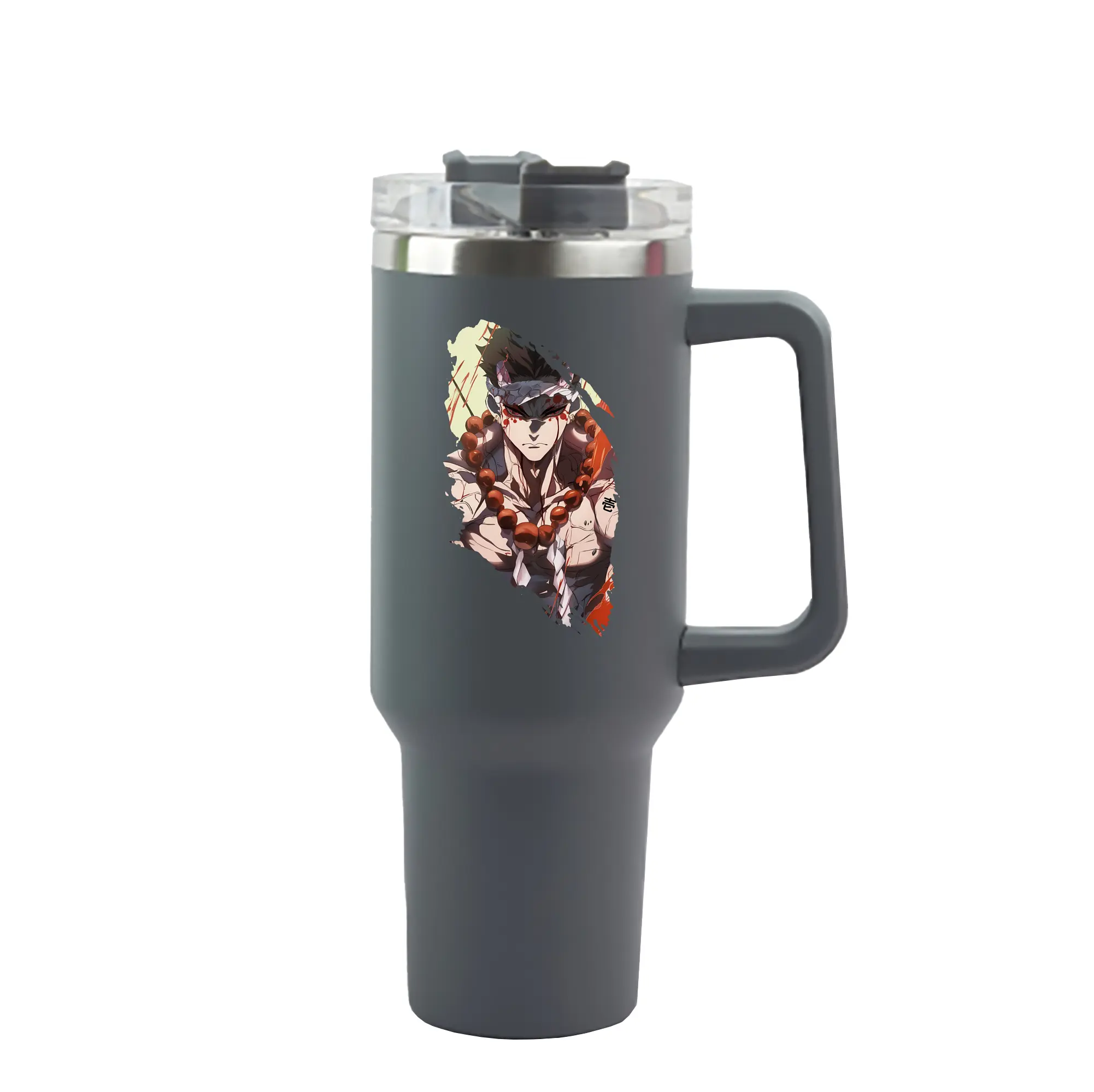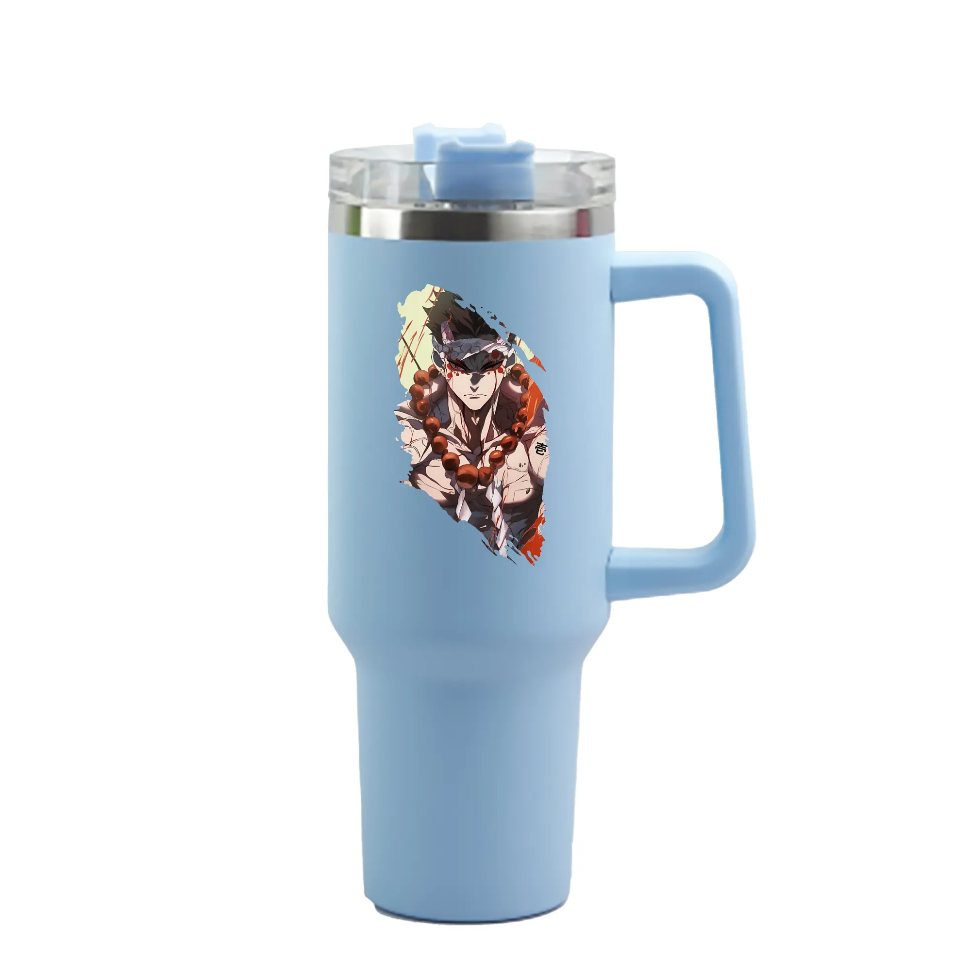 鬼滅の刃 グッズ,悲鳴嶼 行冥 - 1200mL 車用タンブラー ・ クリスタルステッカー ・ 304ステンレス 内側 ・ 201ステンレス 外側 ・ 保温 保冷 ・ ハンドル&ストロー付き ・ 通勤 ドライブ アウトドア用