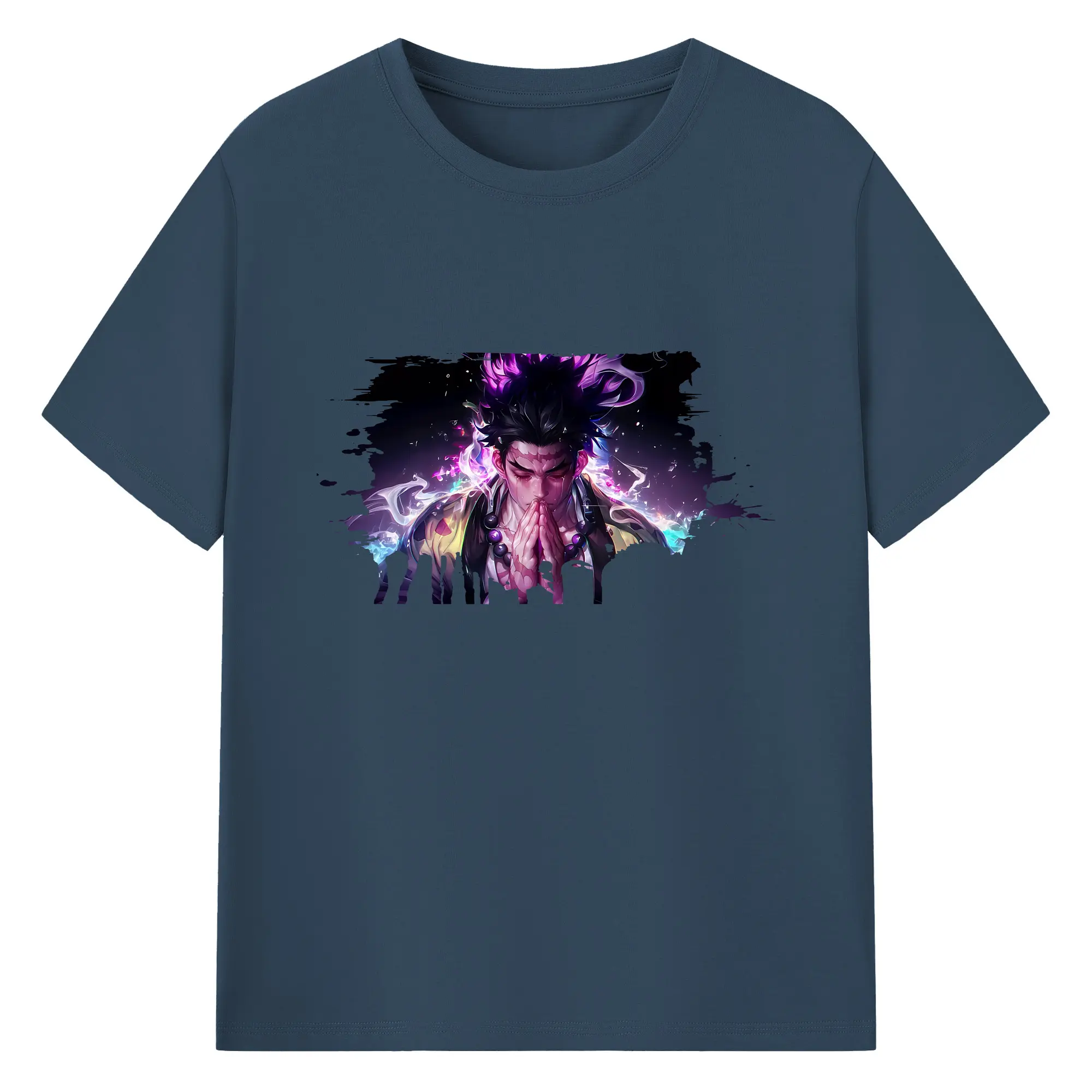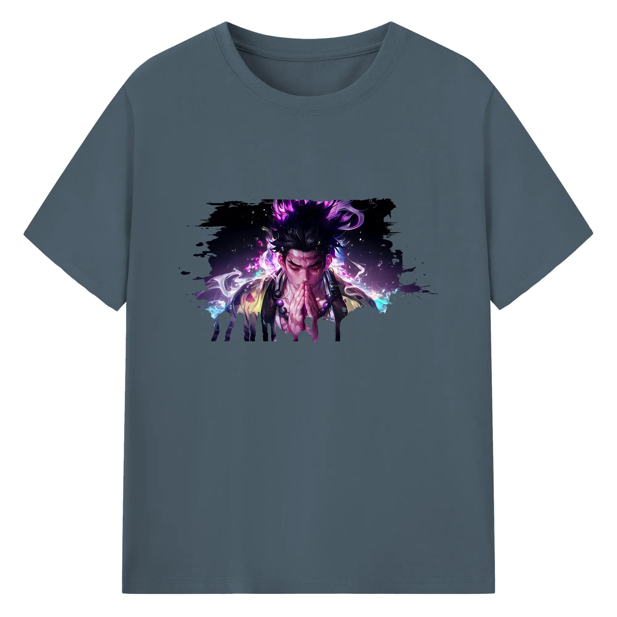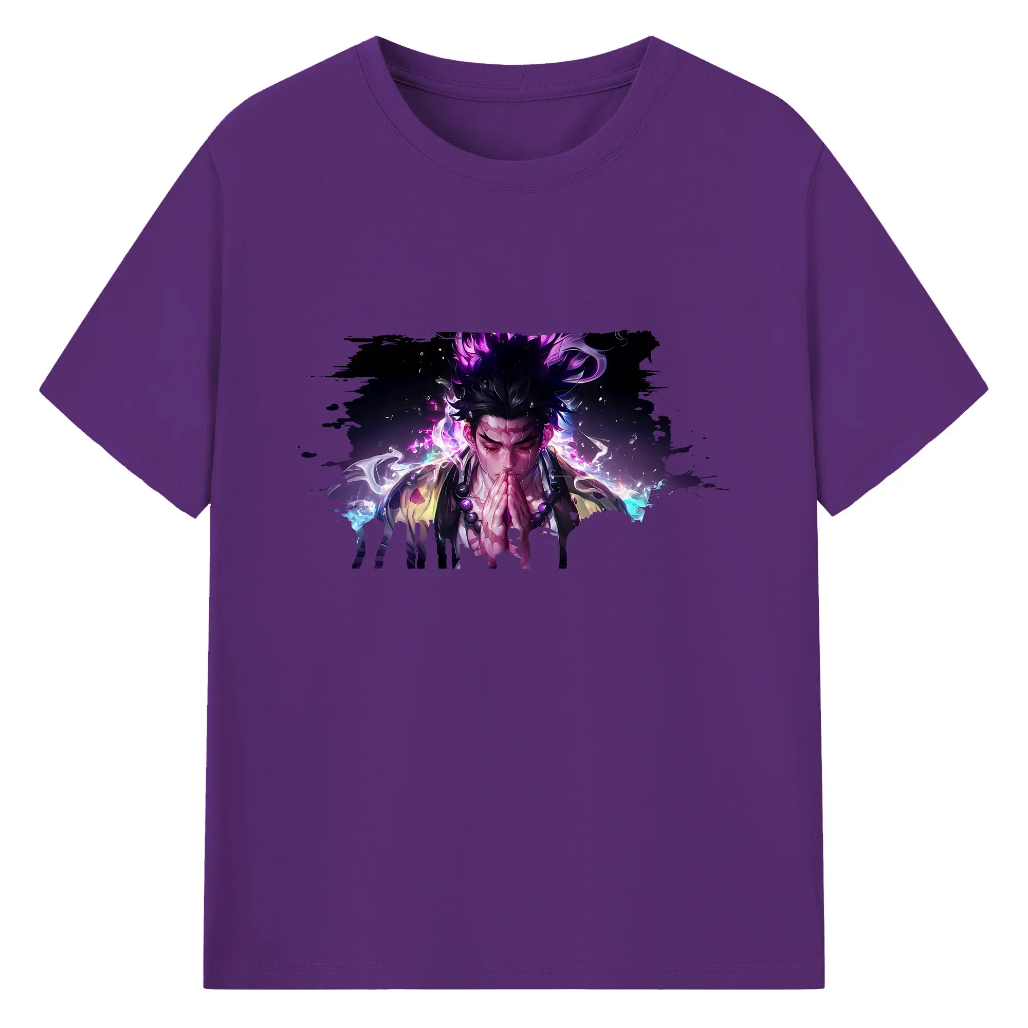 鬼滅の刃 グッズ,悲鳴嶼 行冥 - 綿100% 半袖Tシャツ ・ バックプリント ・ 快適 通気性 ・ 日常使い 散歩 スポーツ用