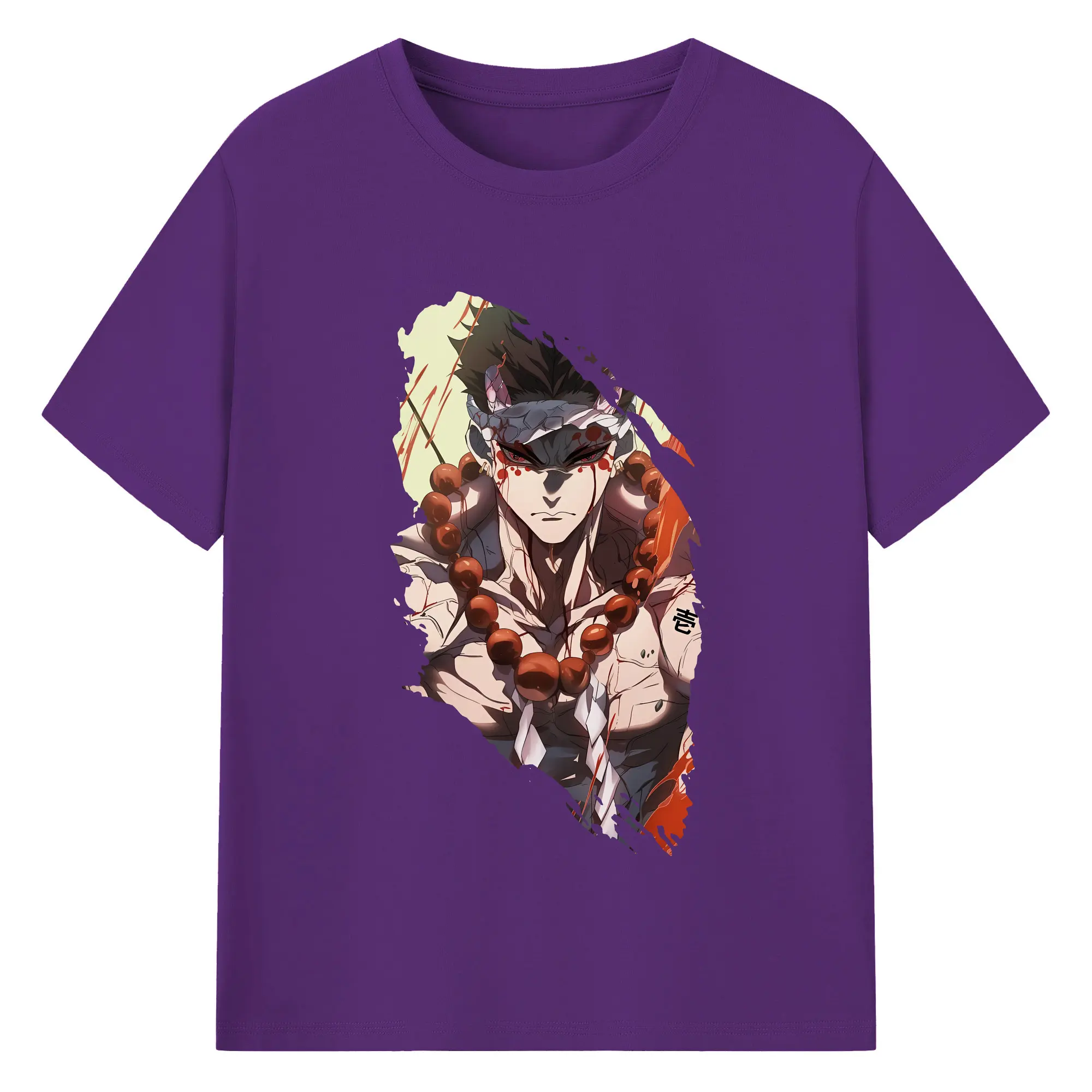 鬼滅の刃 グッズ,悲鳴嶼 行冥 - 綿100% 半袖Tシャツ ・ バックプリント ・ 快適 通気性 ・ 日常使い 散歩 スポーツ用