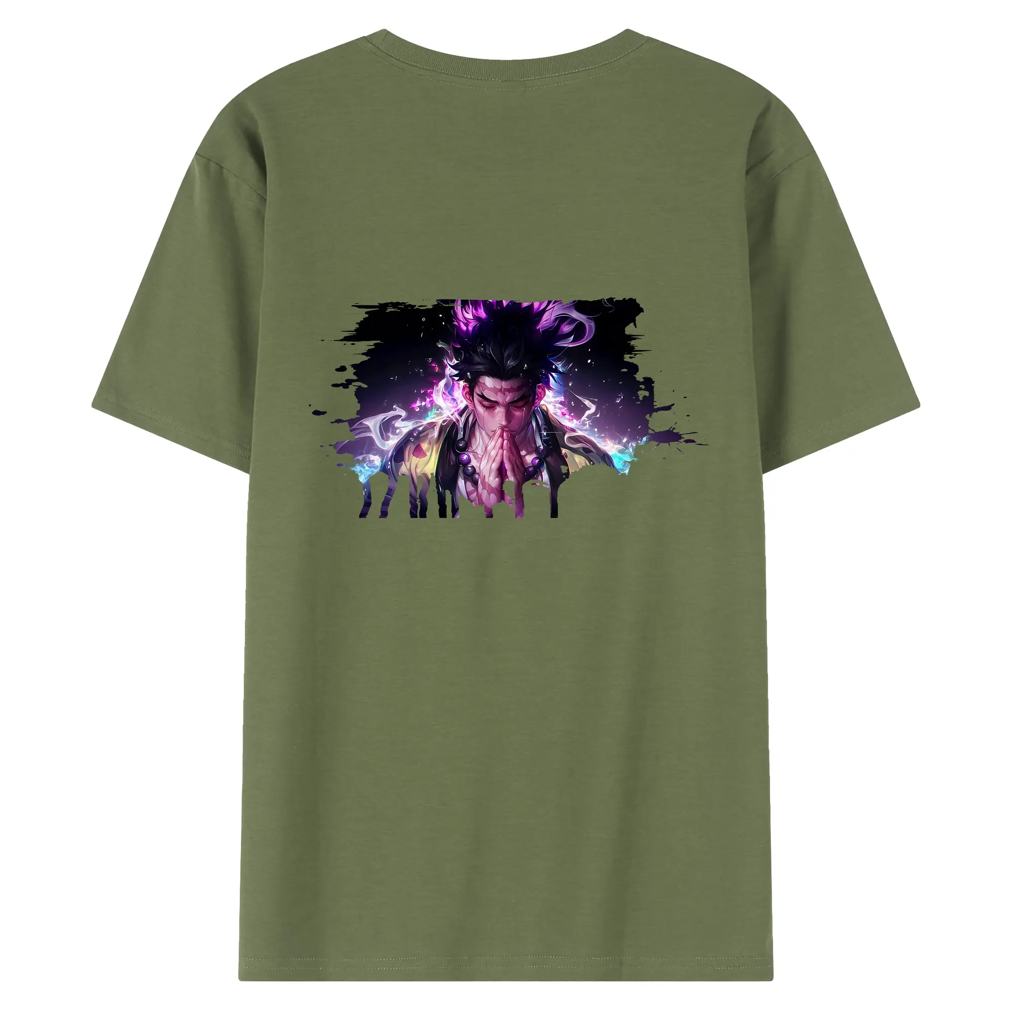 鬼滅の刃 グッズ,悲鳴嶼 行冥 - 綿100% 半袖Tシャツ ・ フロントプリント ・ 快適 通気性 ・ 日常使い 散歩 スポーツ用