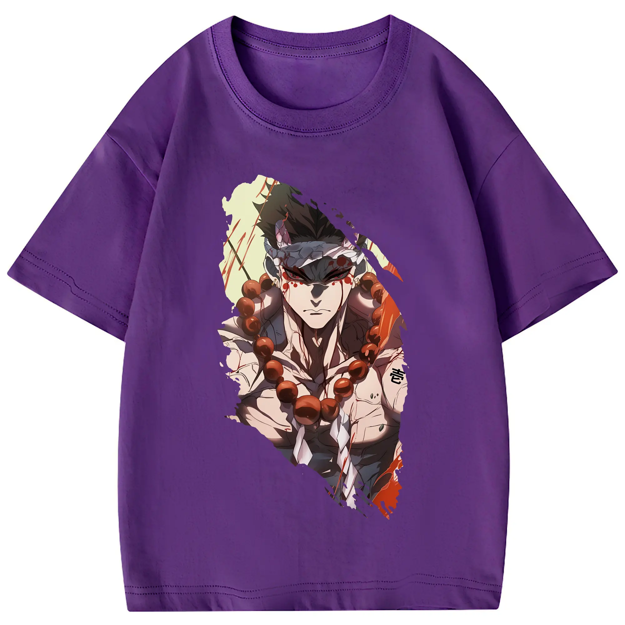 鬼滅の刃 グッズ,悲鳴嶼 行冥 - 綿100% 半袖Tシャツ ・ フロントプリント ・ 快適 通気性 ・ 日常使い 散歩 スポーツ用