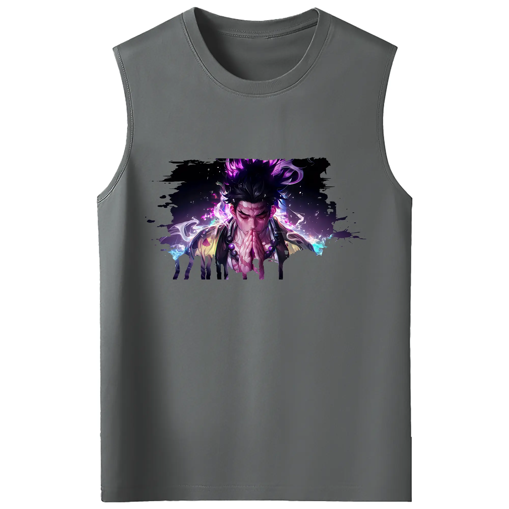 鬼滅の刃 グッズ,悲鳴嶼 行冥 - コットン100% タンクトップ ・ フロントプリント ・ タイトフィット ・ 快適 通気性 ・ スポーツ カジュアル 散歩用