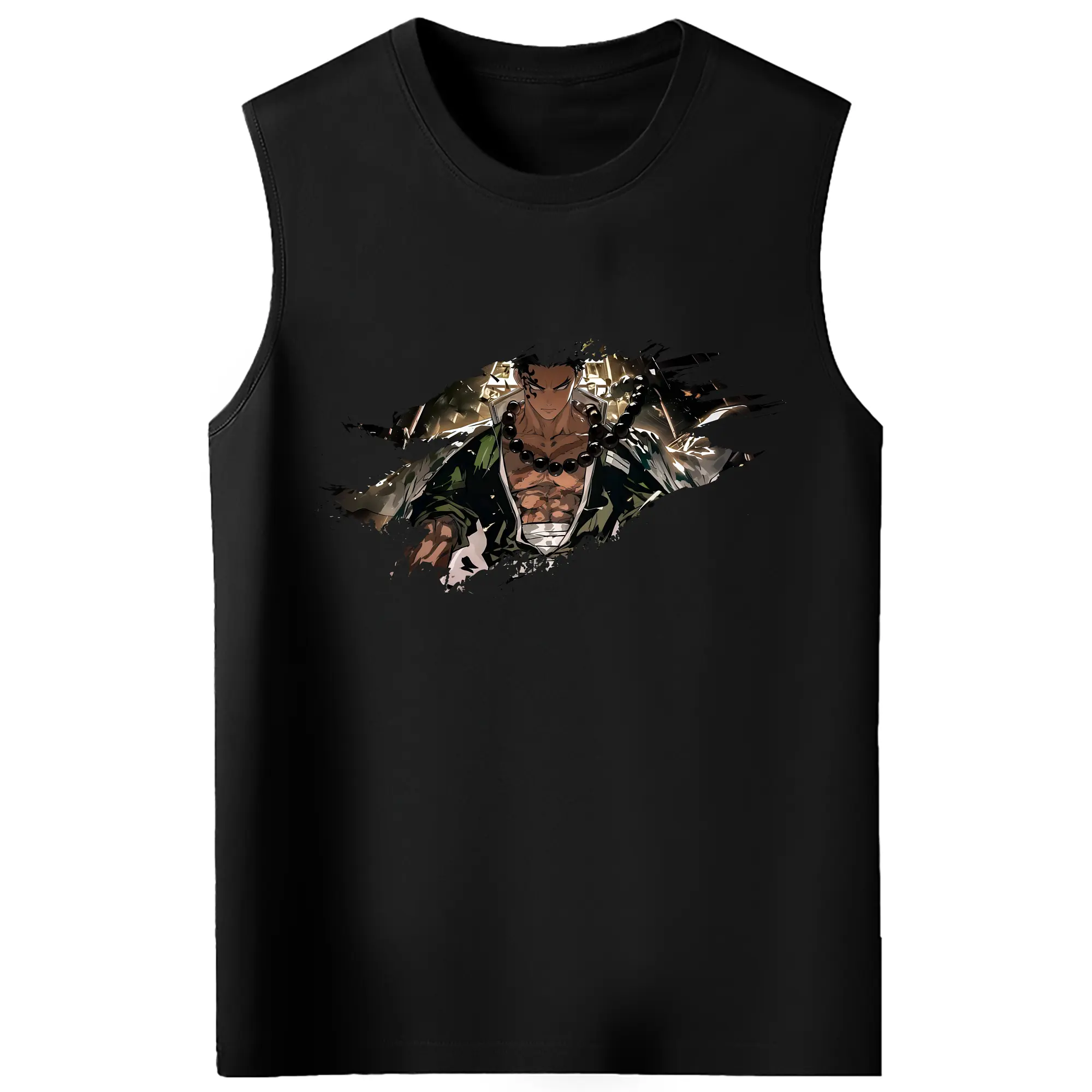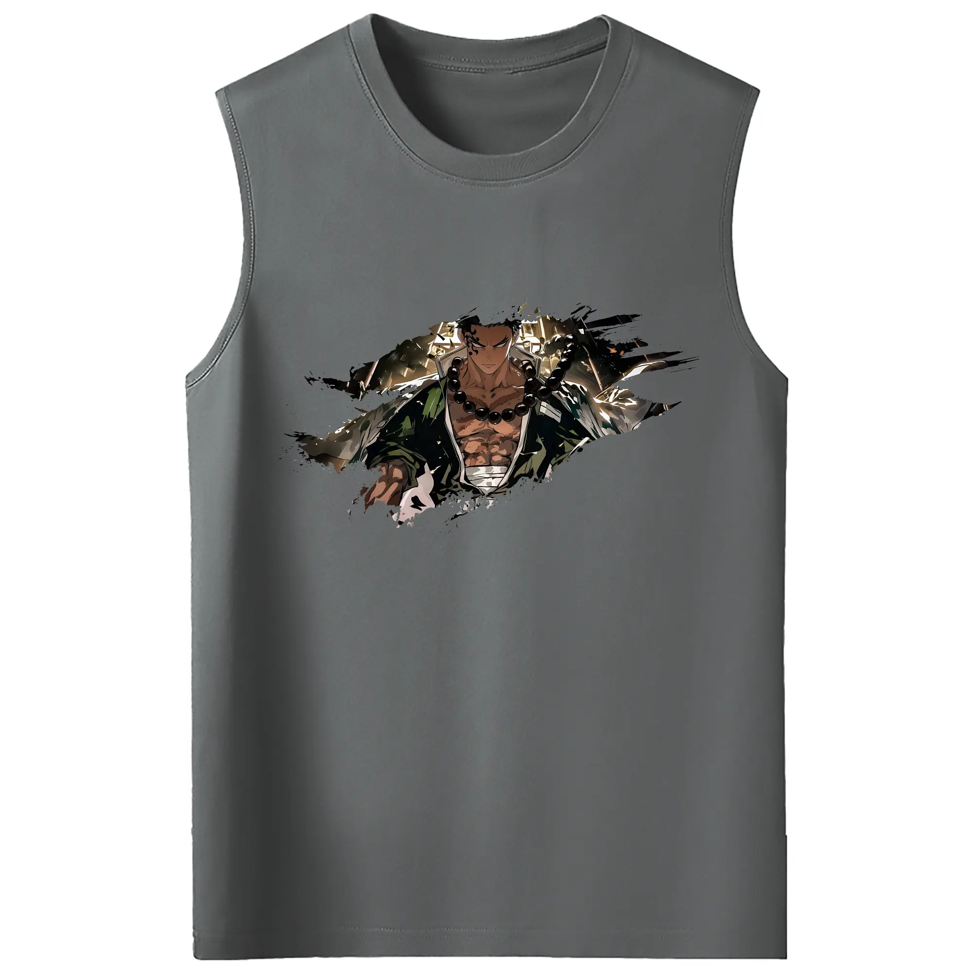 鬼滅の刃 グッズ,悲鳴嶼 行冥 - コットン100% タンクトップ ・ フロントプリント ・ タイトフィット ・ 快適 通気性 ・ スポーツ カジュアル 散歩用
