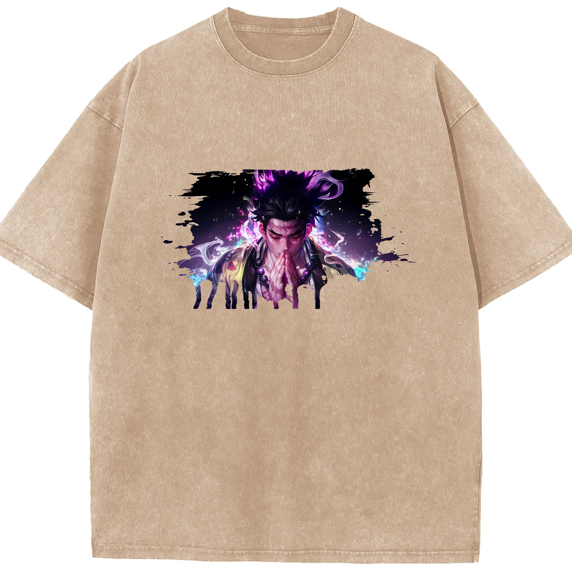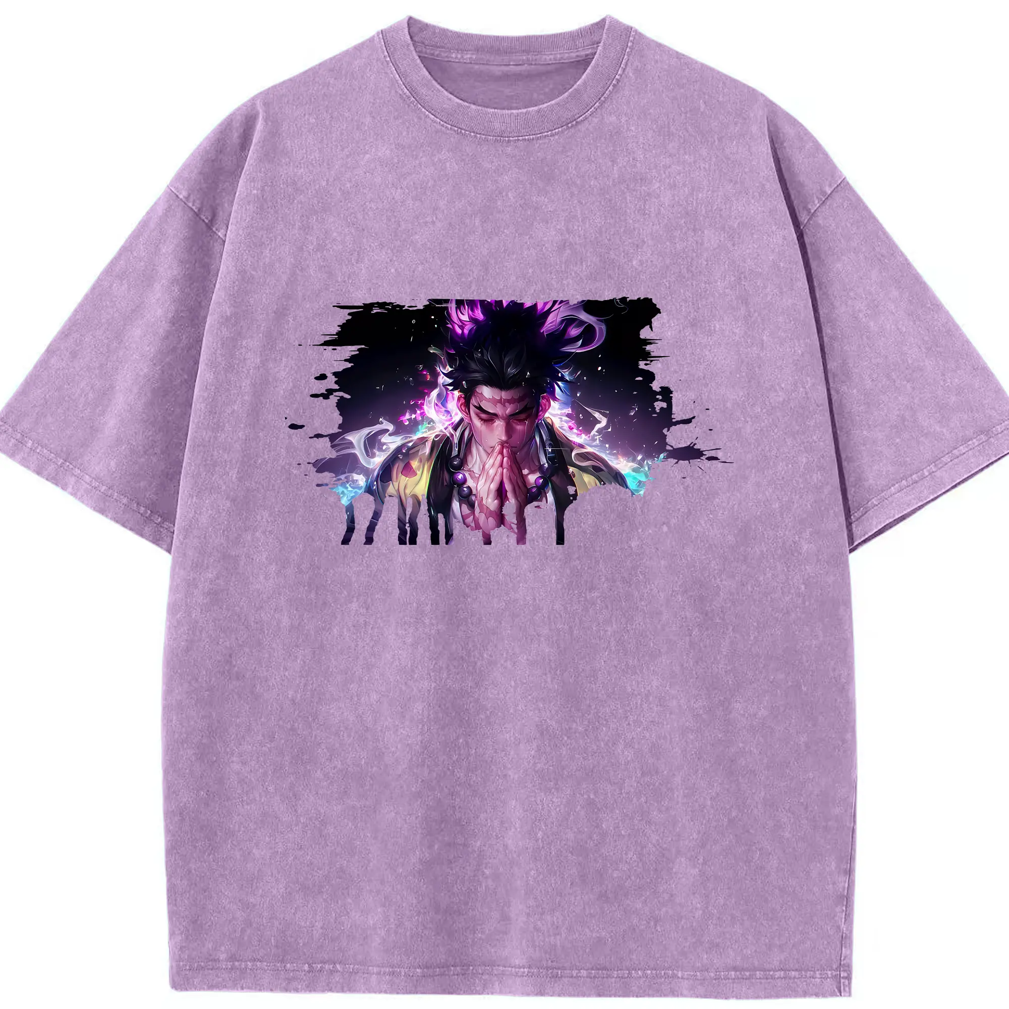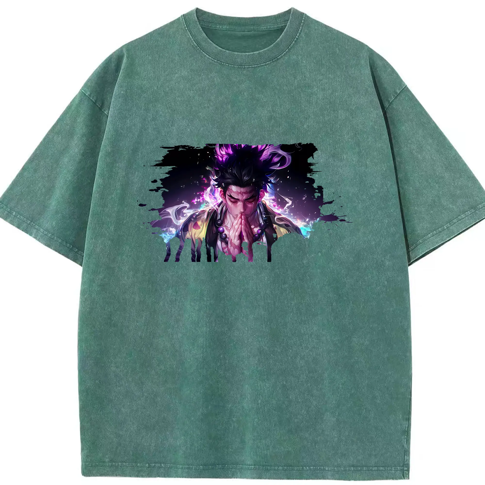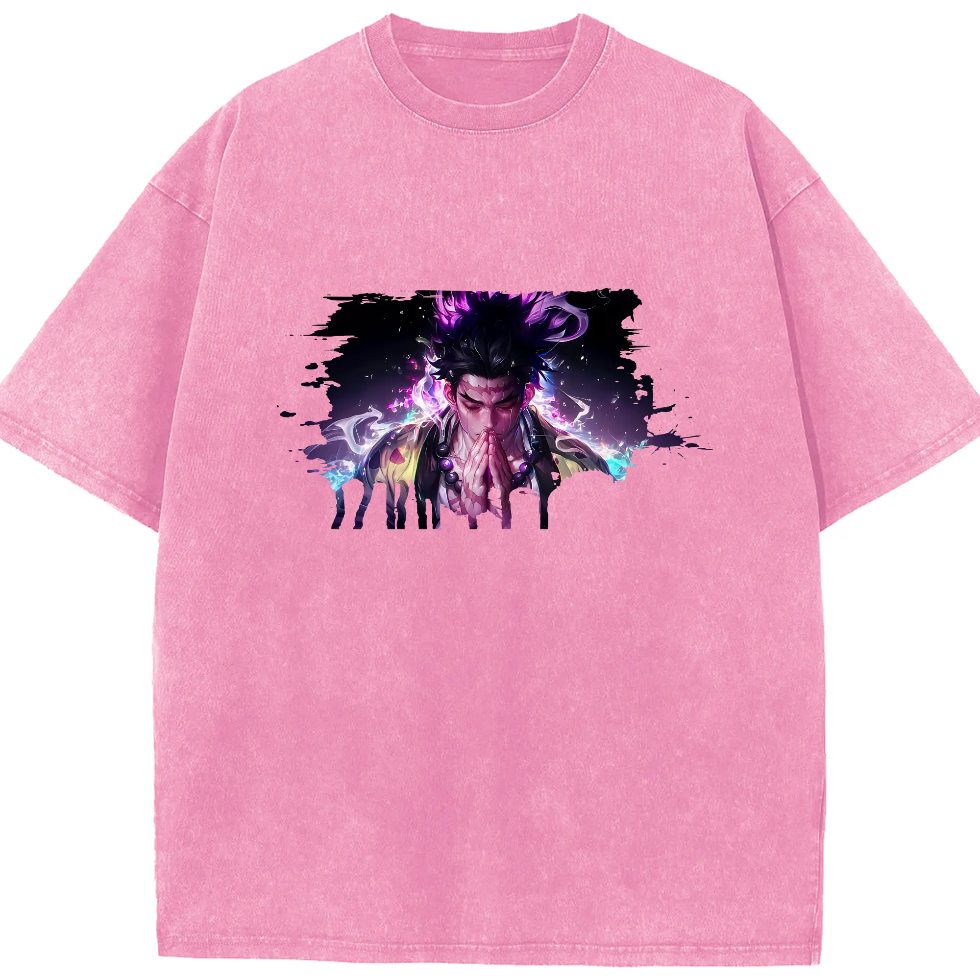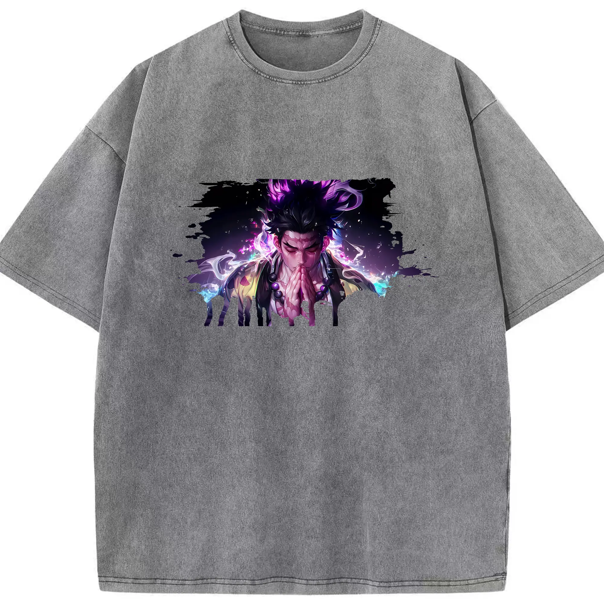 鬼滅の刃 グッズ,悲鳴嶼 行冥 - 綿100% 半袖Tシャツ ・ フロントプリント ・ 快適 通気性 ・ 日常使い 散歩 スポーツ用