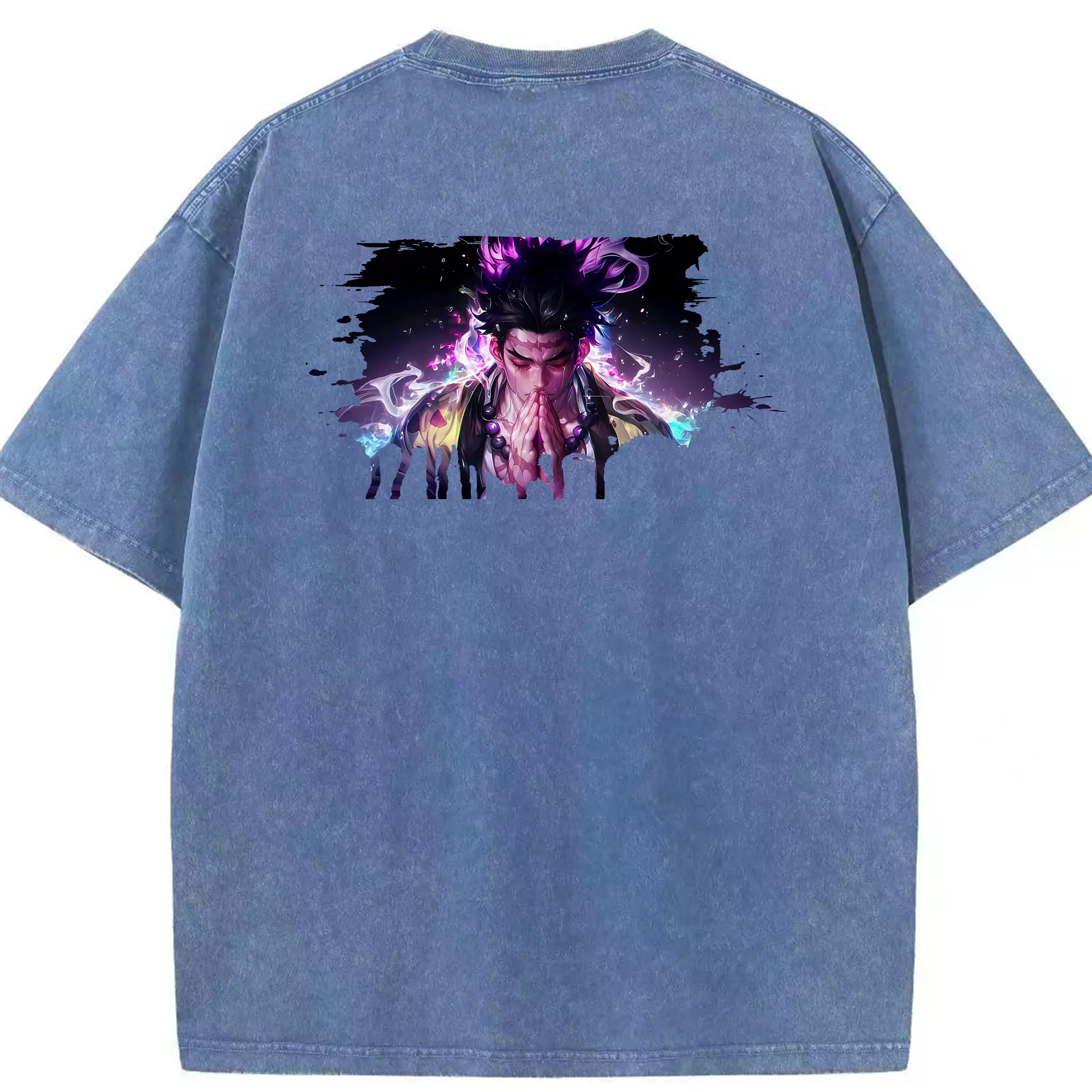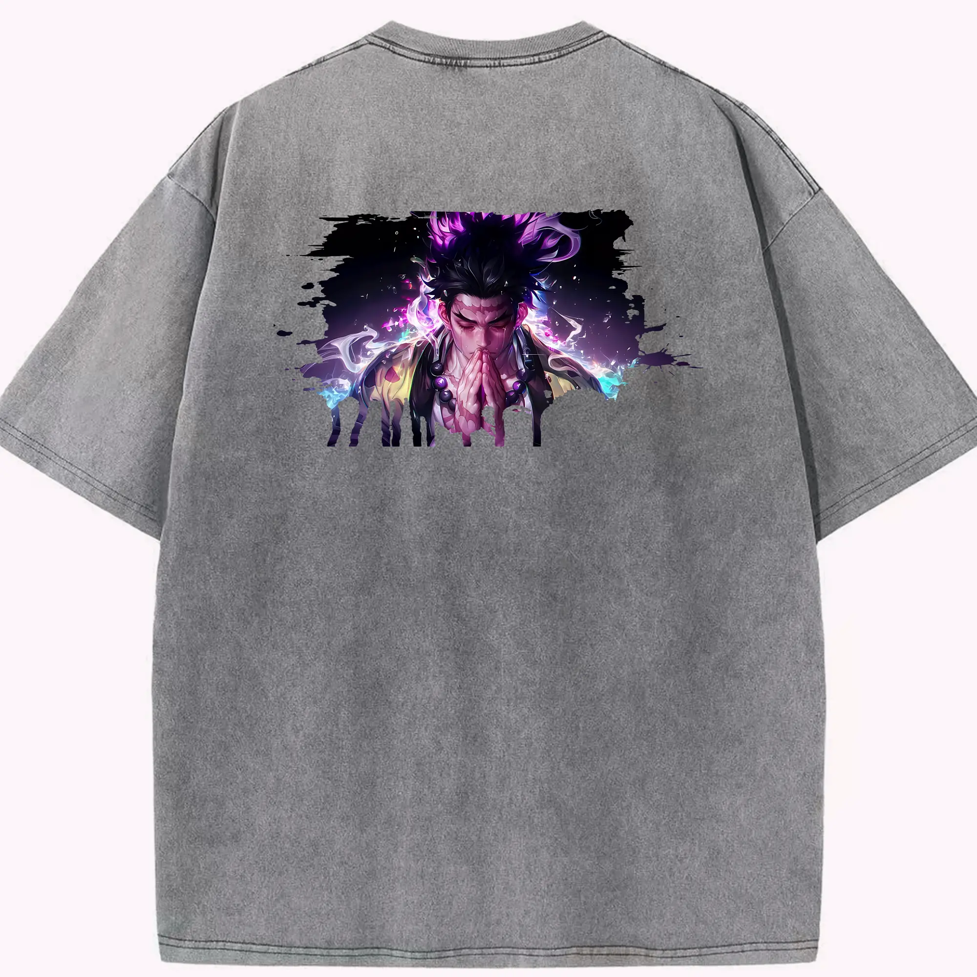 鬼滅の刃 グッズ,悲鳴嶼 行冥 - 綿100% 半袖Tシャツ ・ バックプリント ・ 快適 通気性 ・ 日常使い 散歩 スポーツ用