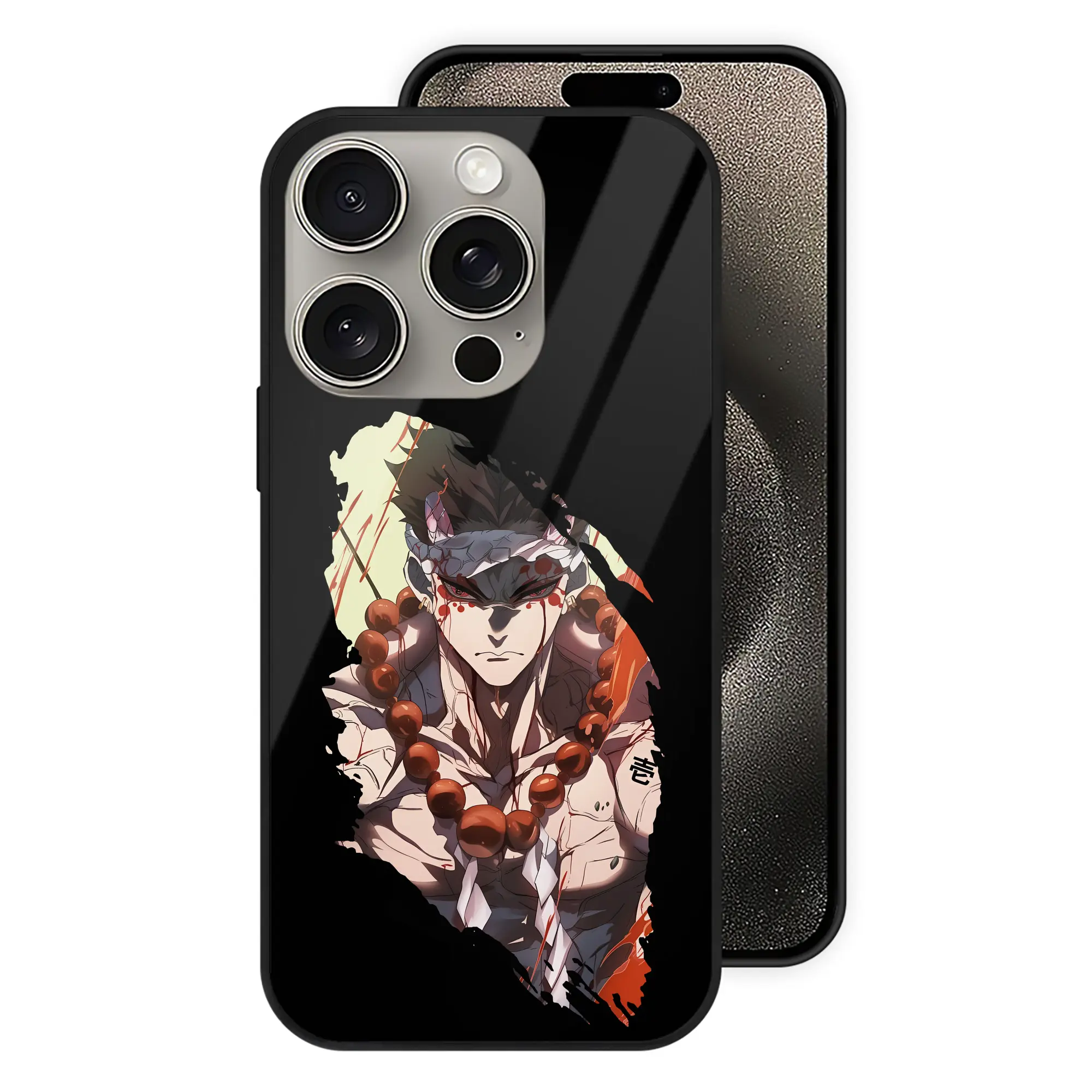 鬼滅の刃 グッズ,悲鳴嶼 行冥 - IPhone15Pro対応 ・ スマホケース ・ 背面ガラス ・ TPU+強化ガラス ・ 耐衝撃 ・ 黄変防止 ・ ワイヤレス充電対応 ・ 3D立体ボタン
