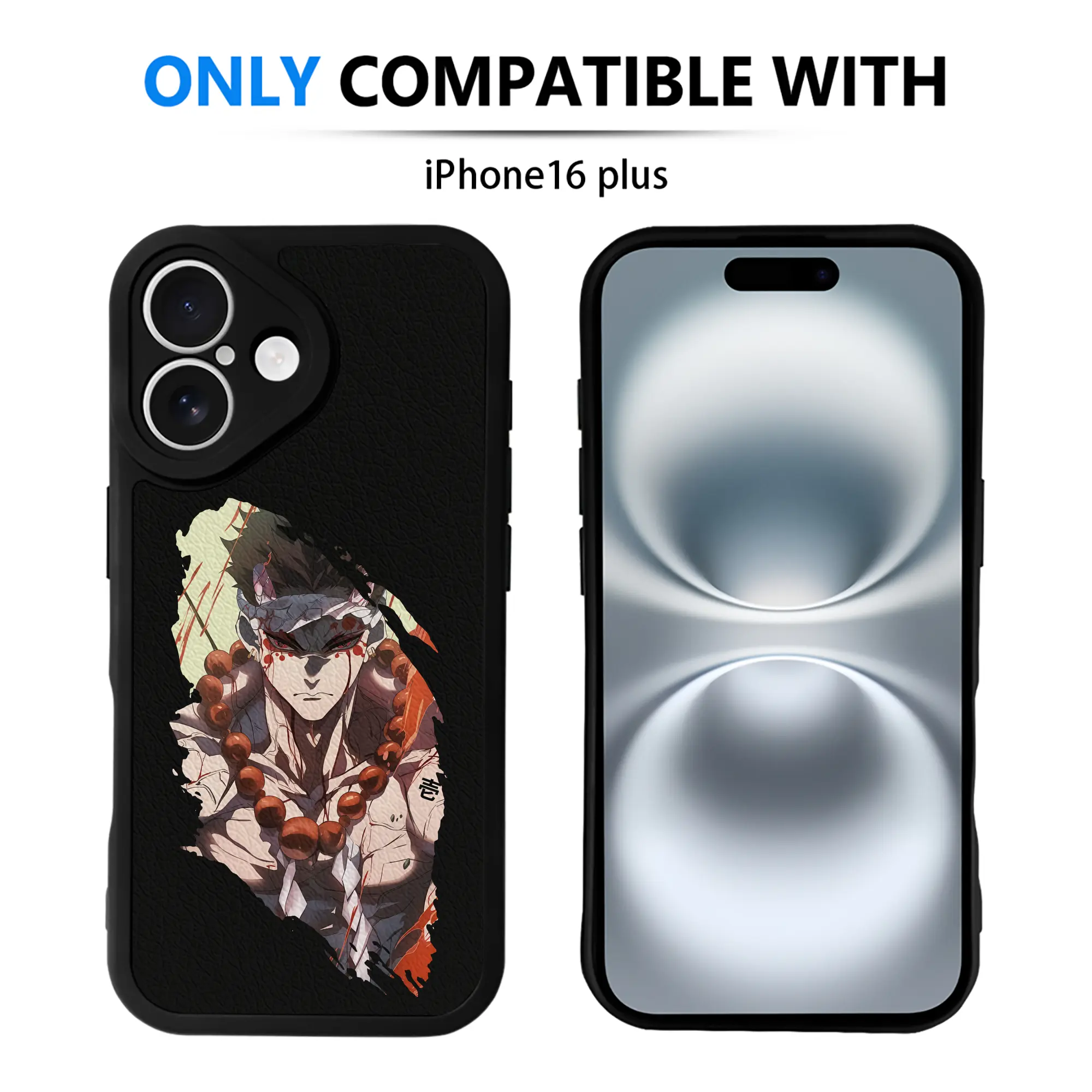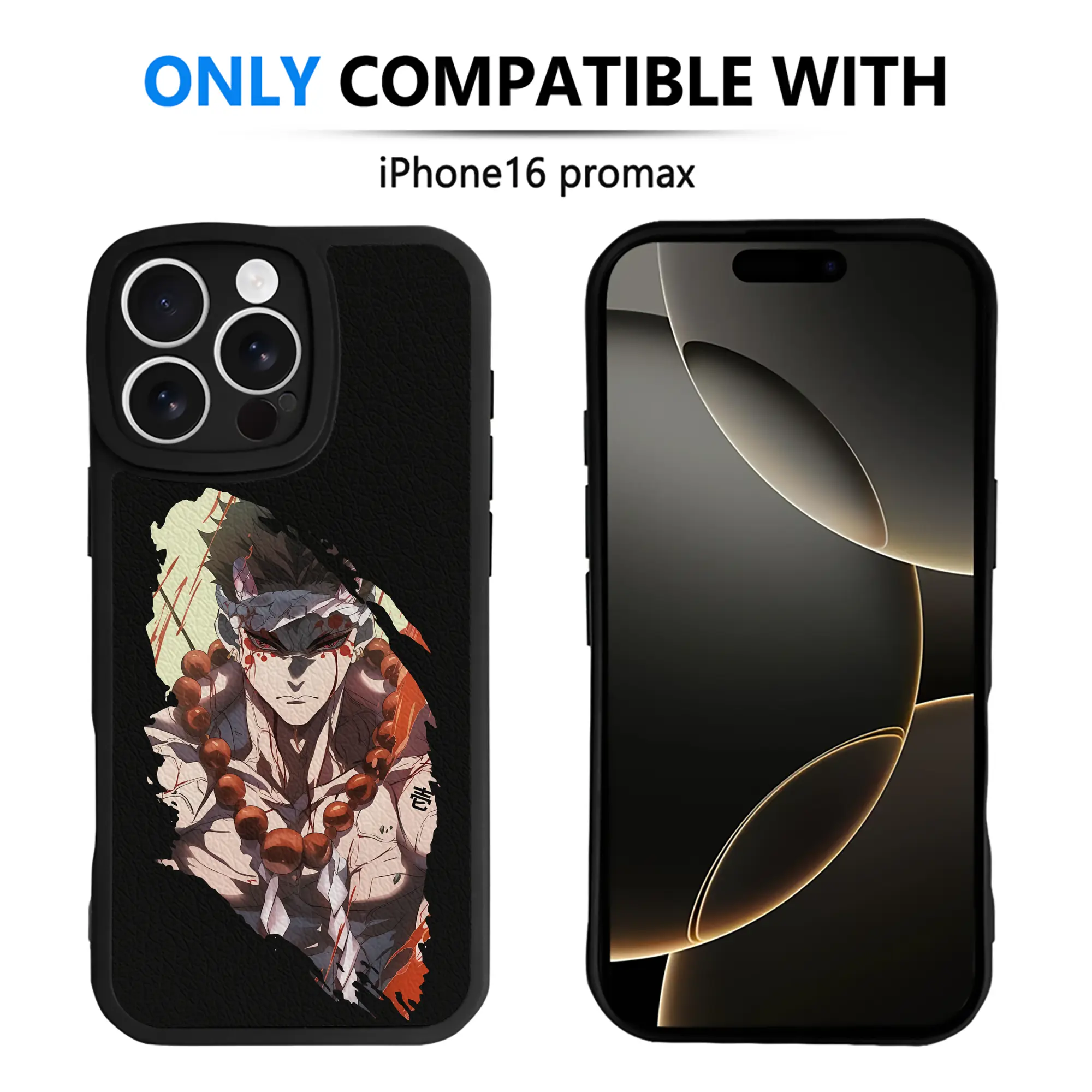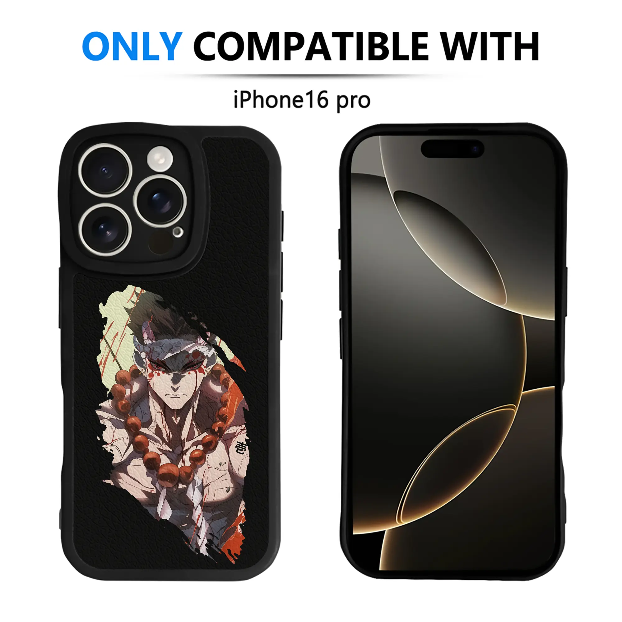 鬼滅の刃 グッズ,悲鳴嶼 行冥 - IPhone 16シリーズ対応 ・ シリコンスマホケース ・ レザー調 ・ 高精度フィット ・ 耐衝撃 ・ ワイヤレス充電対応 ・ 精密カット