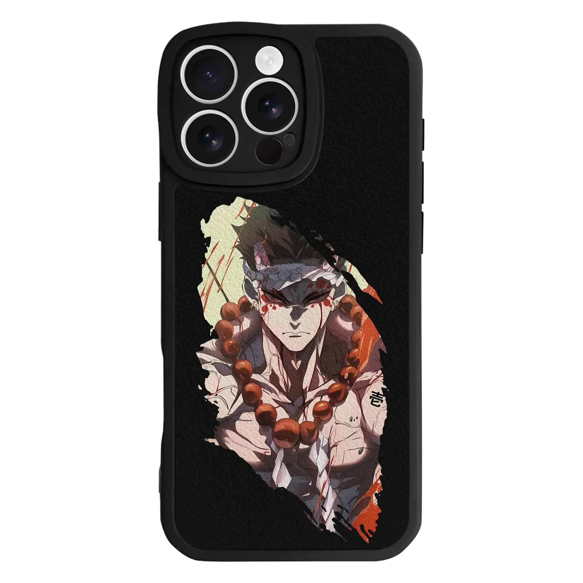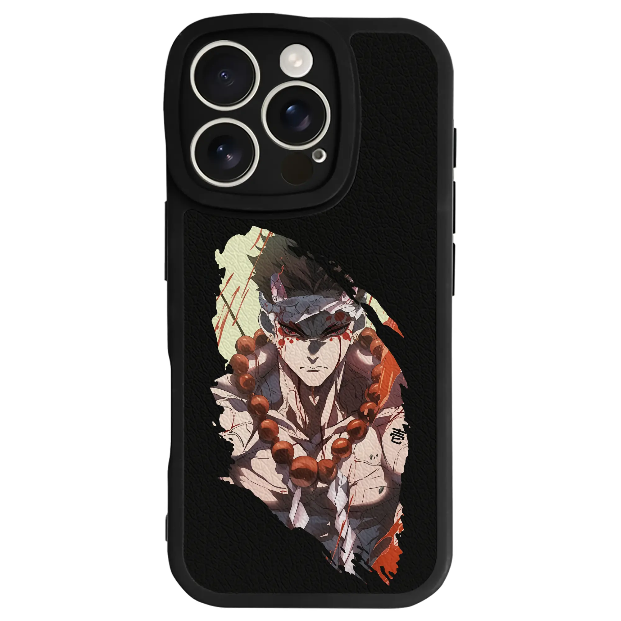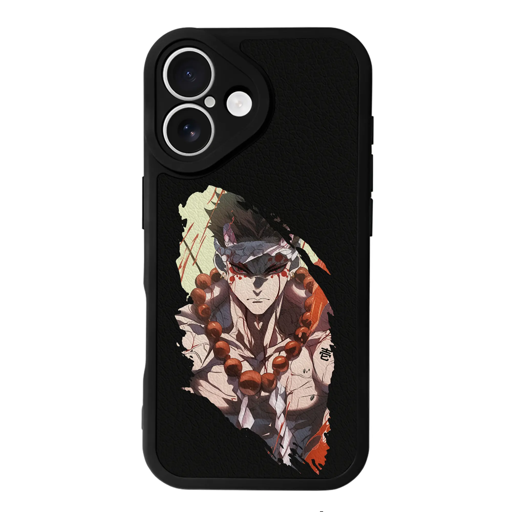 鬼滅の刃 グッズ,悲鳴嶼 行冥 - IPhone 16シリーズ対応 ・ シリコンスマホケース ・ レザー調 ・ 高精度フィット ・ 耐衝撃 ・ ワイヤレス充電対応 ・ 精密カット