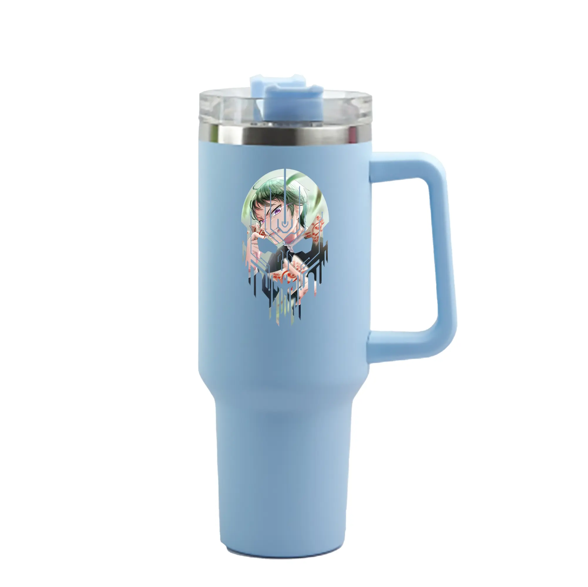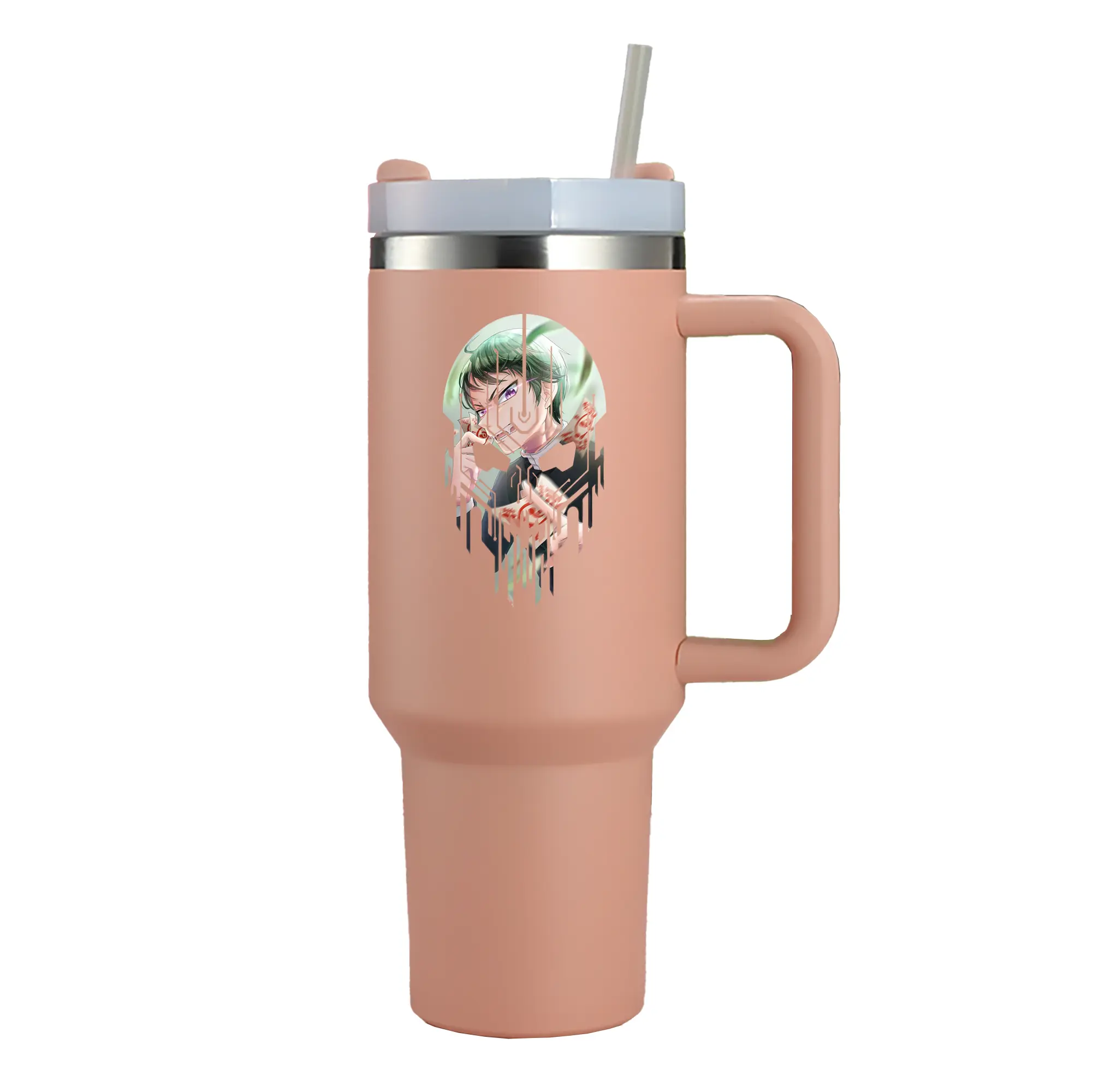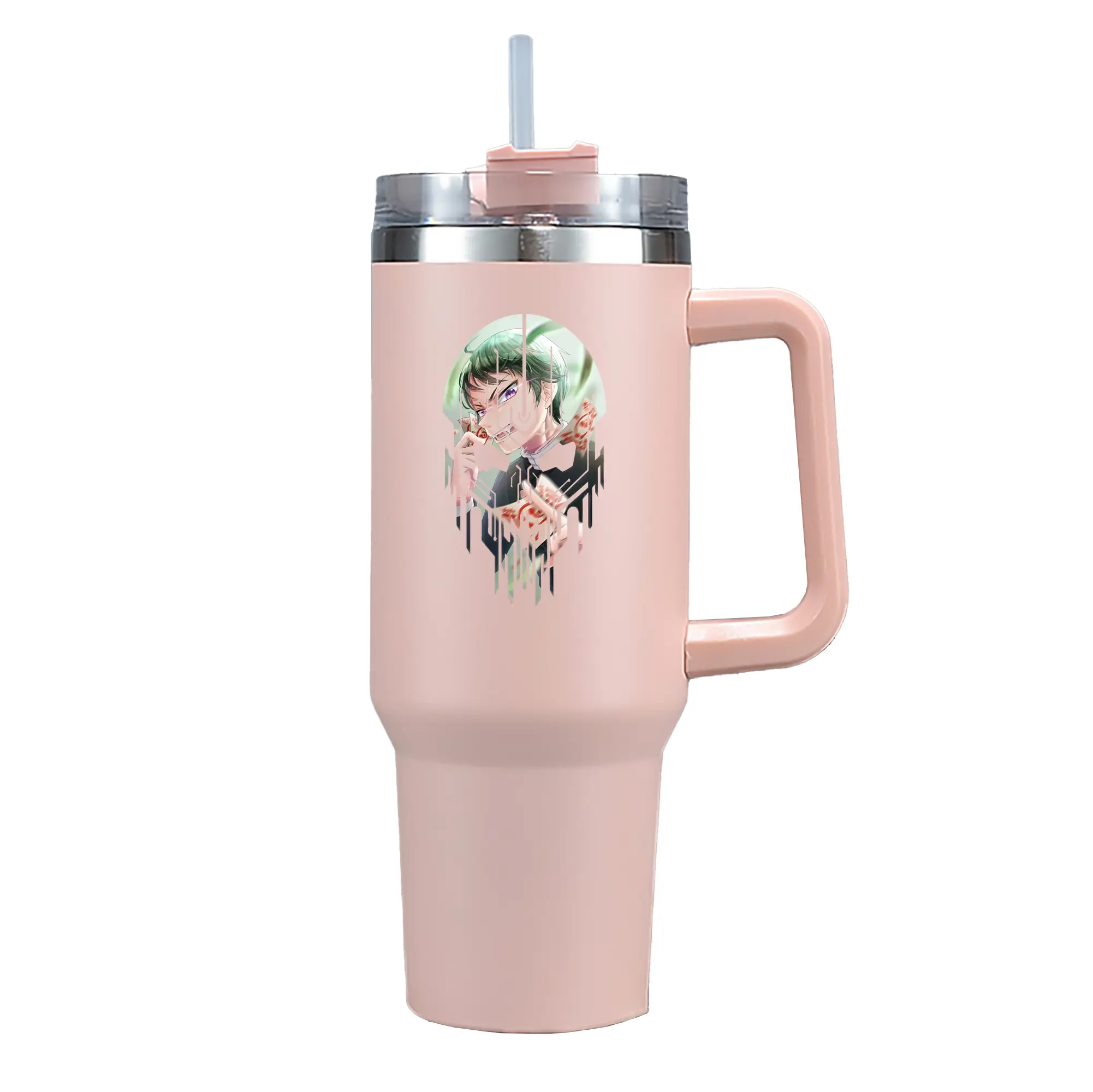 鬼滅の刃 グッズ,愈史郎 - 1200mL 車用タンブラー ・ クリスタルステッカー ・ 304ステンレス 内側 ・ 201ステンレス 外側 ・ 保温 保冷 ・ ハンドル&ストロー付き ・ 通勤 ドライブ アウトドア用