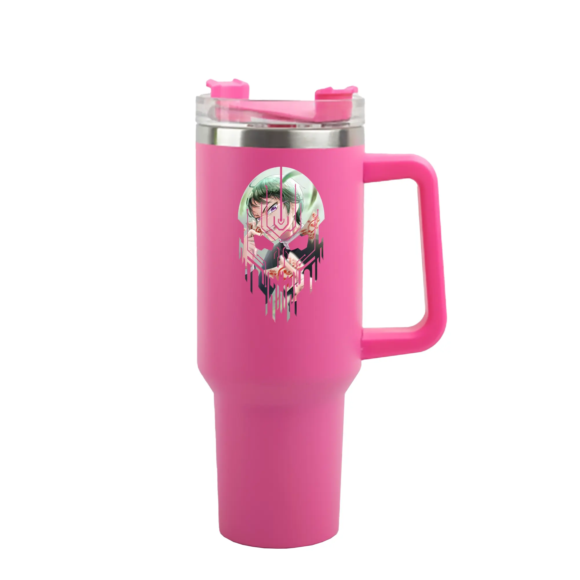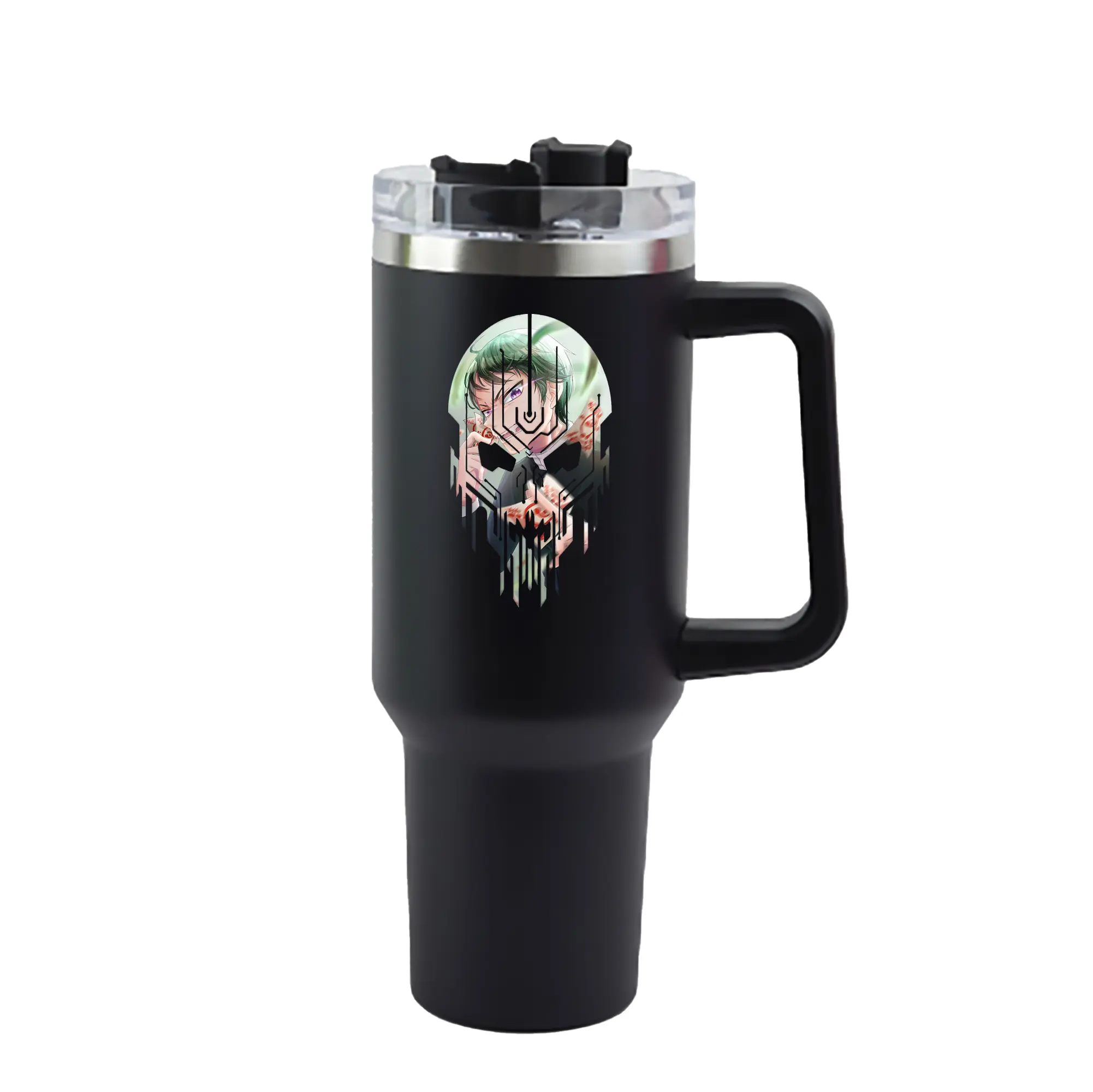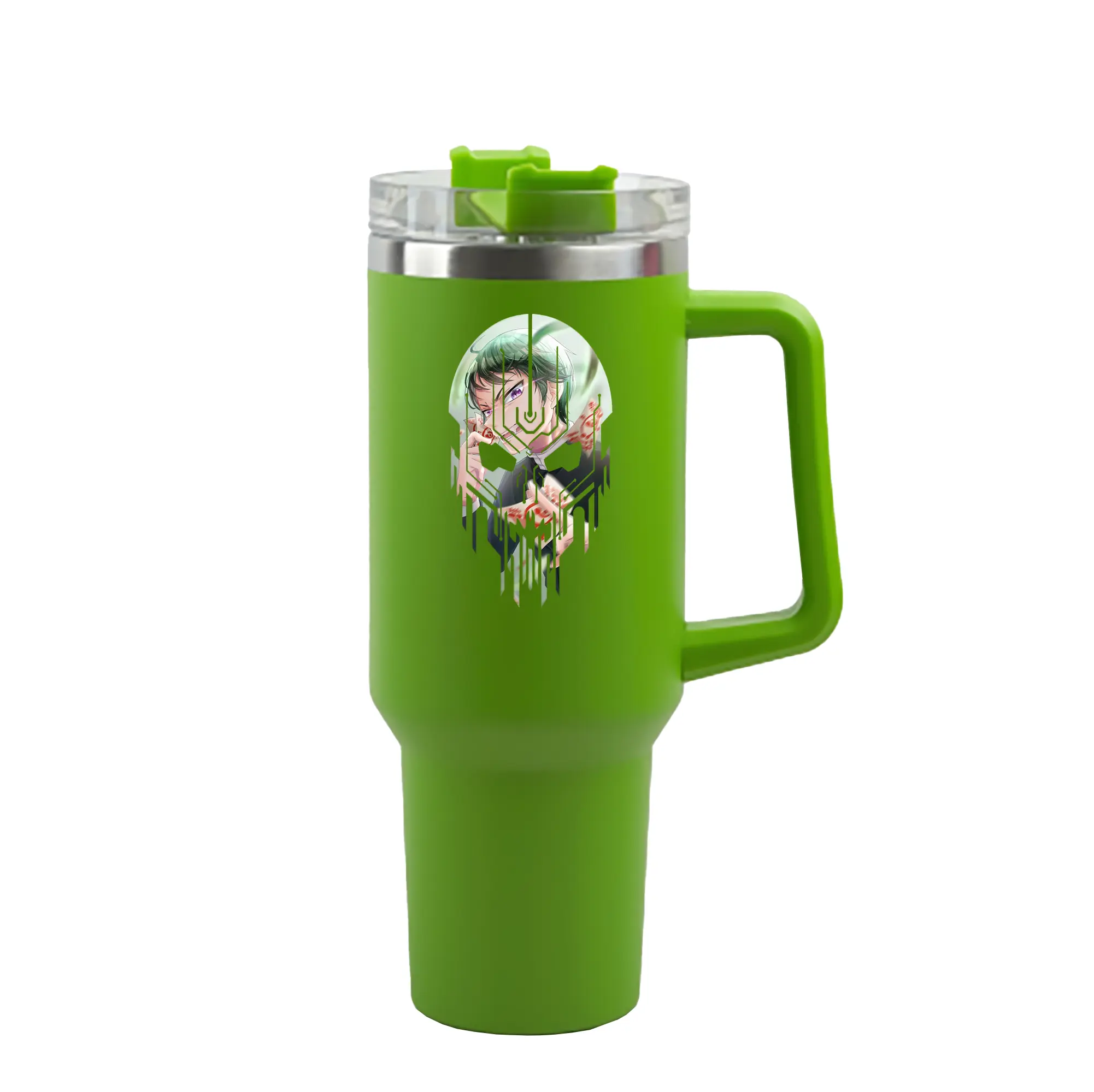 鬼滅の刃 グッズ,愈史郎 - 1200mL 車用タンブラー ・ クリスタルステッカー ・ 304ステンレス 内側 ・ 201ステンレス 外側 ・ 保温 保冷 ・ ハンドル&ストロー付き ・ 通勤 ドライブ アウトドア用