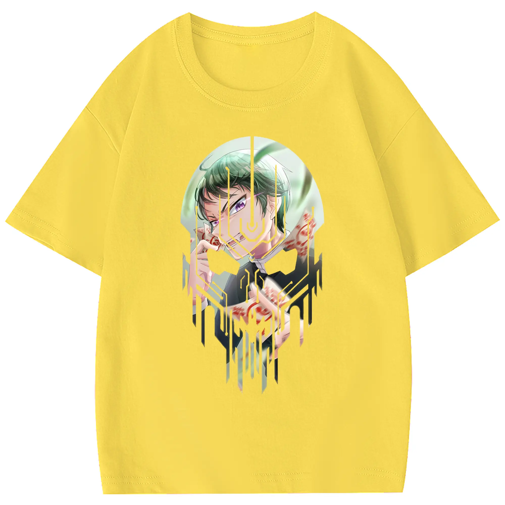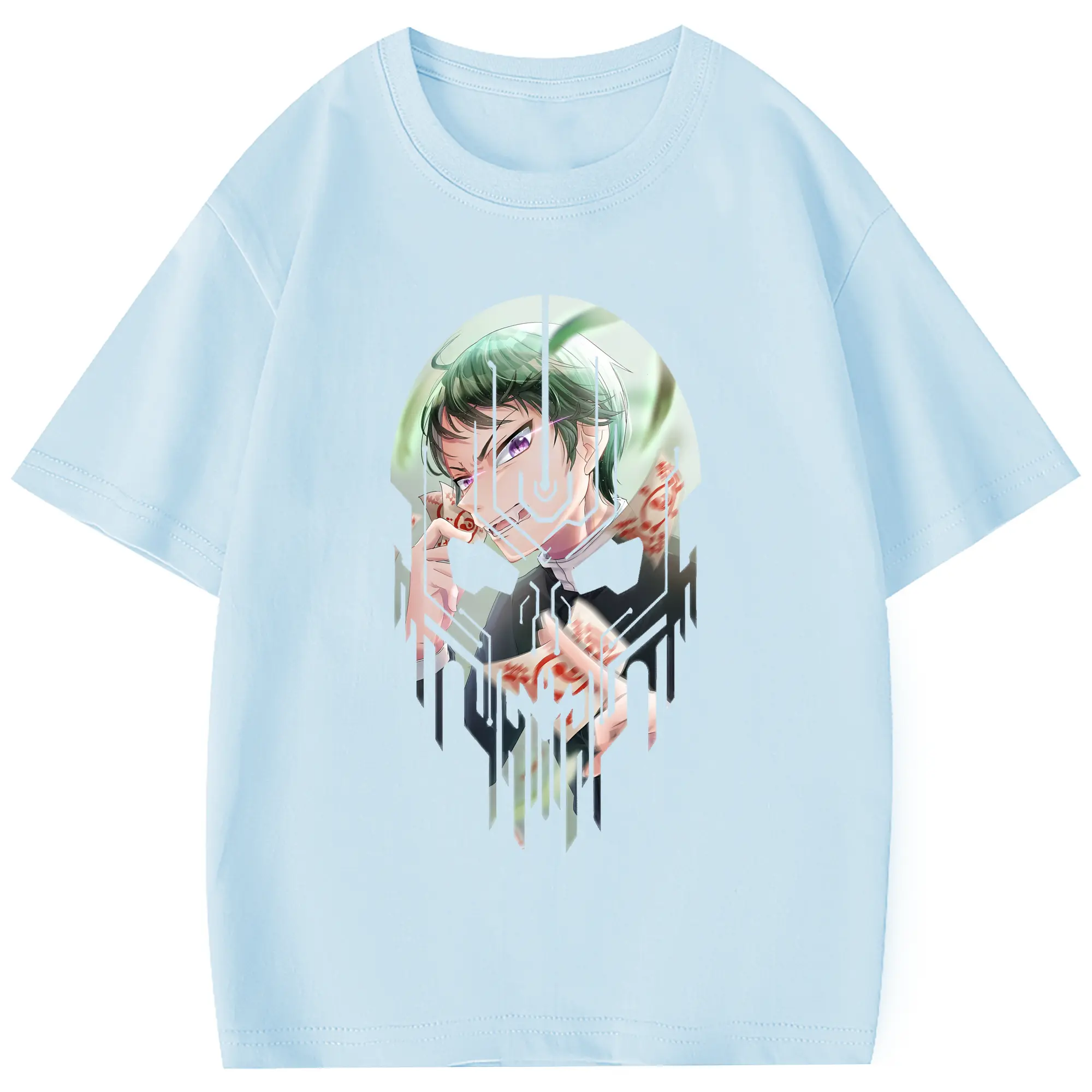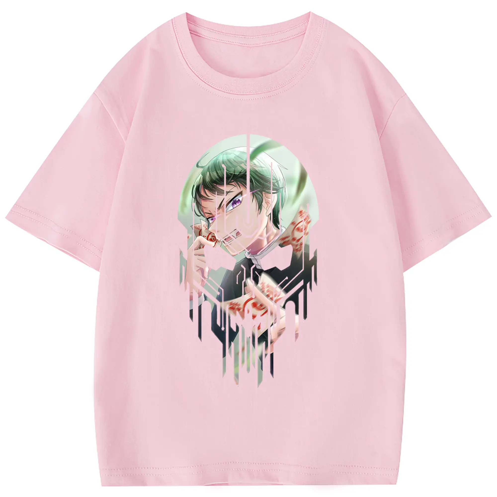 鬼滅の刃 グッズ,愈史郎 - 綿100% 半袖Tシャツ ・ フロントプリント ・ 快適 通気性 ・ 日常使い 散歩 スポーツ用