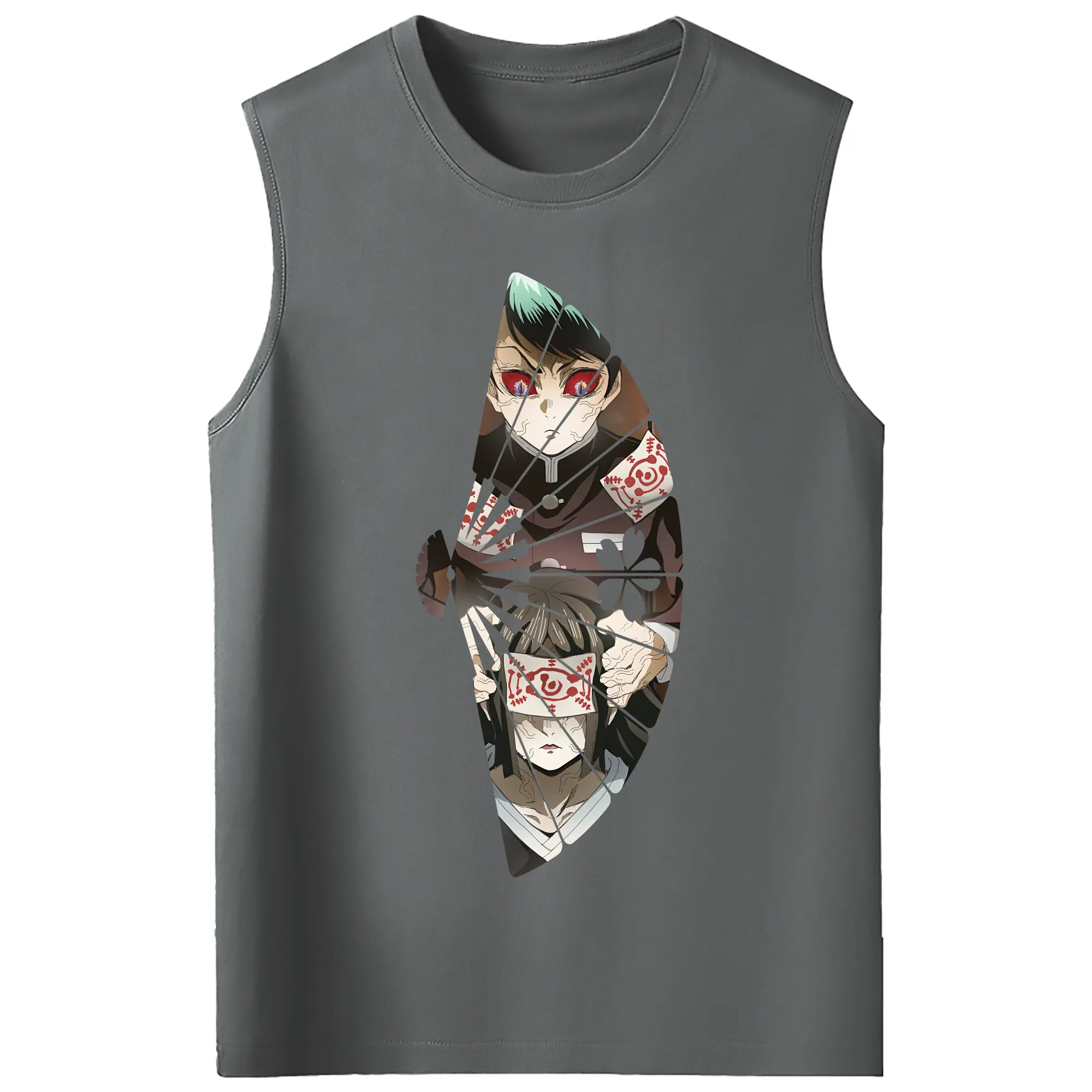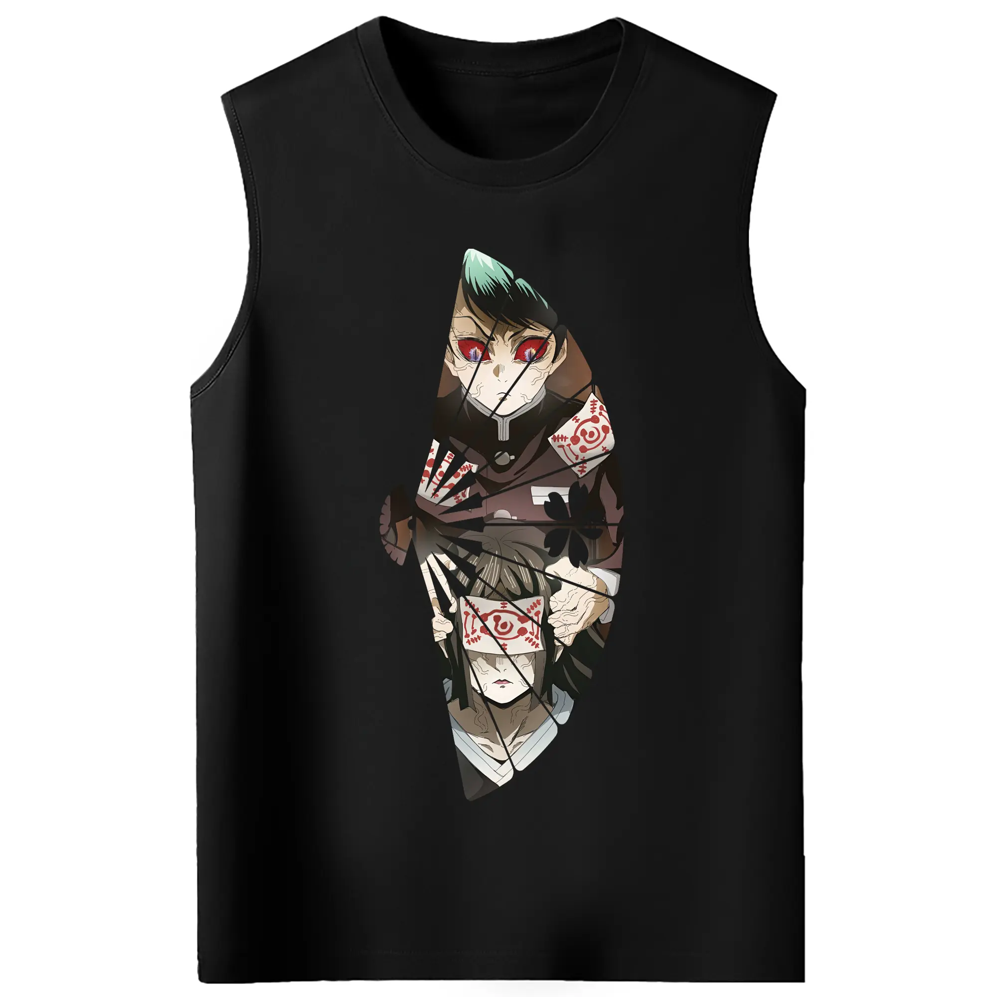 鬼滅の刃 グッズ,愈史郎 - コットン100% タンクトップ ・ フロントプリント ・ タイトフィット ・ 快適 通気性 ・ スポーツ カジュアル 散歩用