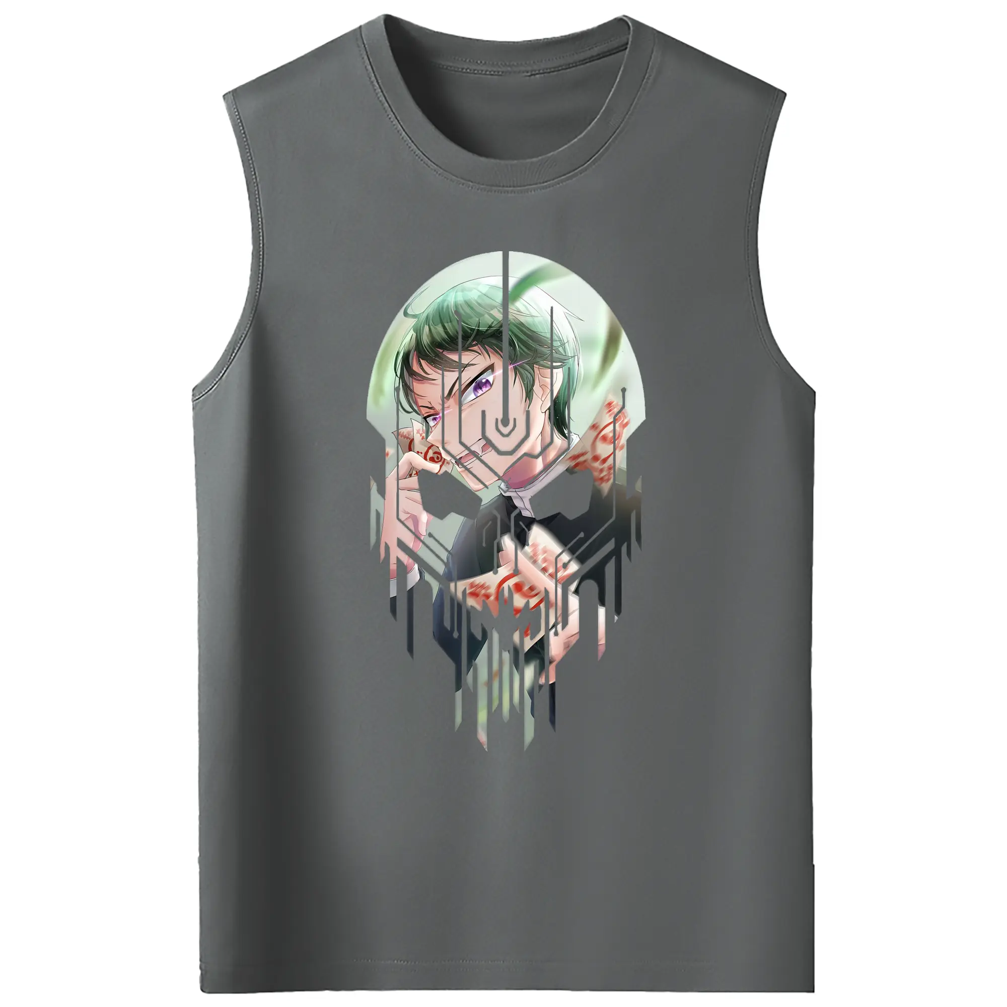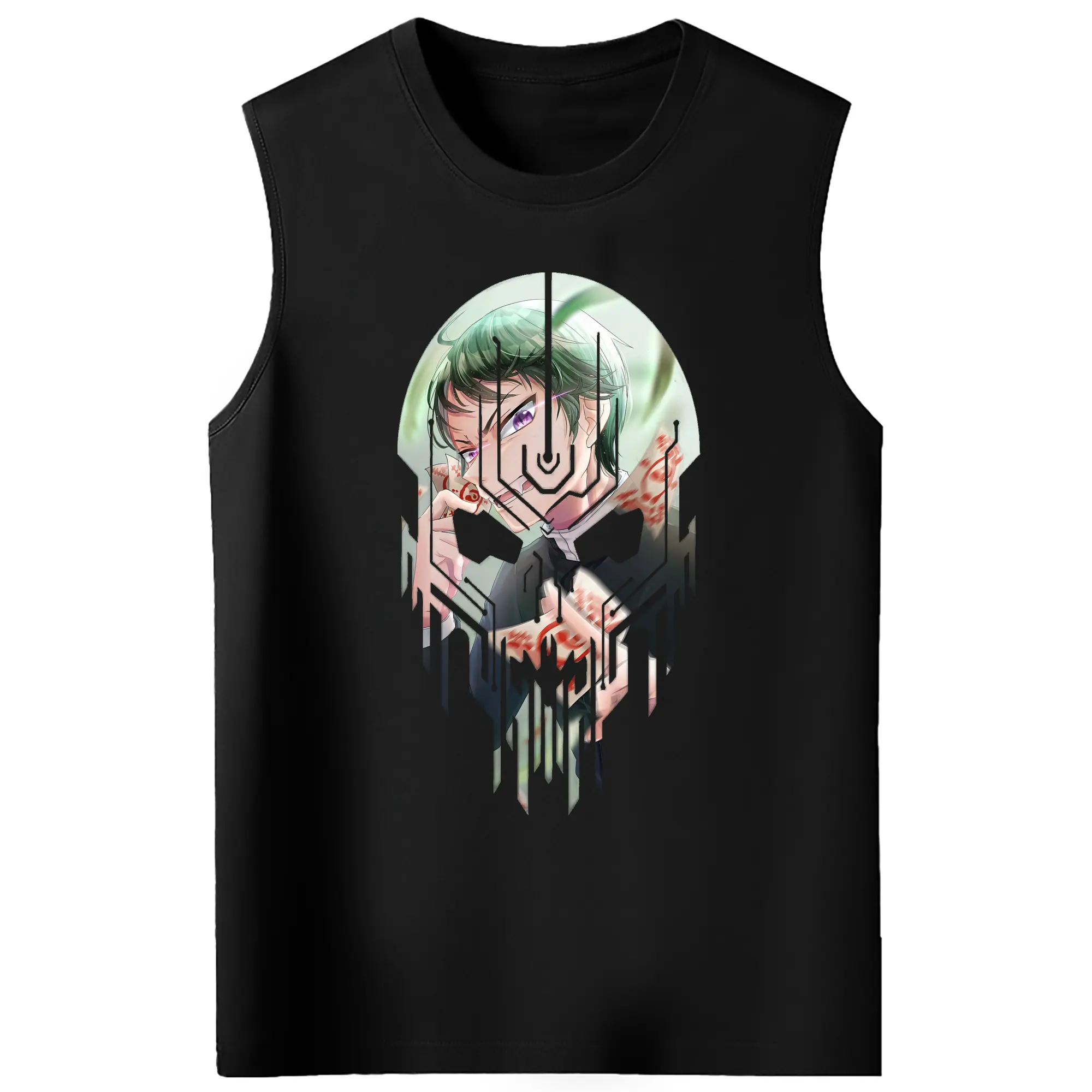 鬼滅の刃 グッズ,愈史郎 - コットン100% タンクトップ ・ フロントプリント ・ タイトフィット ・ 快適 通気性 ・ スポーツ カジュアル 散歩用