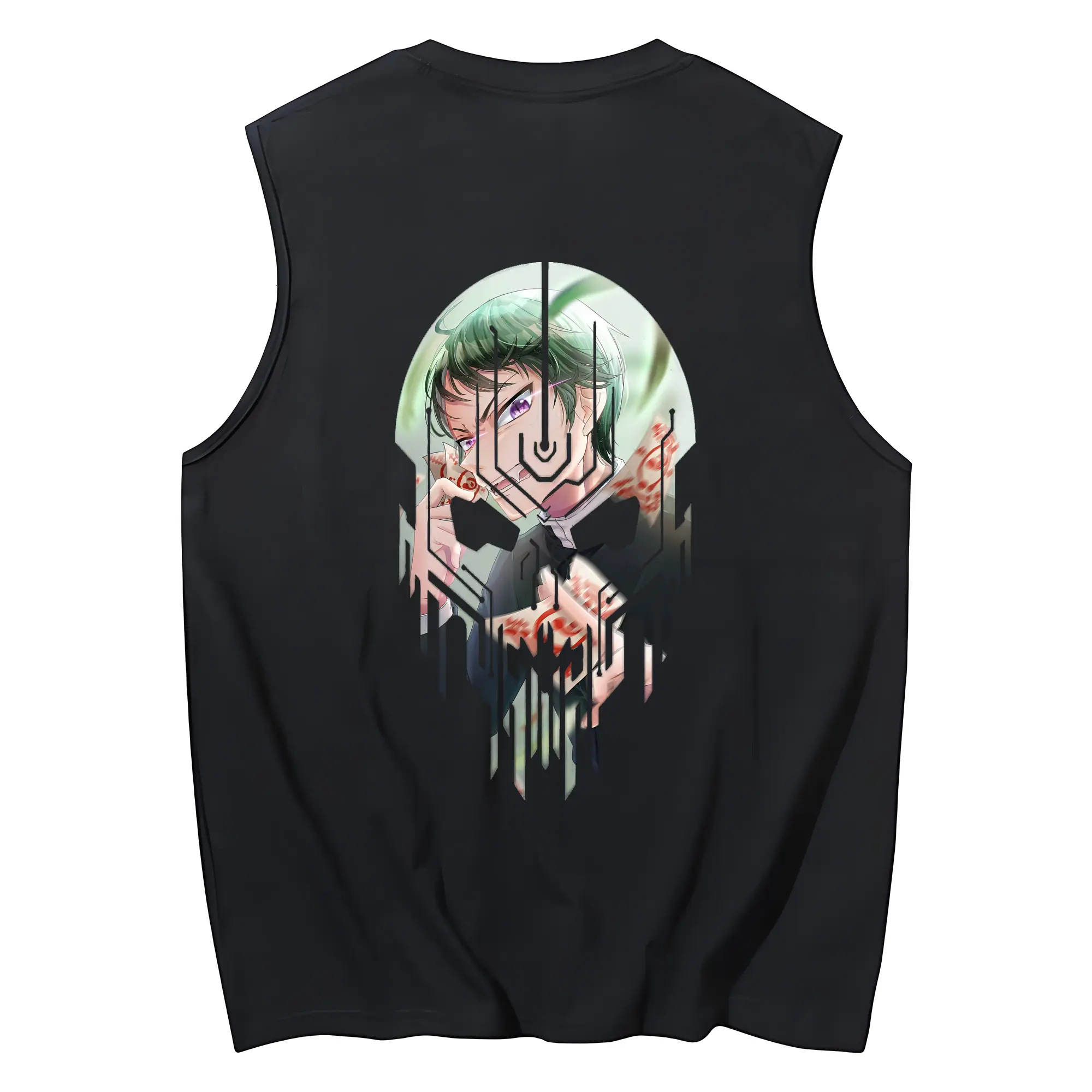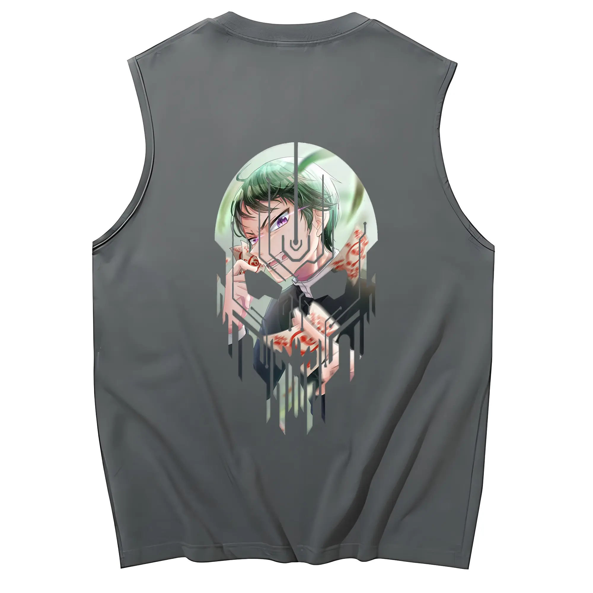 鬼滅の刃 グッズ,愈史郎 - コットン100% タンクトップ ・ 背面プリント ・ タイトシルエット ・ 快適 通気性 ・ スポーツ カジュアル 散歩用
