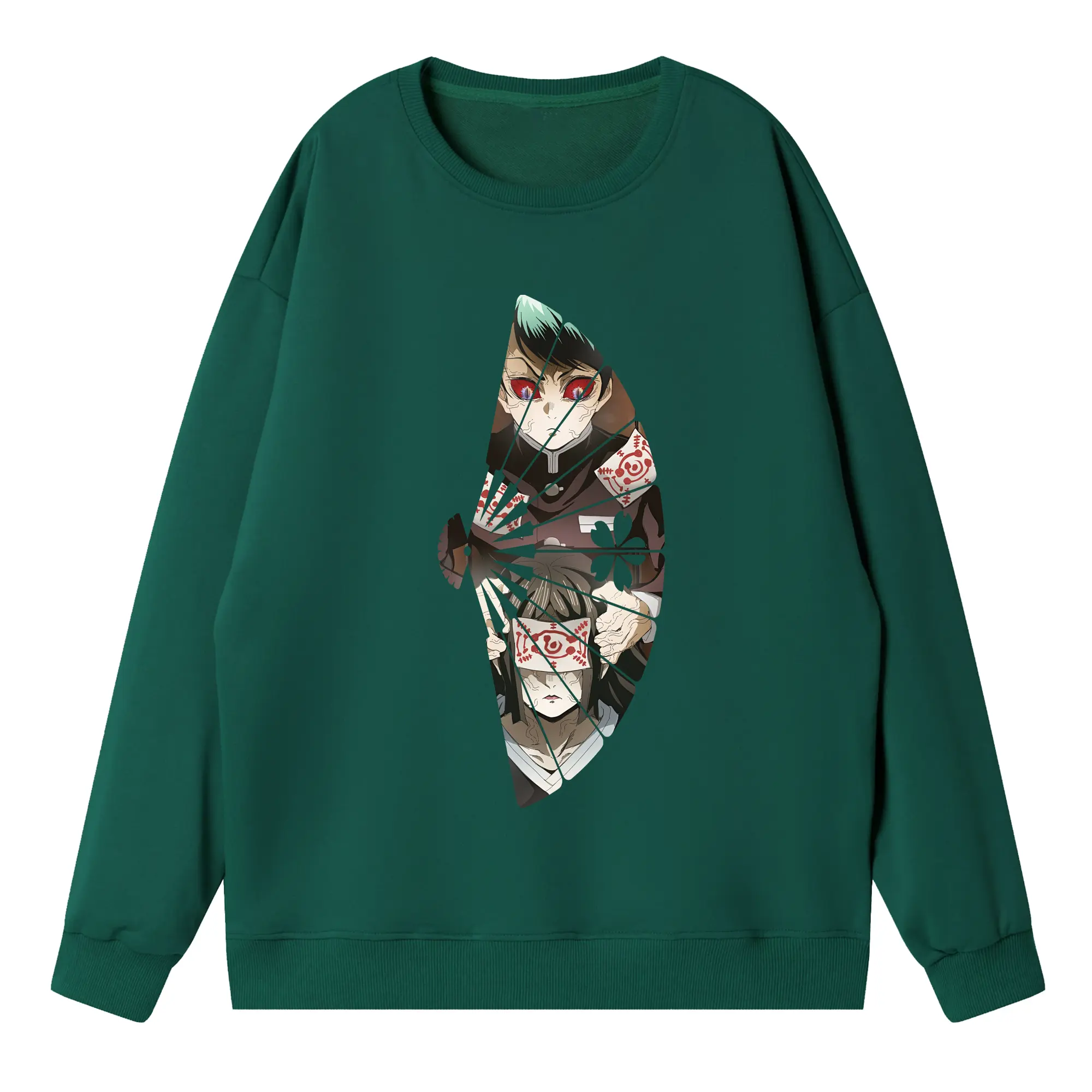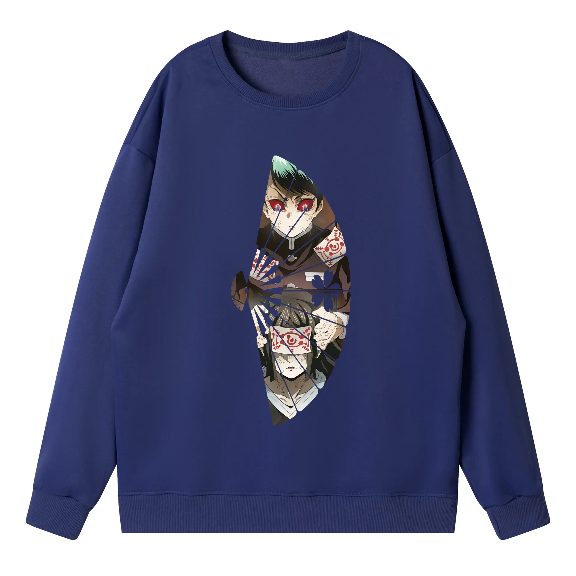 鬼滅の刃 グッズ,愈史郎 - 高品質 クルーネック スウェット ・ コットン59% ポリエステル41% ・ ユニセックス 長袖 トレーナー ・ カジュアル デイリー スポーツ 散歩用