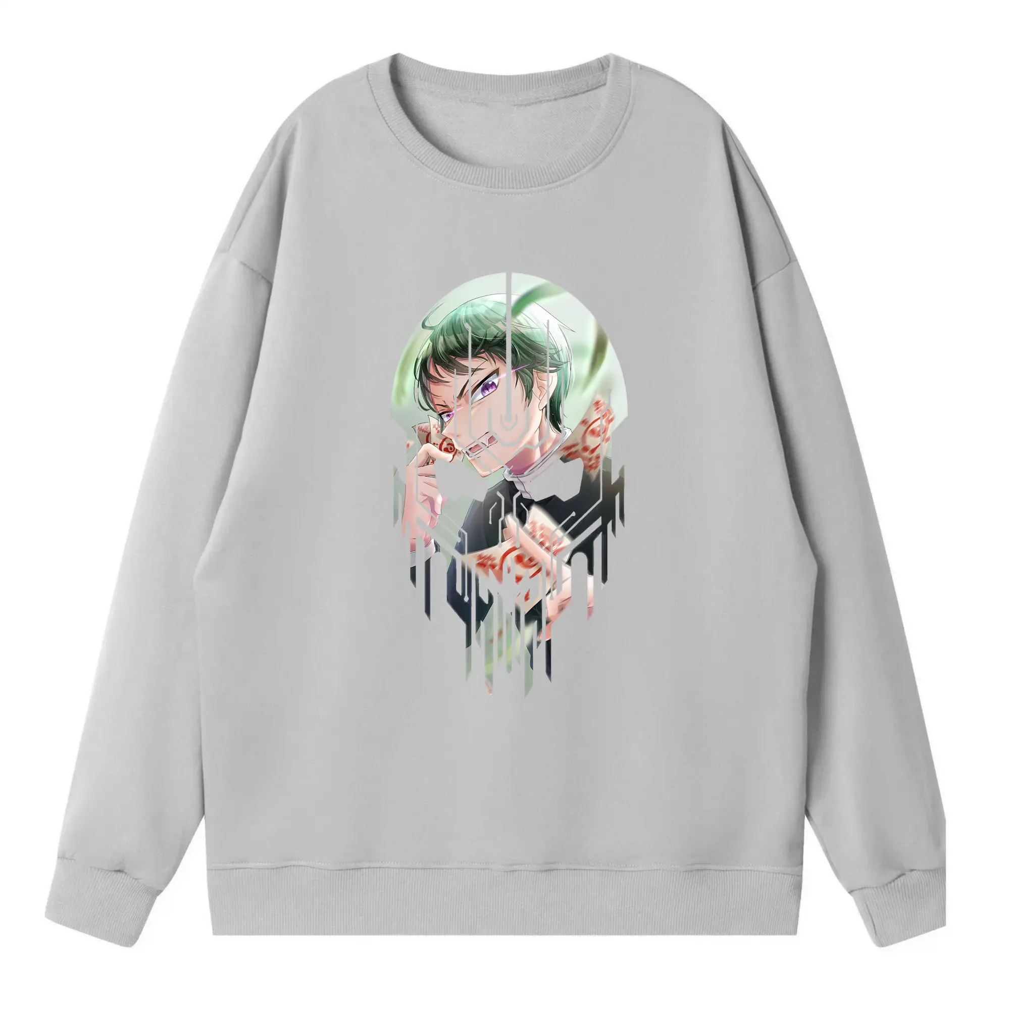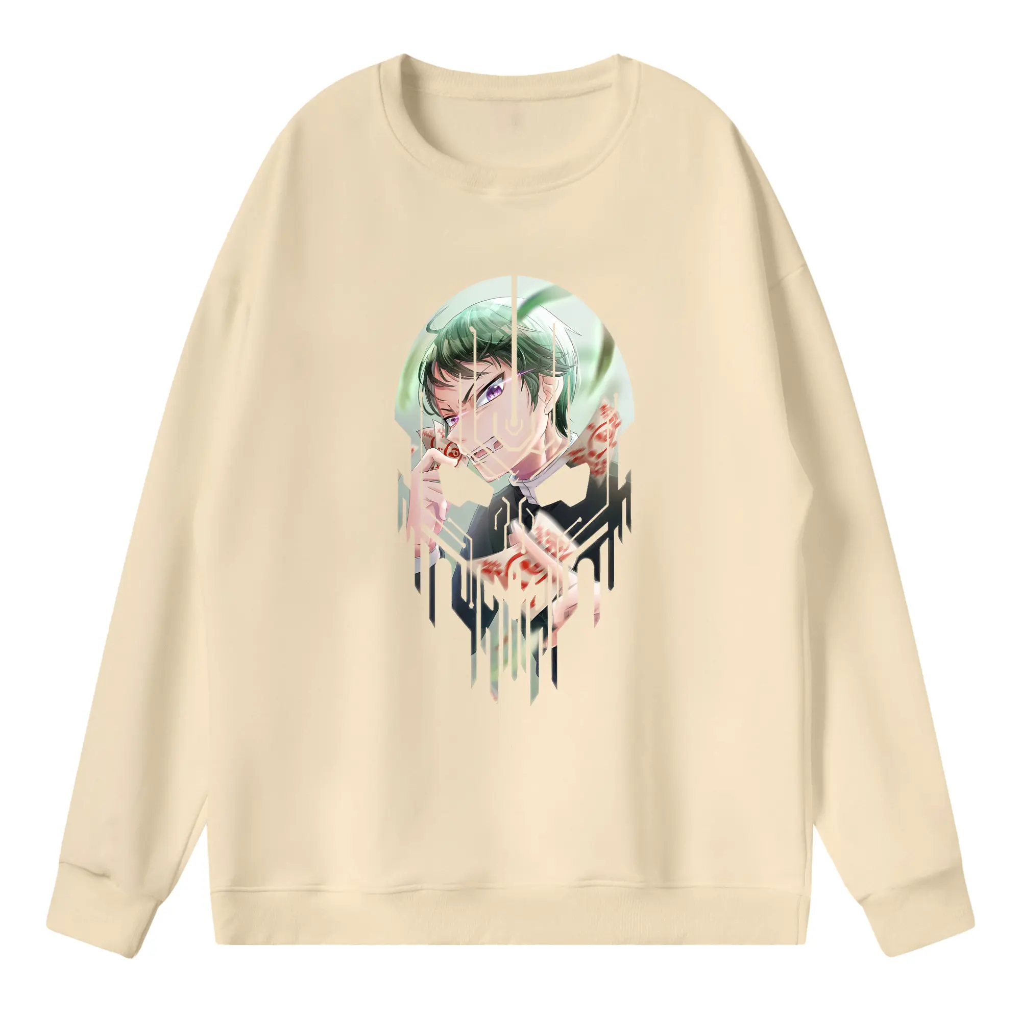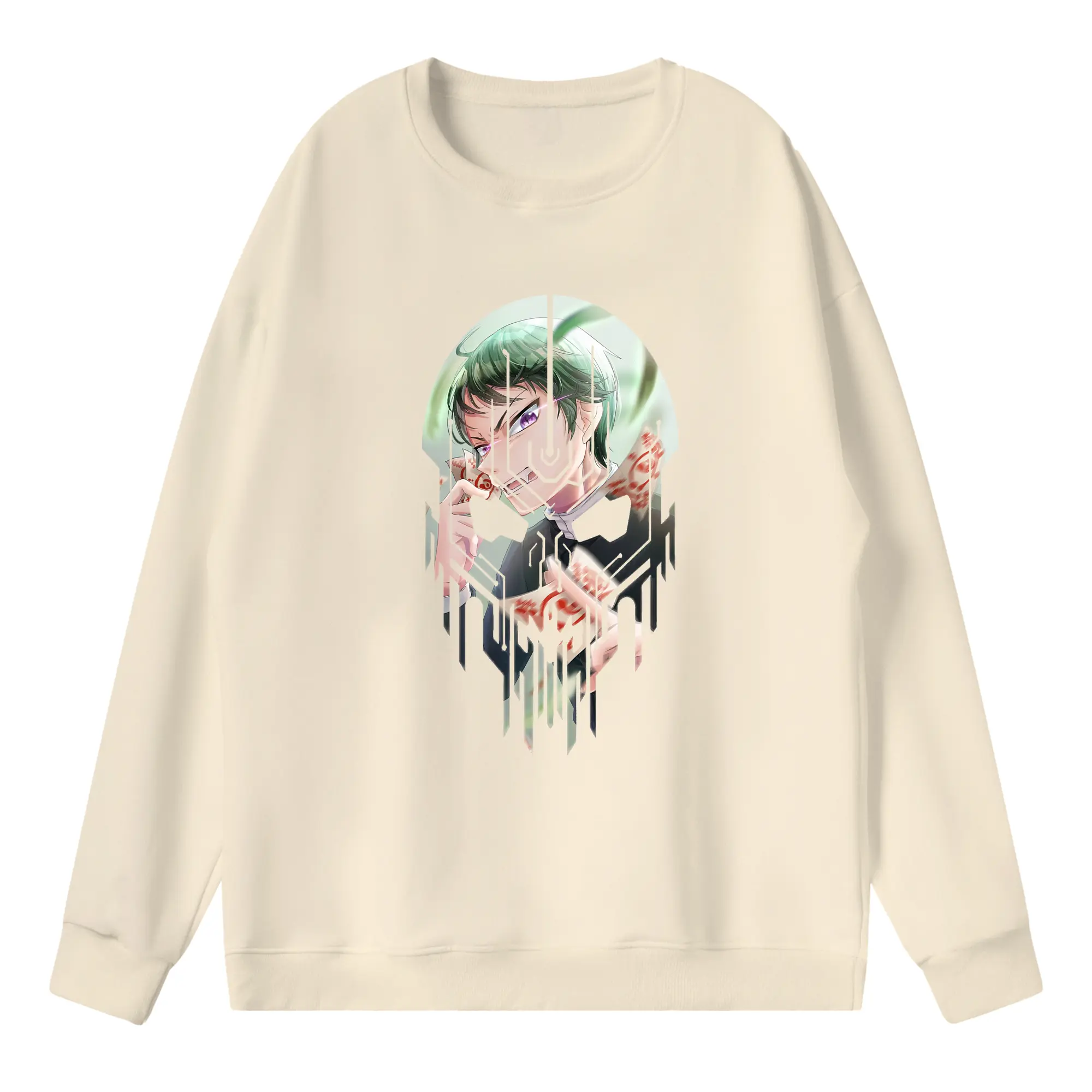 鬼滅の刃 グッズ,愈史郎 - 高品質 クルーネック スウェット ・ コットン59% ポリエステル41% ・ ユニセックス 長袖 トレーナー ・ カジュアル デイリー スポーツ 散歩用