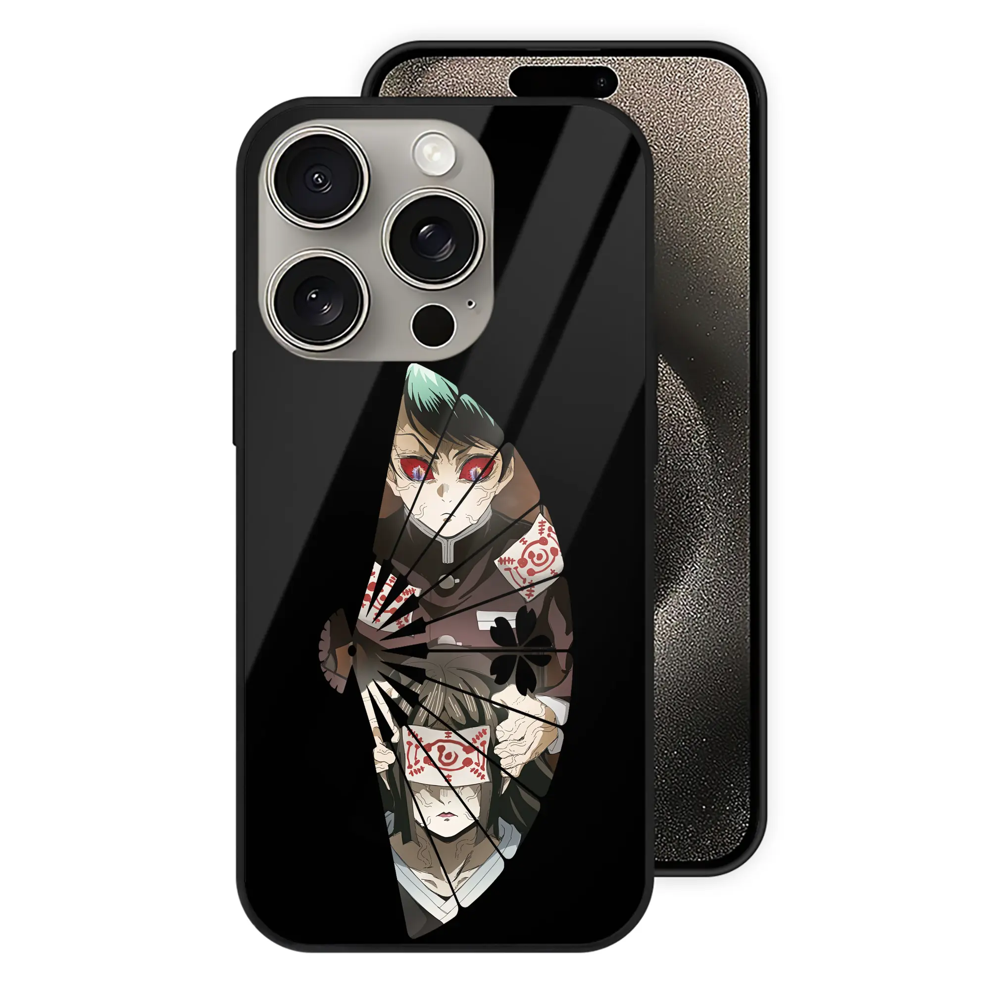鬼滅の刃 グッズ,愈史郎 - IPhone15Pro対応 ・ スマホケース ・ 背面ガラス ・ TPU+強化ガラス ・ 耐衝撃 ・ 黄変防止 ・ ワイヤレス充電対応 ・ 3D立体ボタン