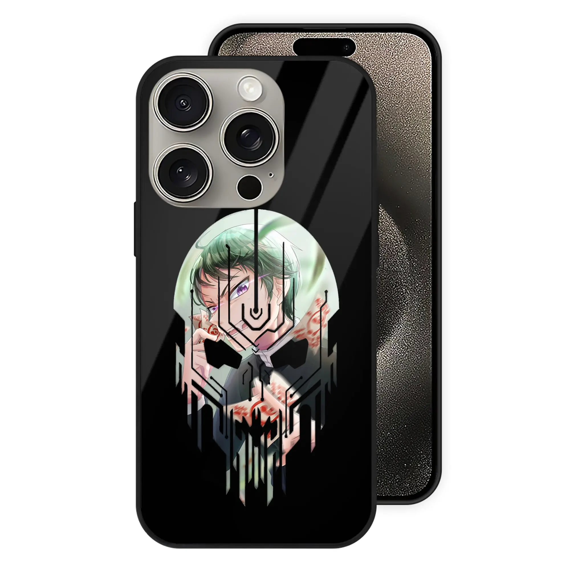 鬼滅の刃 グッズ,愈史郎 - IPhone15Pro対応 ・ スマホケース ・ 背面ガラス ・ TPU+強化ガラス ・ 耐衝撃 ・ 黄変防止 ・ ワイヤレス充電対応 ・ 3D立体ボタン