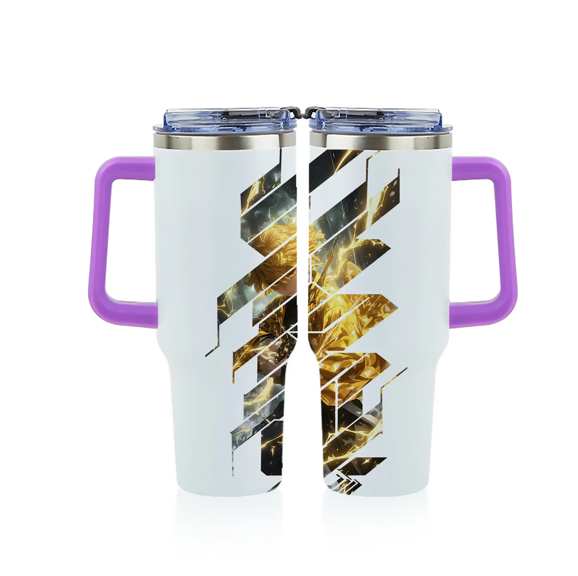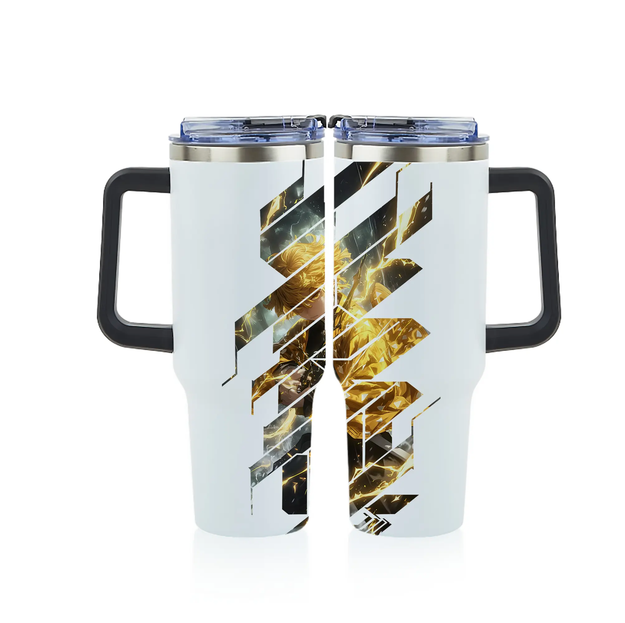 鬼滅の刃 グッズ,我妻 善逸 - 1200mL フルプリント車用タンブラー ・ 304ステンレス 内側 ・ 201ステンレス 外側 ・ 保温 保冷 ・ 通勤 ドライブ アウトドア用
