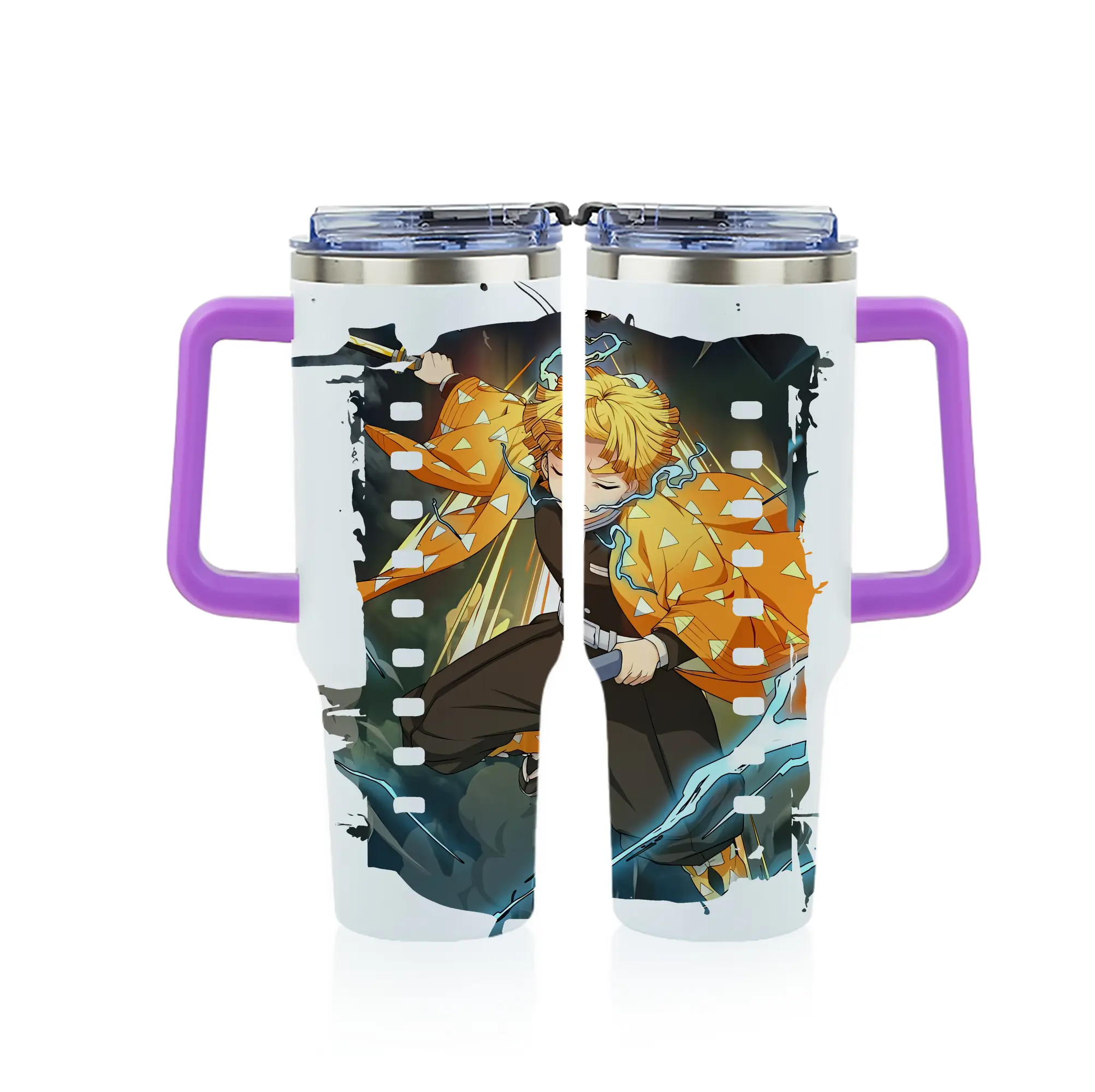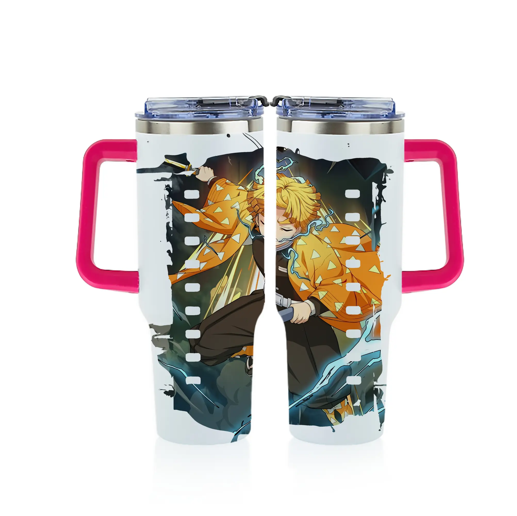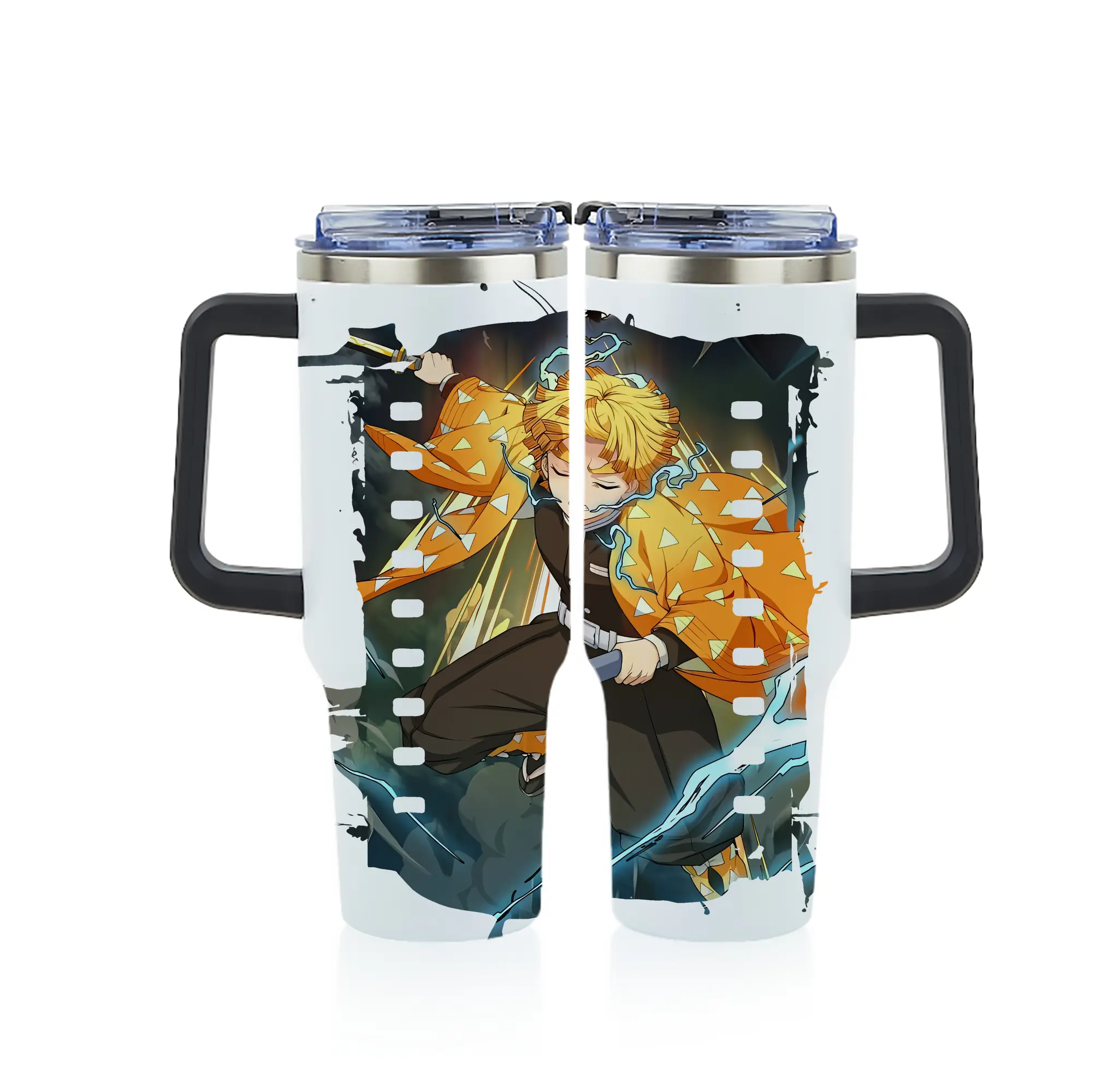 鬼滅の刃 グッズ,我妻 善逸 - 1200mL フルプリント車用タンブラー ・ 304ステンレス 内側 ・ 201ステンレス 外側 ・ 保温 保冷 ・ 通勤 ドライブ アウトドア用