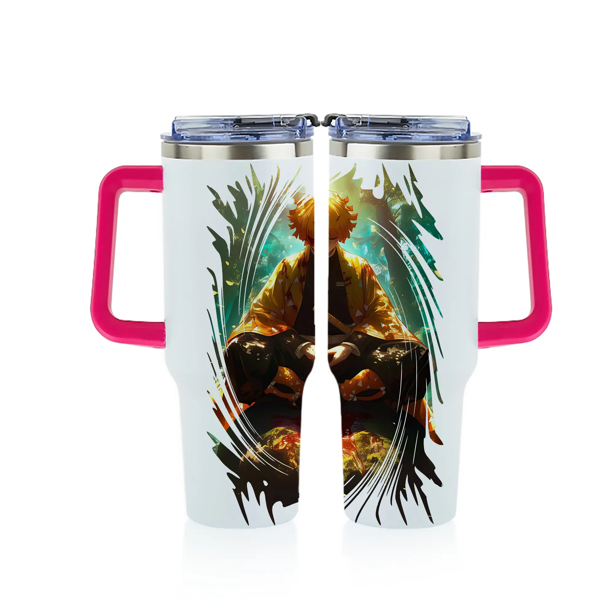 鬼滅の刃 グッズ,我妻 善逸 - 1200mL フルプリント車用タンブラー ・ 304ステンレス 内側 ・ 201ステンレス 外側 ・ 保温 保冷 ・ 通勤 ドライブ アウトドア用
