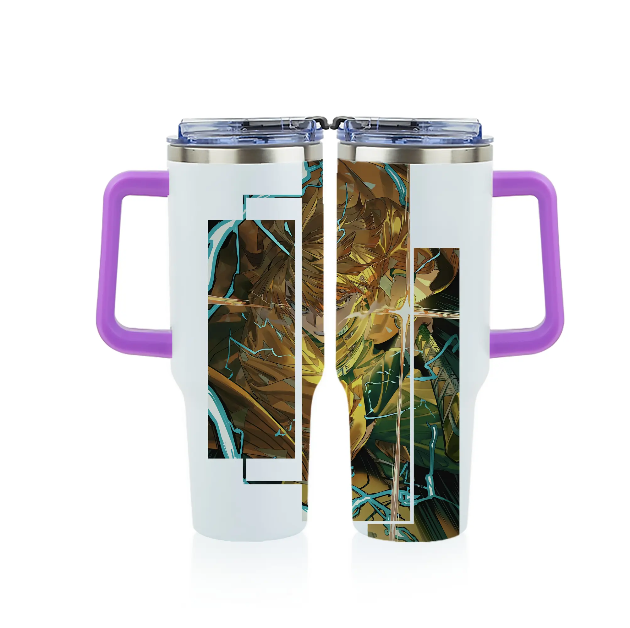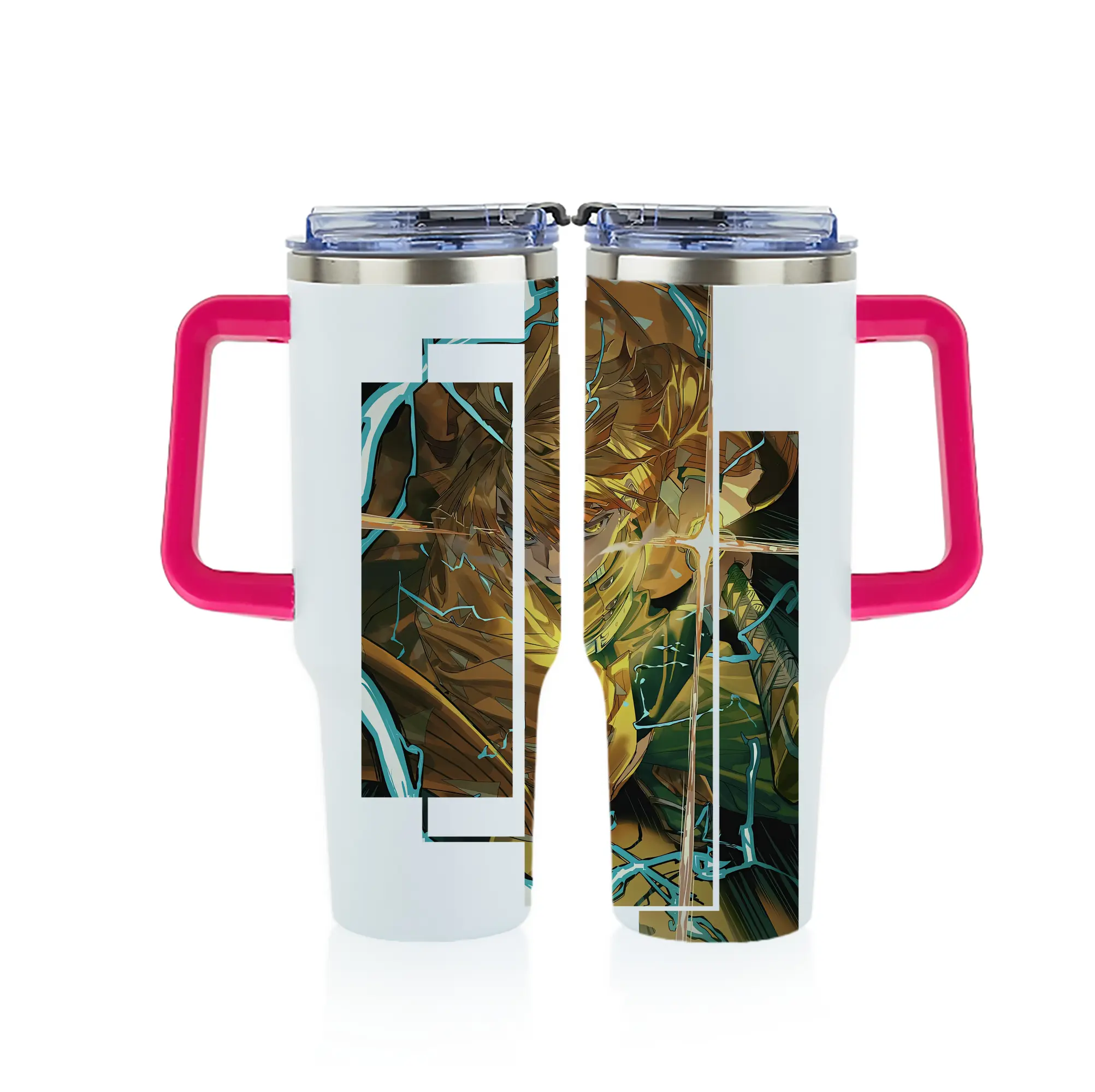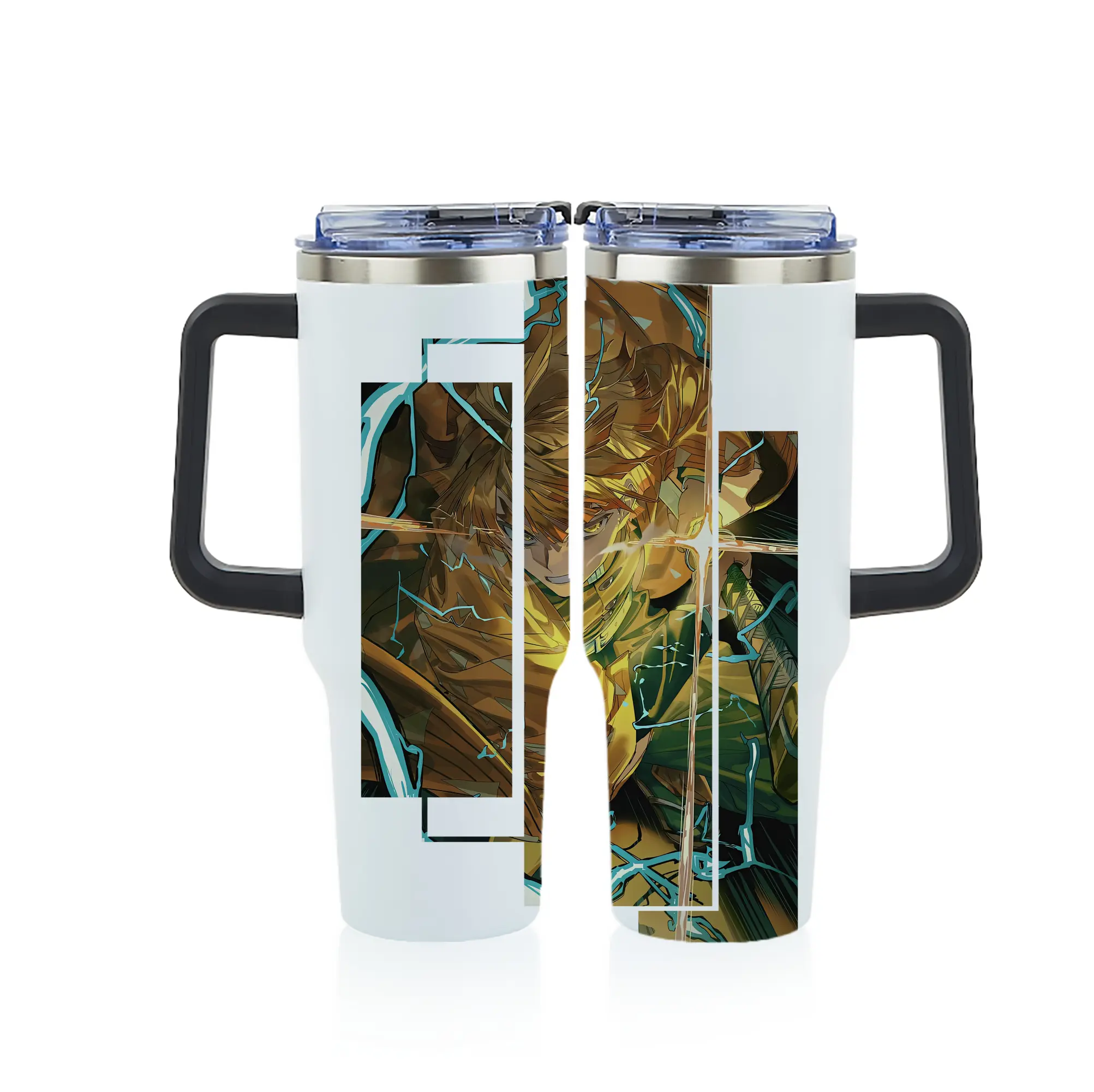 鬼滅の刃 グッズ,我妻 善逸 - 1200mL フルプリント車用タンブラー ・ 304ステンレス 内側 ・ 201ステンレス 外側 ・ 保温 保冷 ・ 通勤 ドライブ アウトドア用