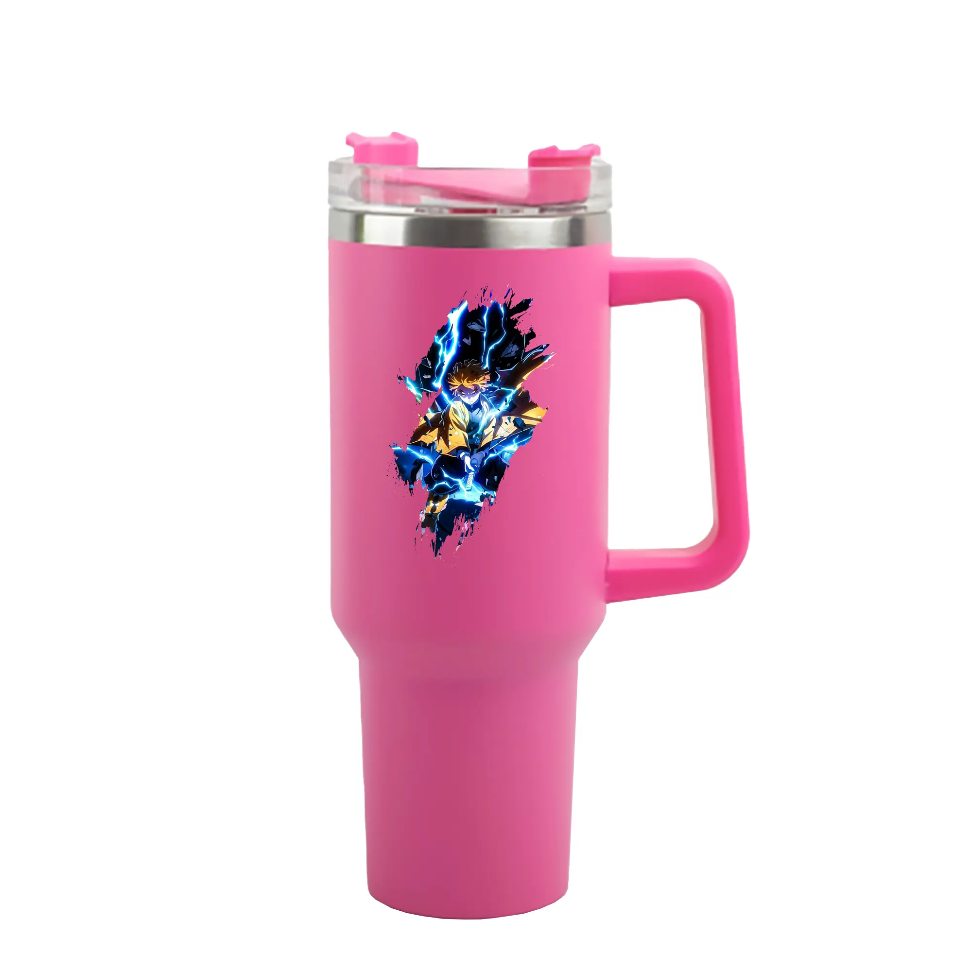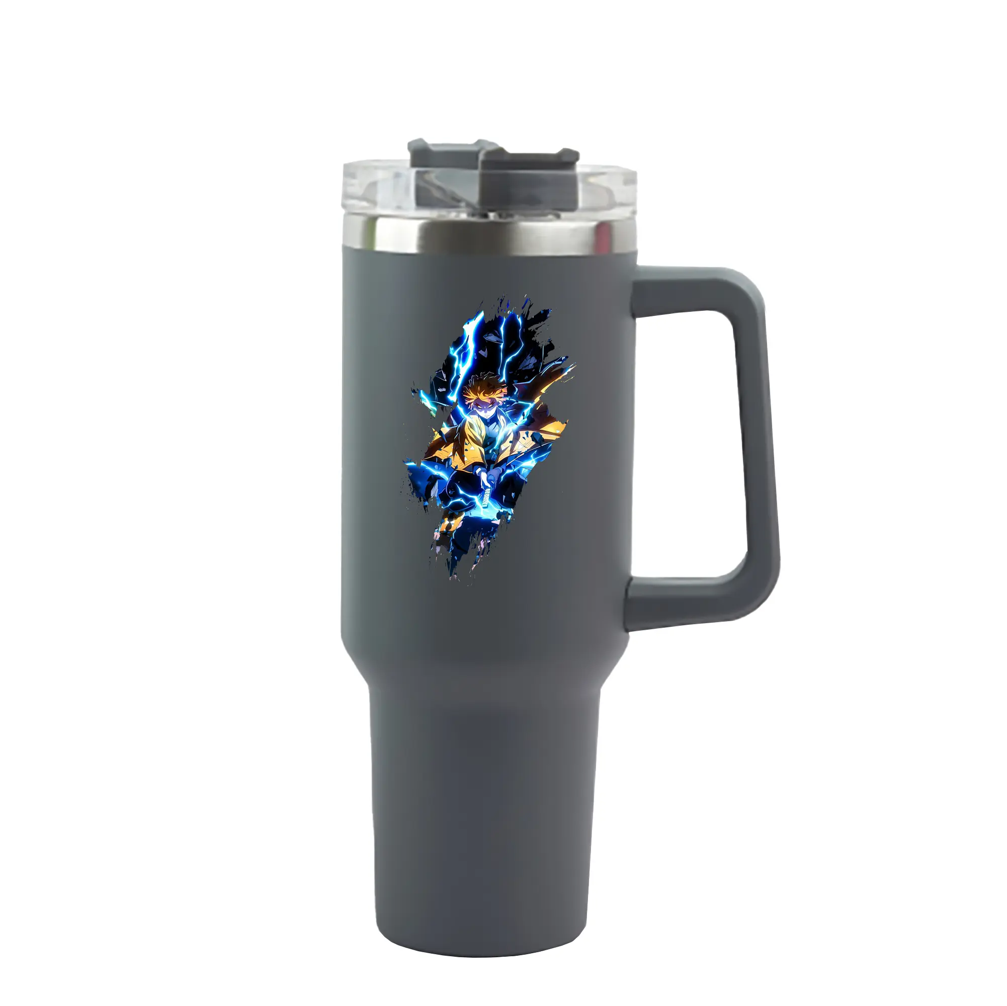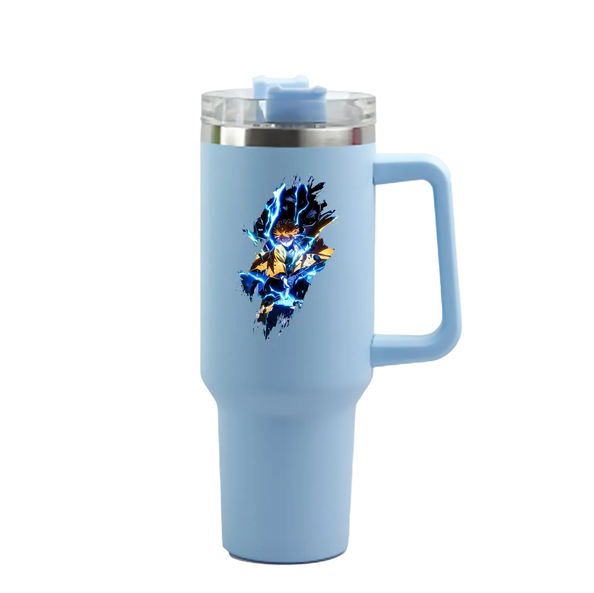 鬼滅の刃 グッズ,我妻 善逸 - 1200mL 車用タンブラー ・ クリスタルステッカー ・ 304ステンレス 内側 ・ 201ステンレス 外側 ・ 保温 保冷 ・ ハンドル&ストロー付き ・ 通勤 ドライブ アウトドア用