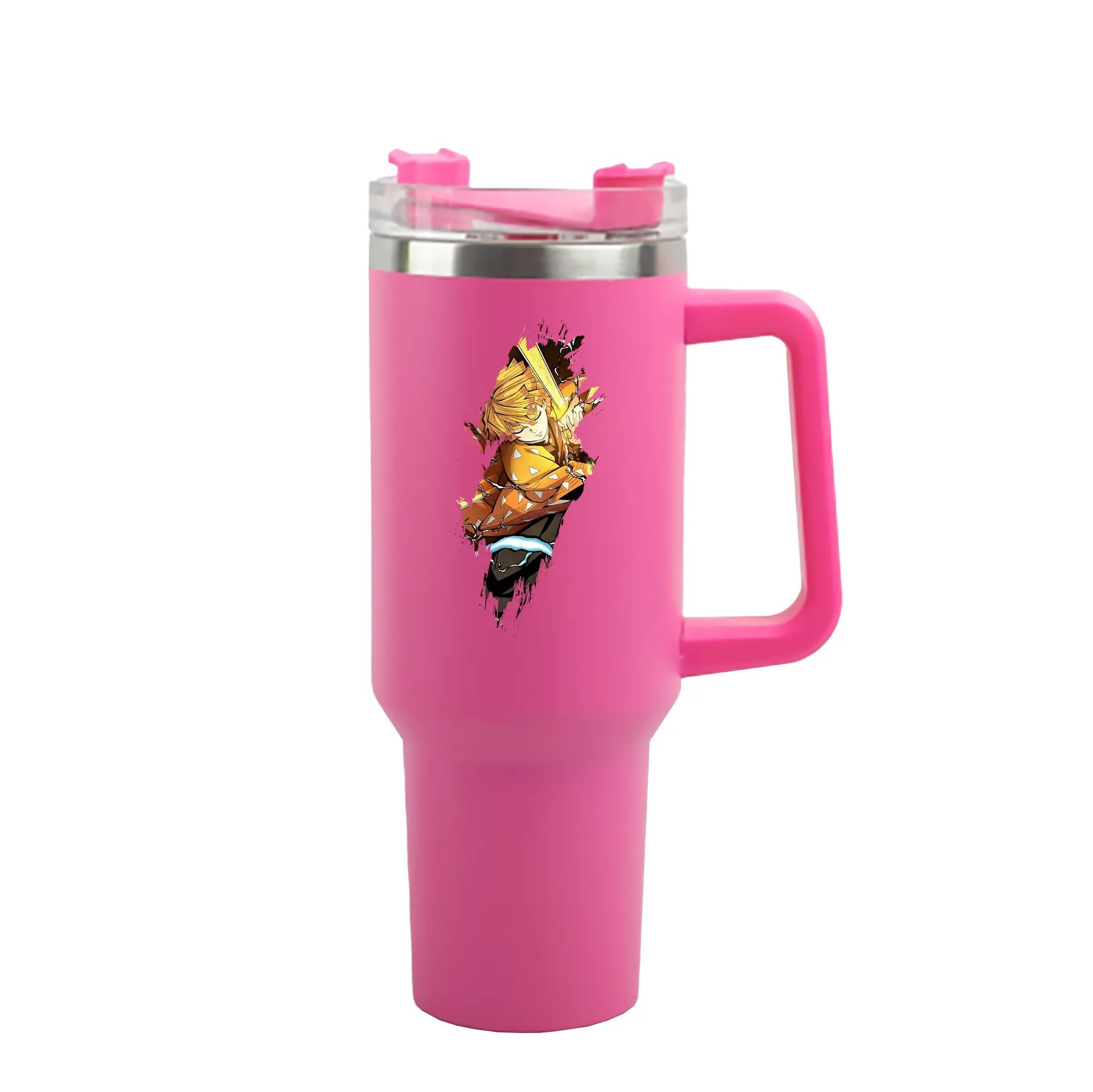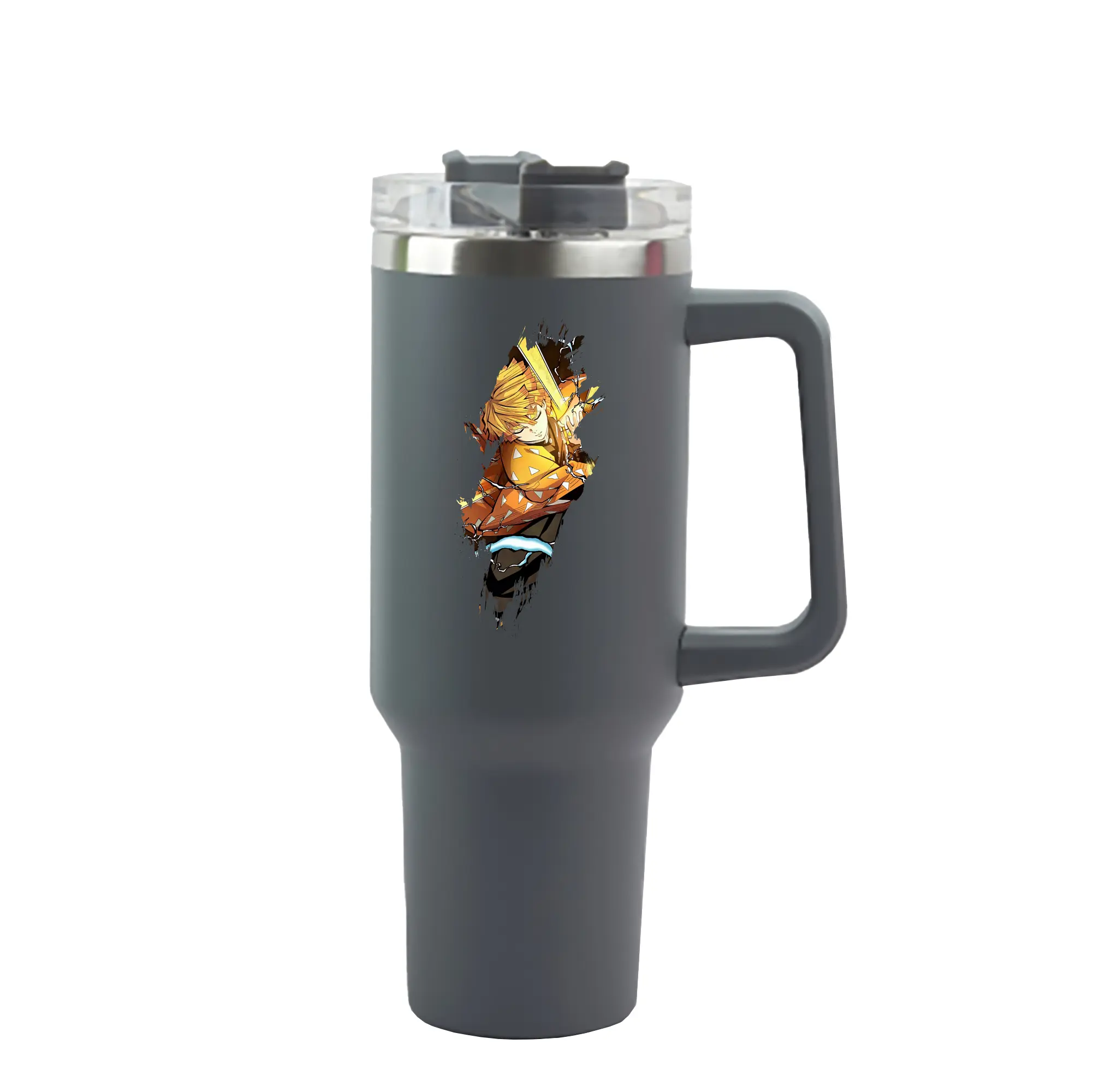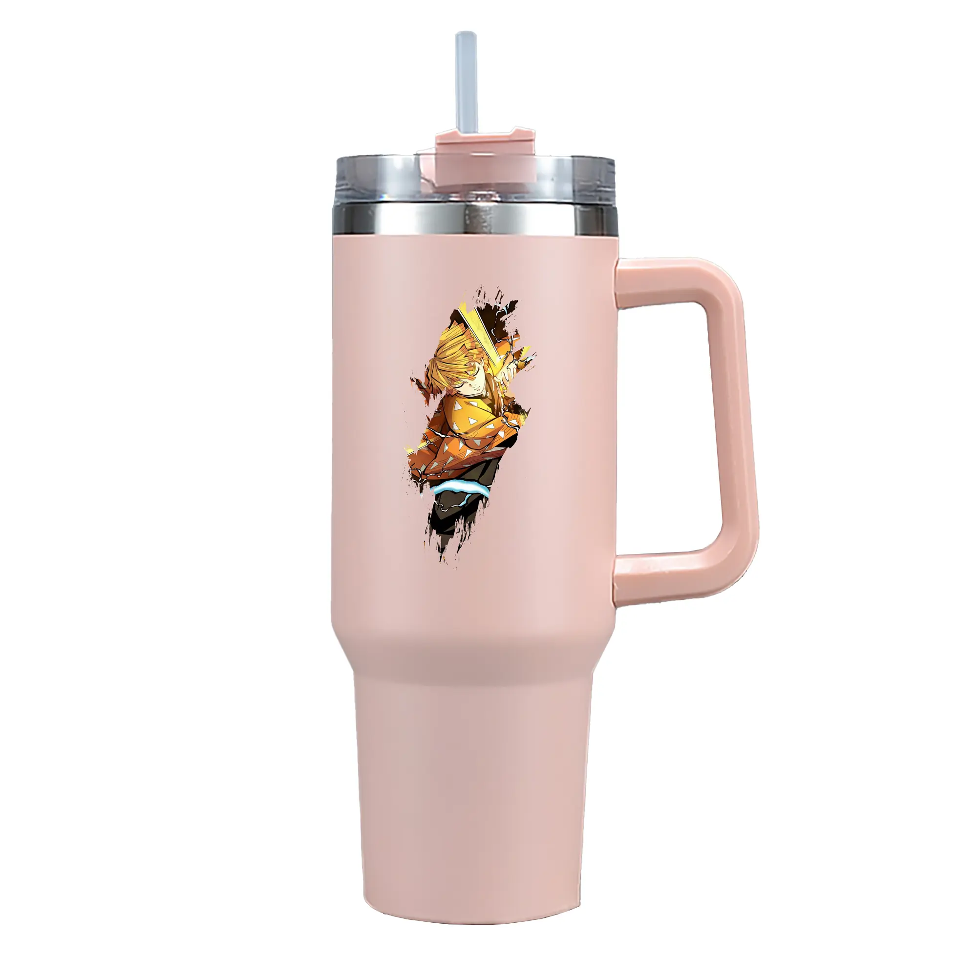 鬼滅の刃 グッズ,我妻 善逸 - 1200mL 車用タンブラー ・ クリスタルステッカー ・ 304ステンレス 内側 ・ 201ステンレス 外側 ・ 保温 保冷 ・ ハンドル&ストロー付き ・ 通勤 ドライブ アウトドア用