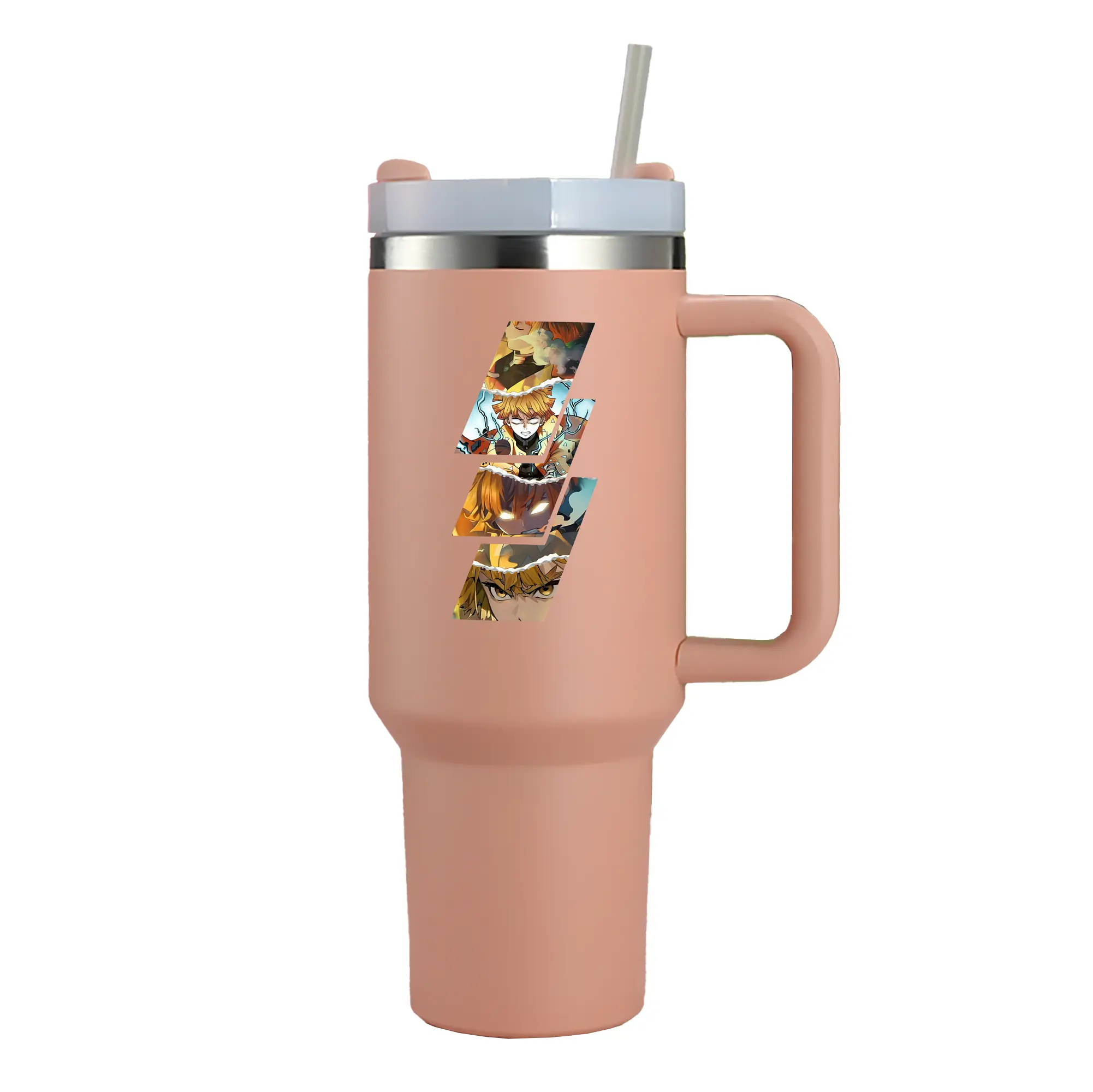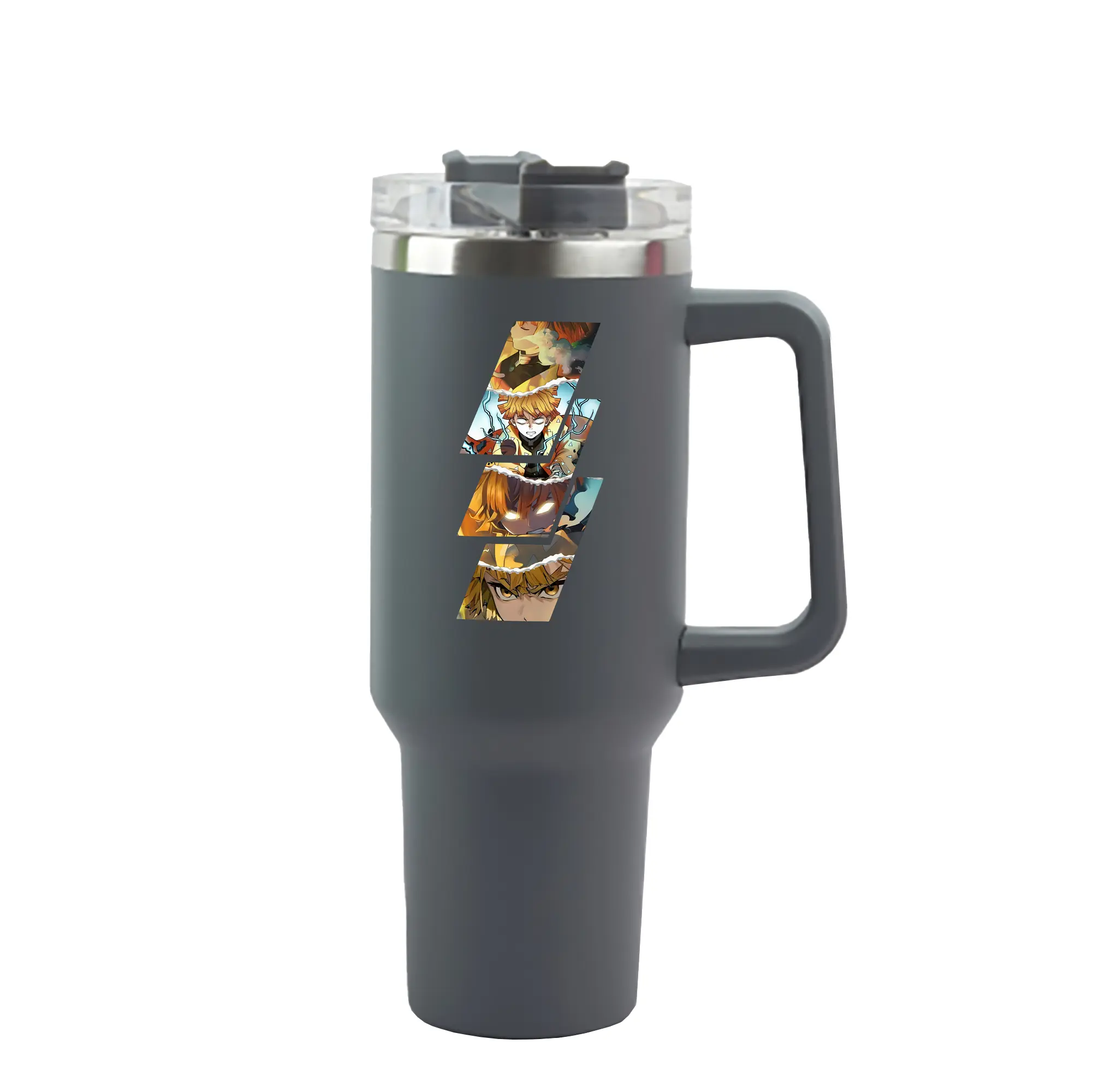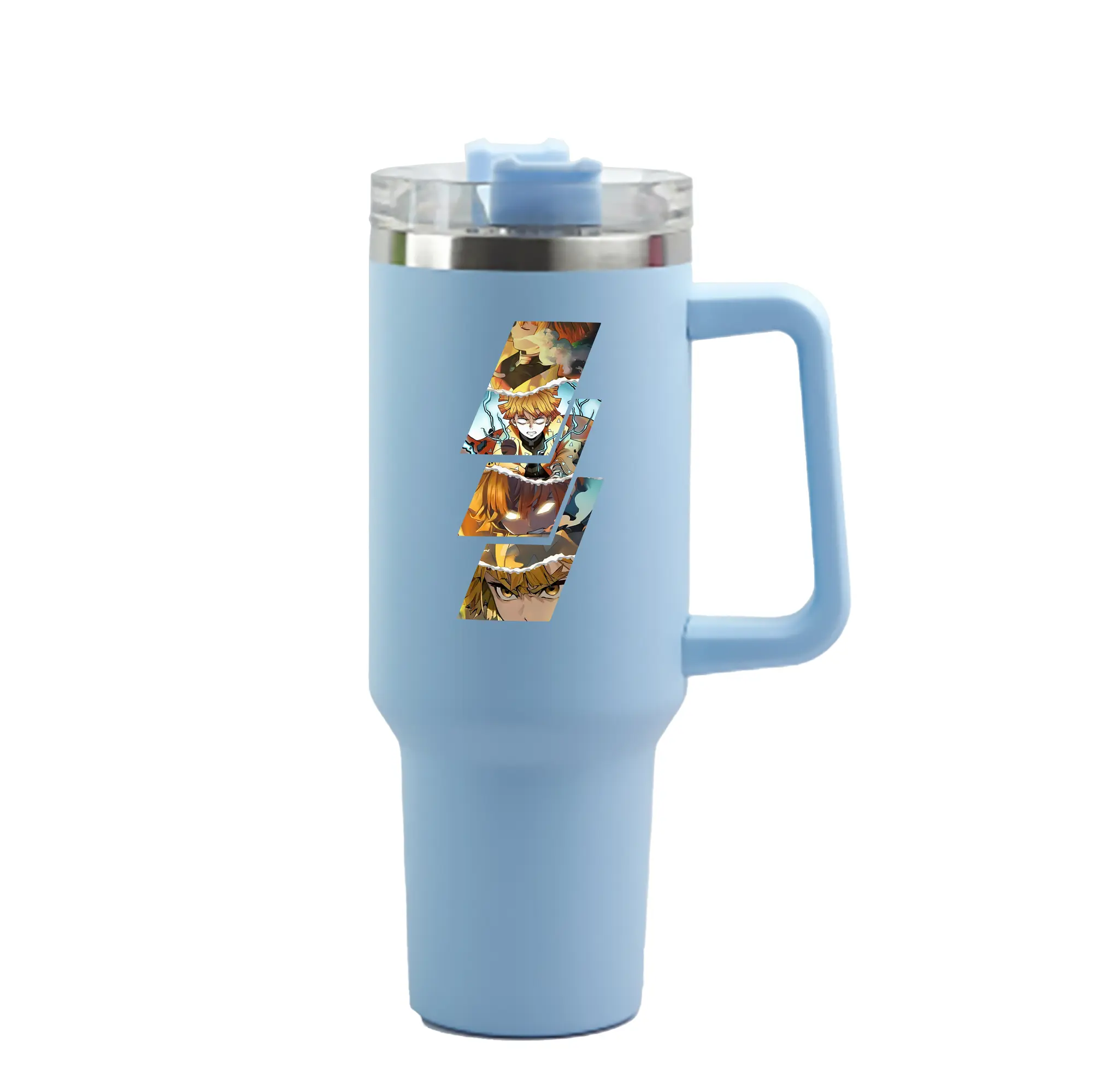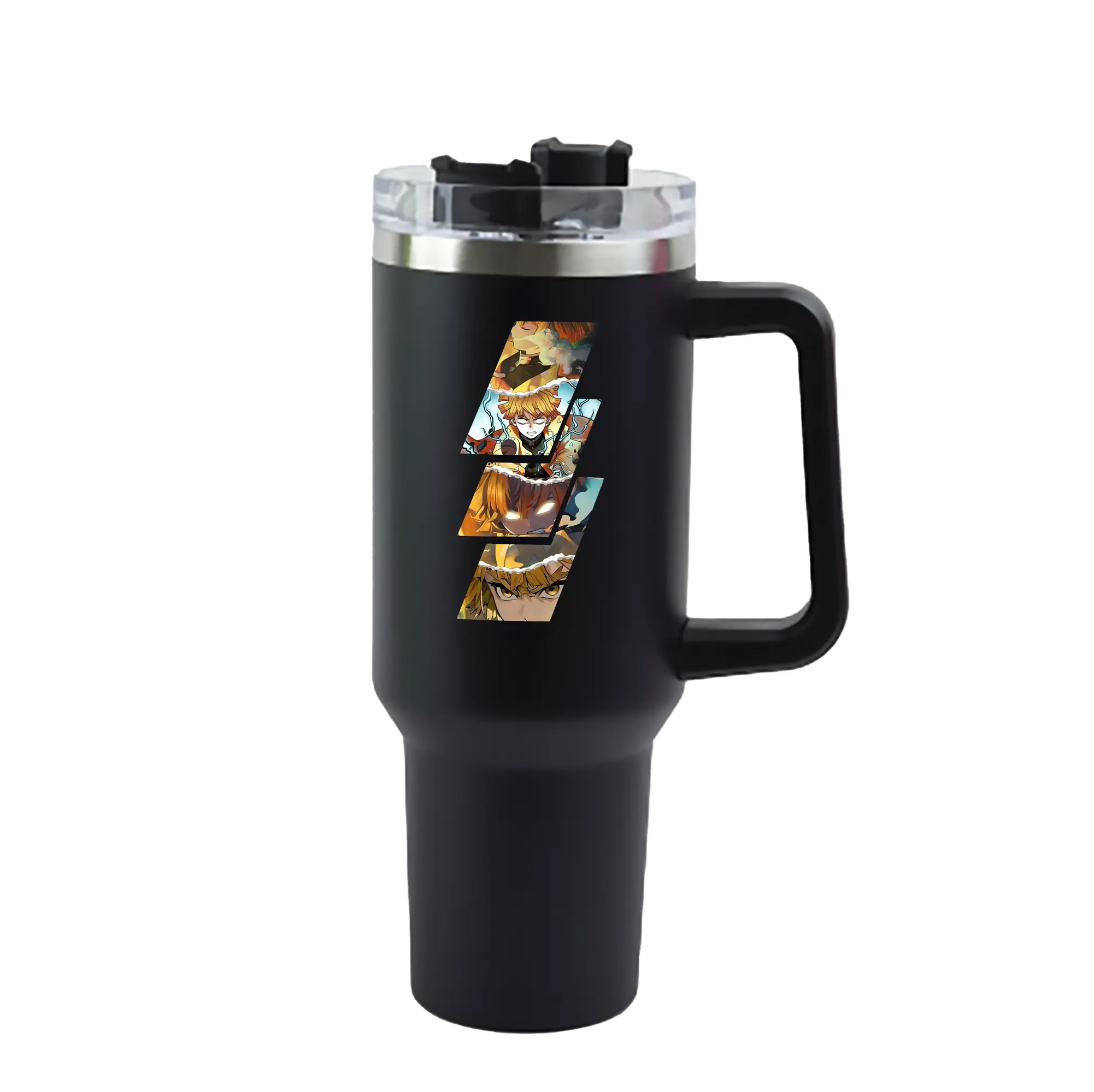 鬼滅の刃 グッズ,我妻 善逸 - 1200mL 車用タンブラー ・ クリスタルステッカー ・ 304ステンレス 内側 ・ 201ステンレス 外側 ・ 保温 保冷 ・ ハンドル&ストロー付き ・ 通勤 ドライブ アウトドア用
