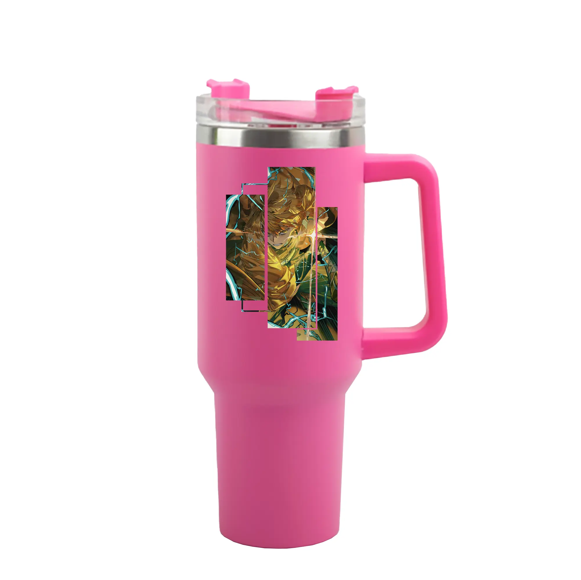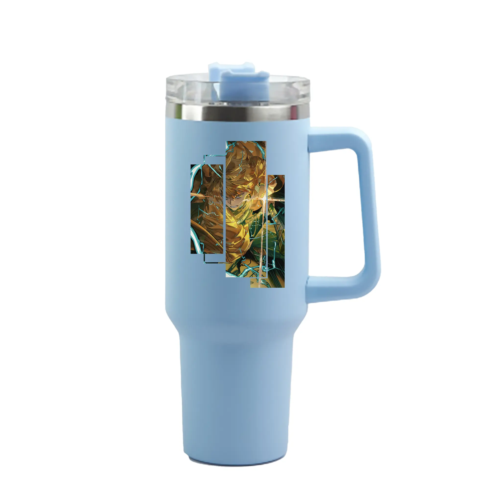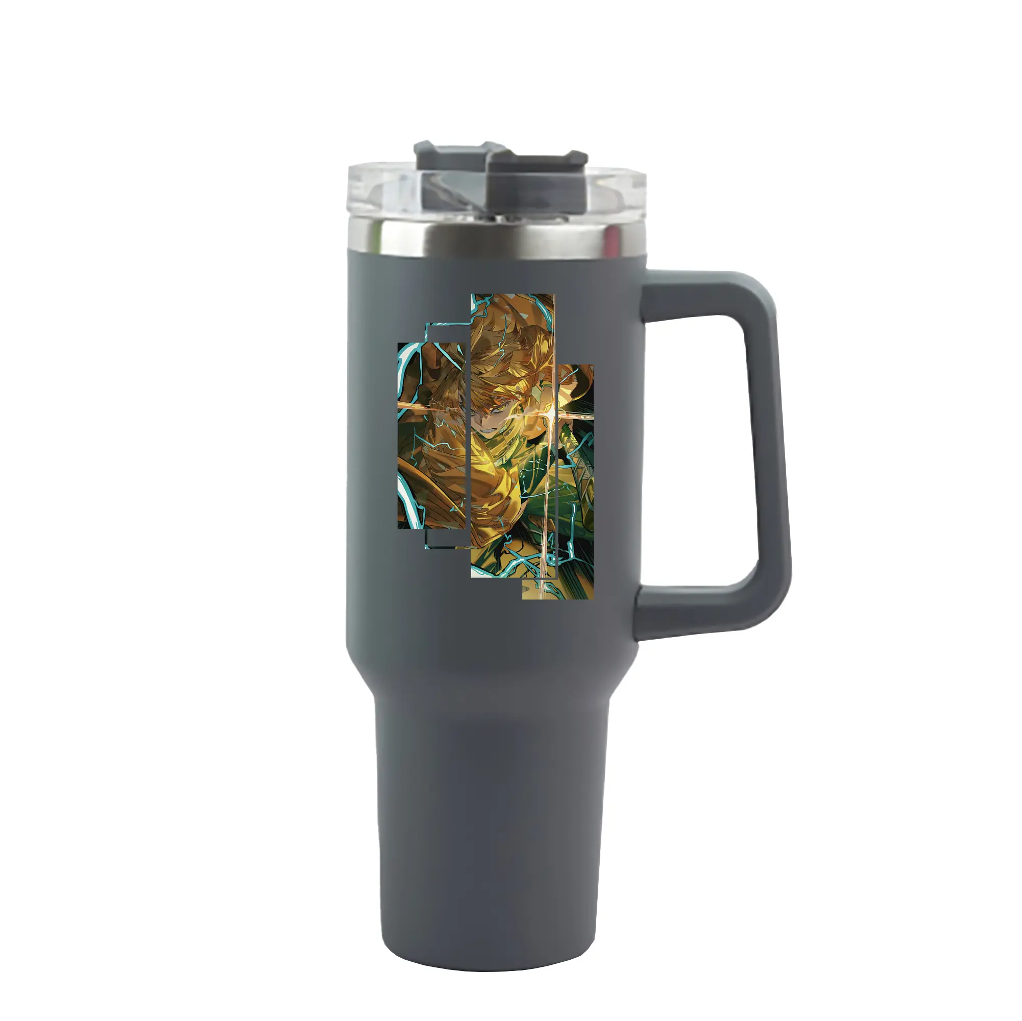 鬼滅の刃 グッズ,我妻 善逸 - 1200mL 車用タンブラー ・ クリスタルステッカー ・ 304ステンレス 内側 ・ 201ステンレス 外側 ・ 保温 保冷 ・ ハンドル&ストロー付き ・ 通勤 ドライブ アウトドア用
