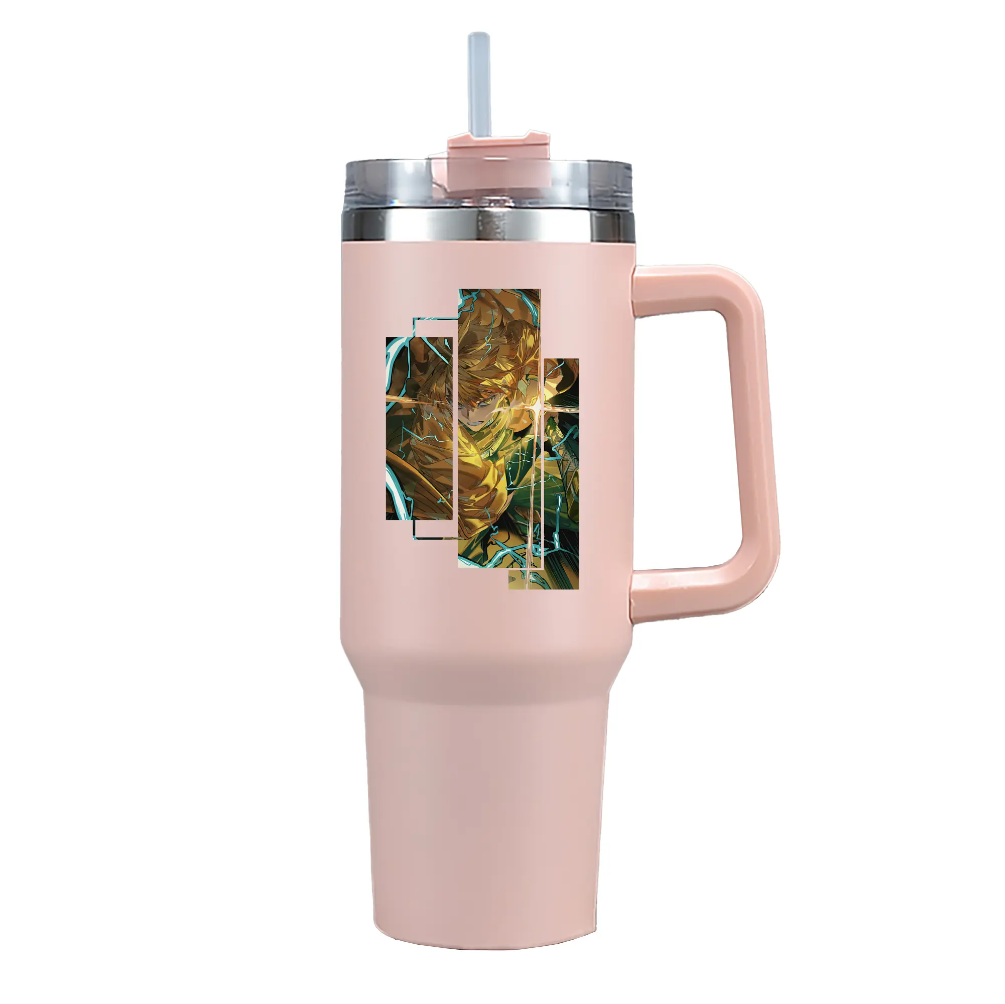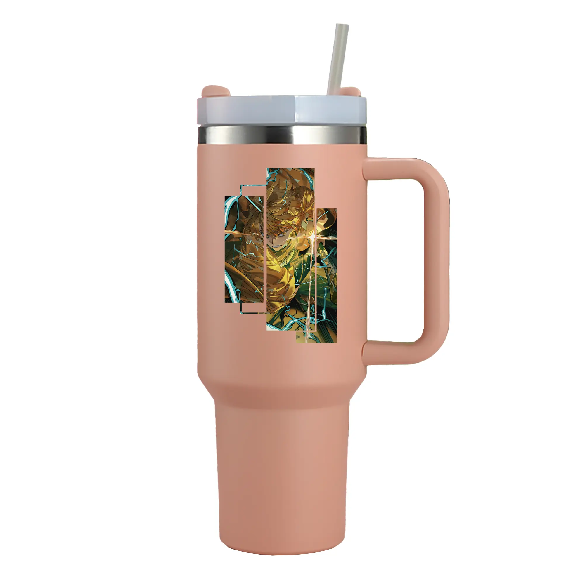 1200mL(40オンス)の大容量ハンドル付きカータンブラー。キラキラと輝くクリスタルステッカーデザインが、毎日の使用に華やかさをプラスします。食品グレード304ステンレスの内側と頑丈な201ステンレスの外側を採用し、耐久性・耐腐食性・安全性を兼ね備えています。