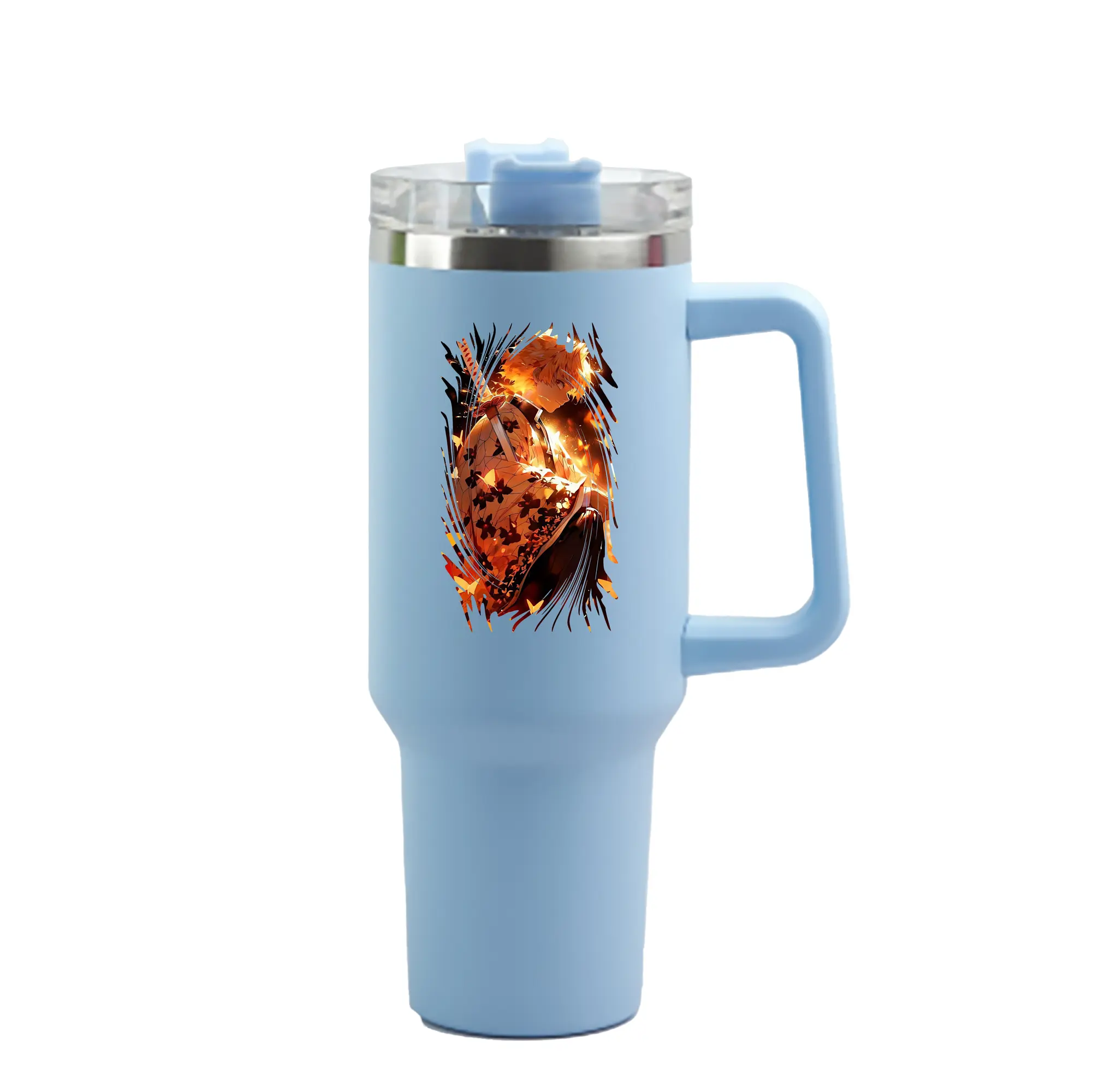 鬼滅の刃 グッズ,我妻 善逸 - 1200mL 車用タンブラー ・ クリスタルステッカー ・ 304ステンレス 内側 ・ 201ステンレス 外側 ・ 保温 保冷 ・ ハンドル&ストロー付き ・ 通勤 ドライブ アウトドア用