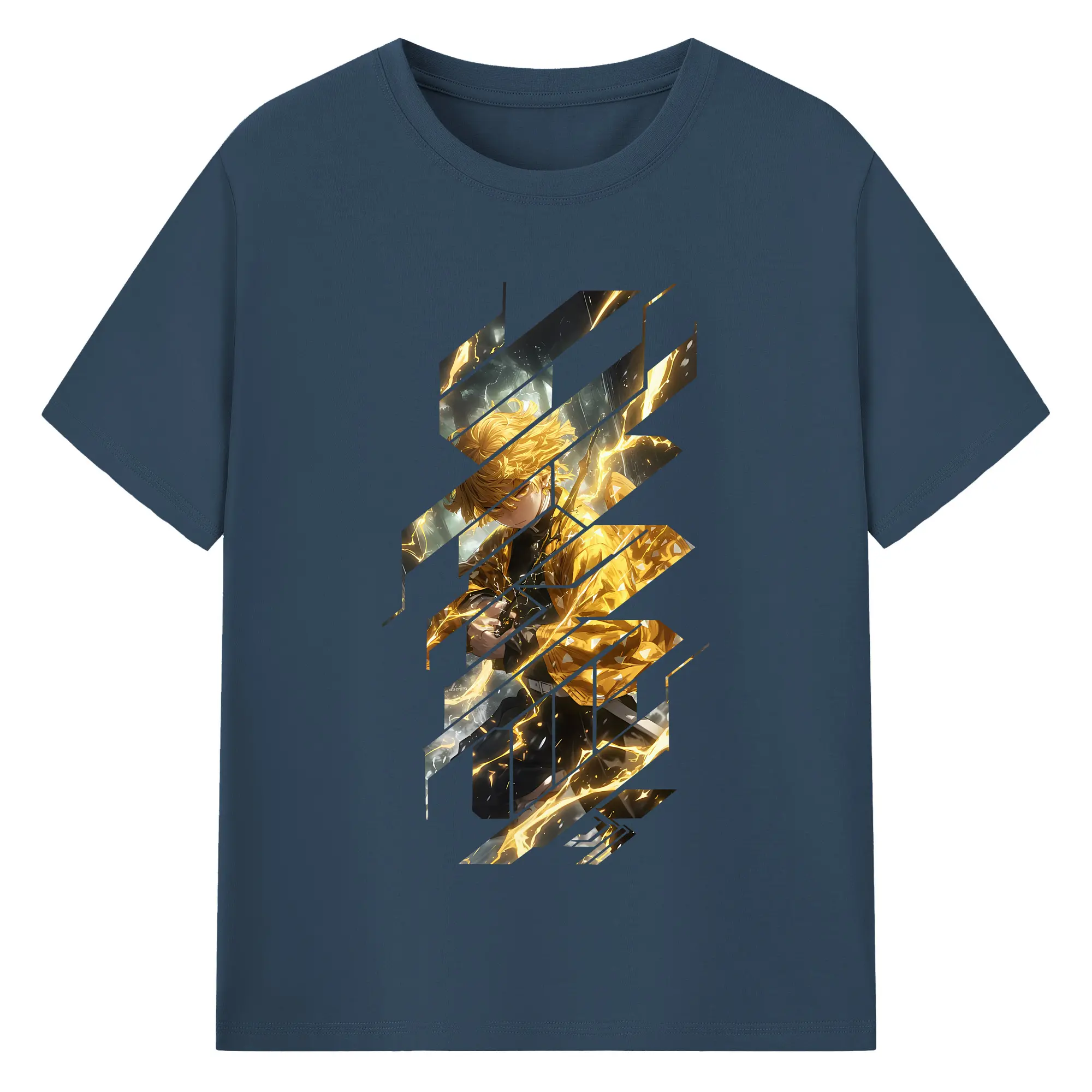 鬼滅の刃 グッズ,我妻 善逸 - 綿100% キッズTシャツ ・ フロントプリント ・ 快適 通気性 ・ スポーツ カジュアル 散歩用