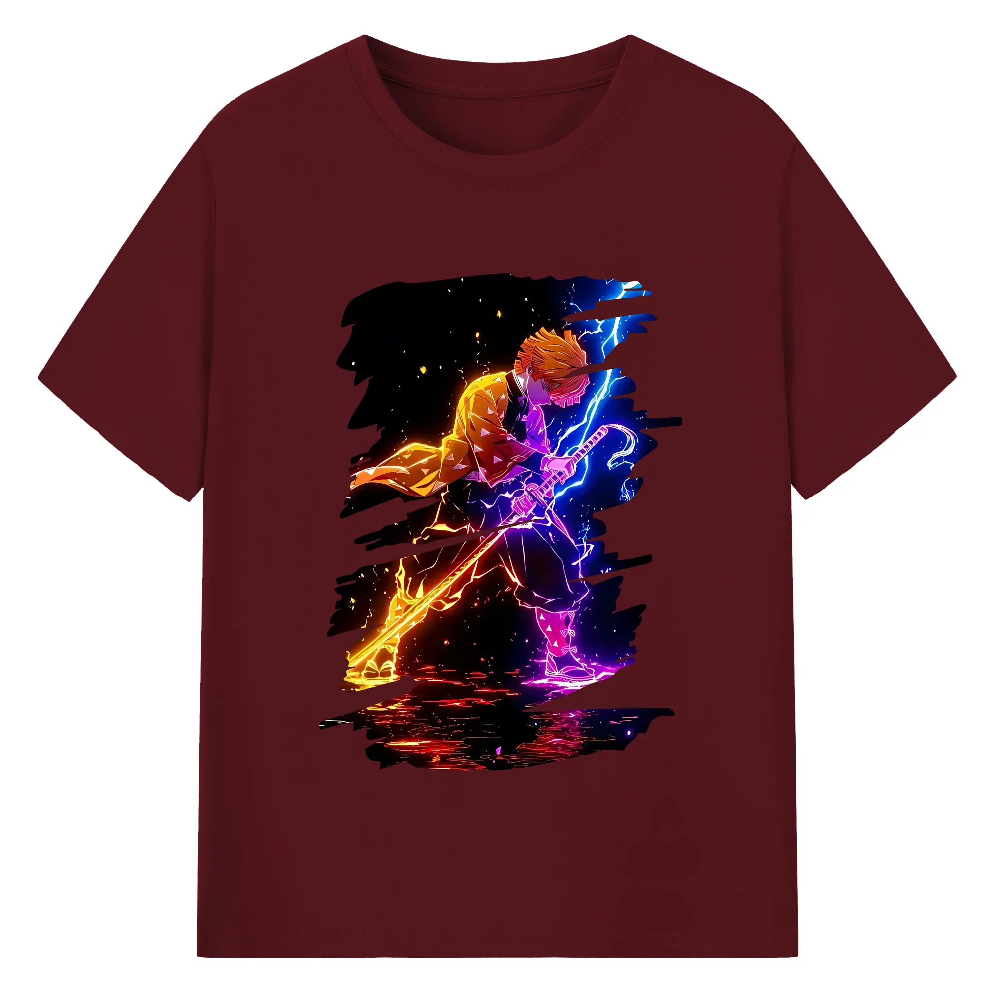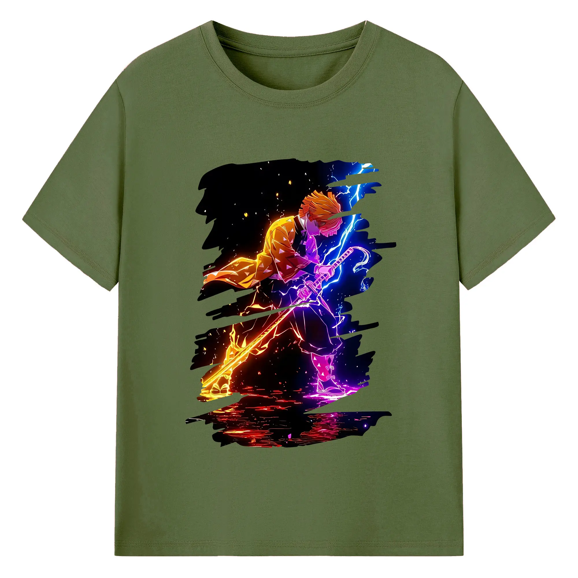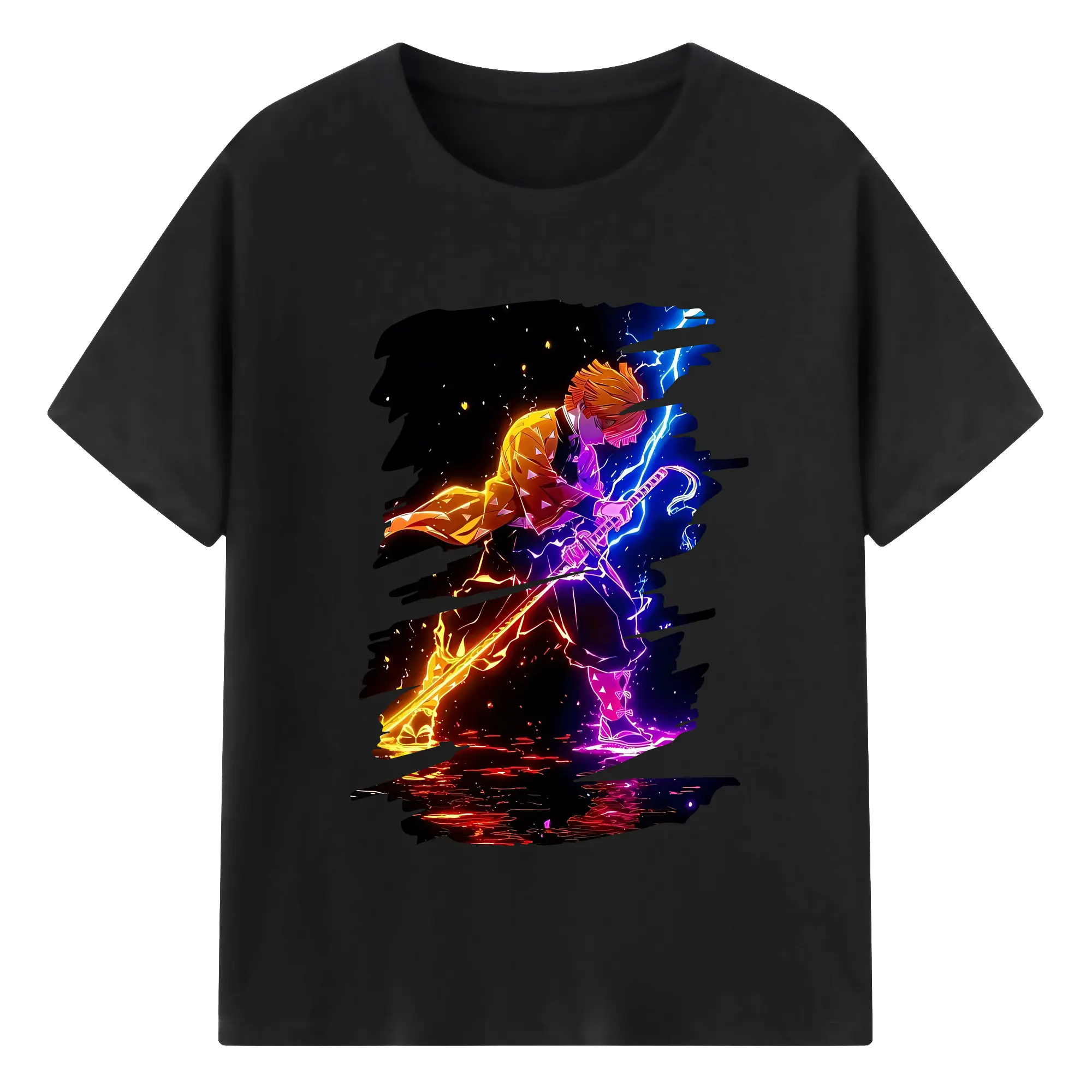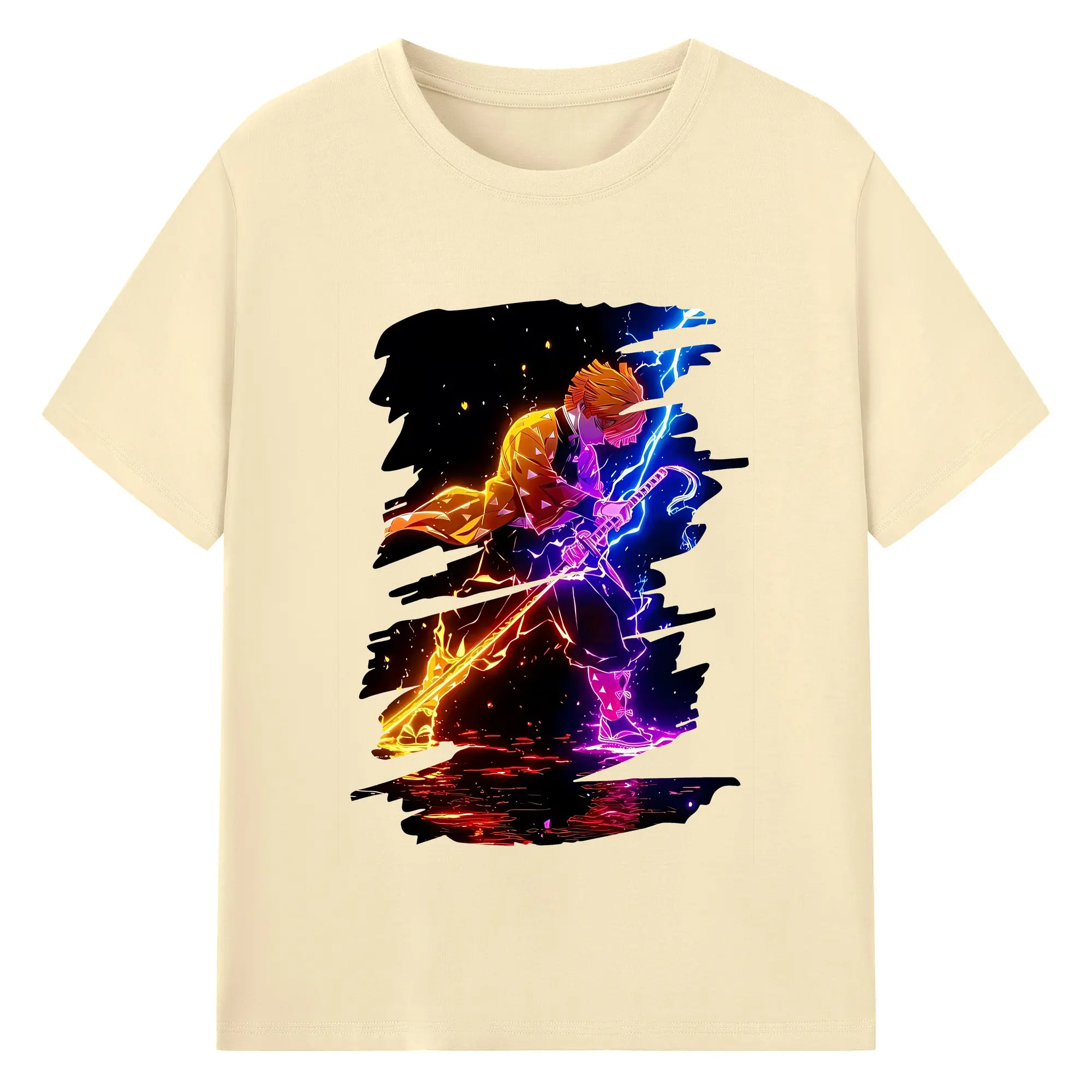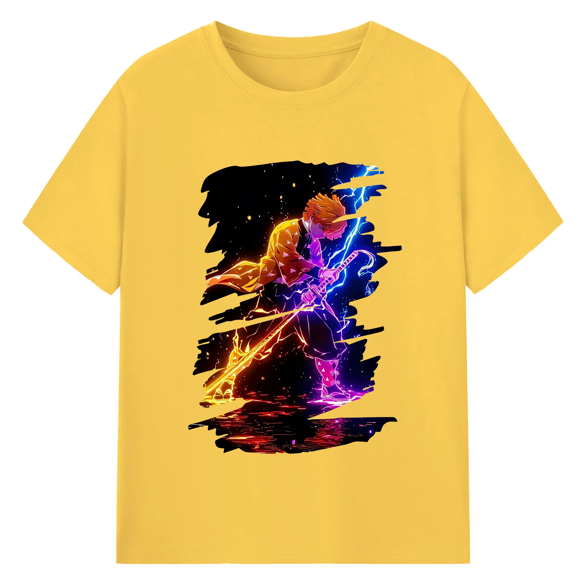 鬼滅の刃 グッズ,我妻 善逸 - 綿100% 半袖Tシャツ ・ バックプリント ・ 快適 通気性 ・ 日常使い 散歩 スポーツ用