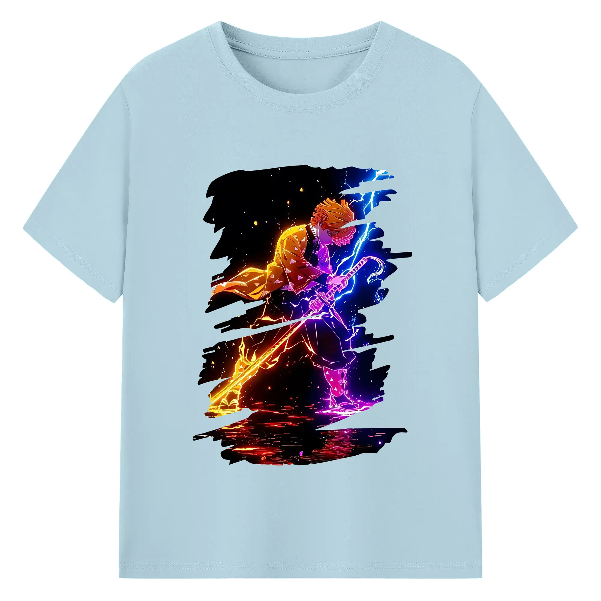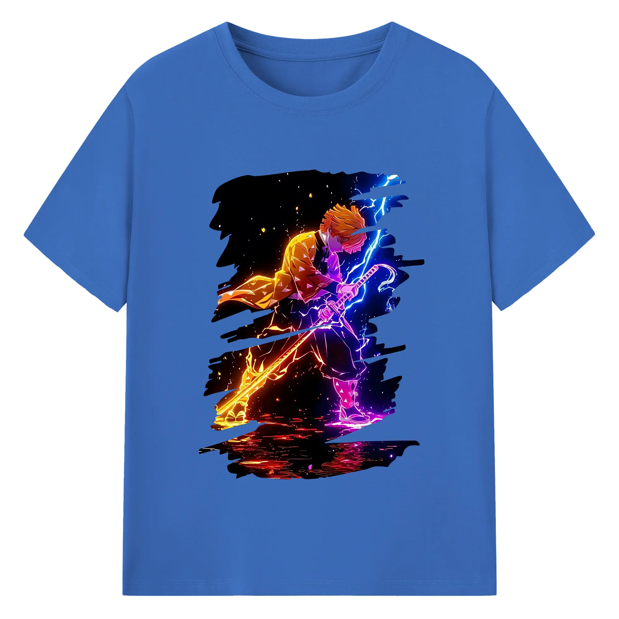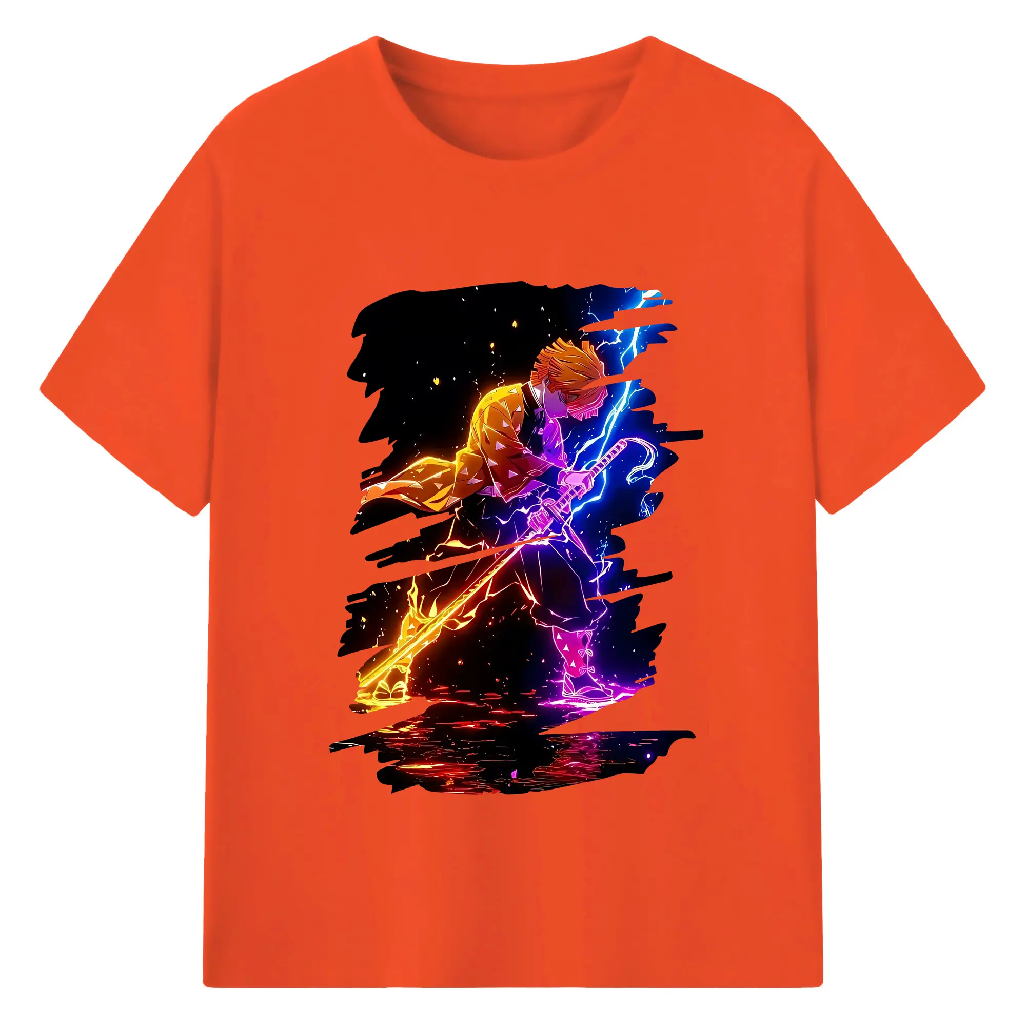 鬼滅の刃 グッズ,我妻 善逸 - 綿100% キッズTシャツ ・ フロントプリント ・ 快適 通気性 ・ スポーツ カジュアル 散歩用