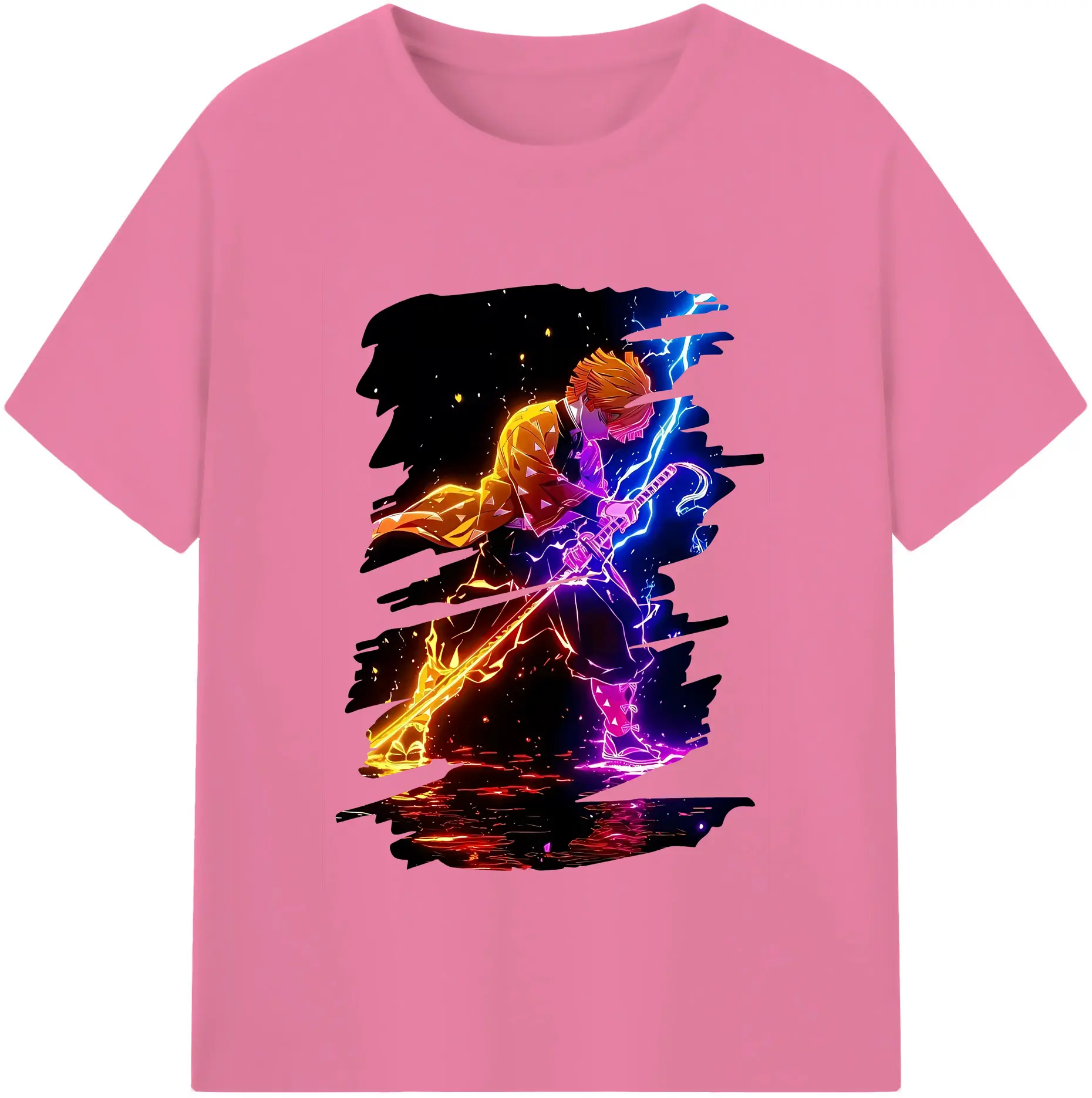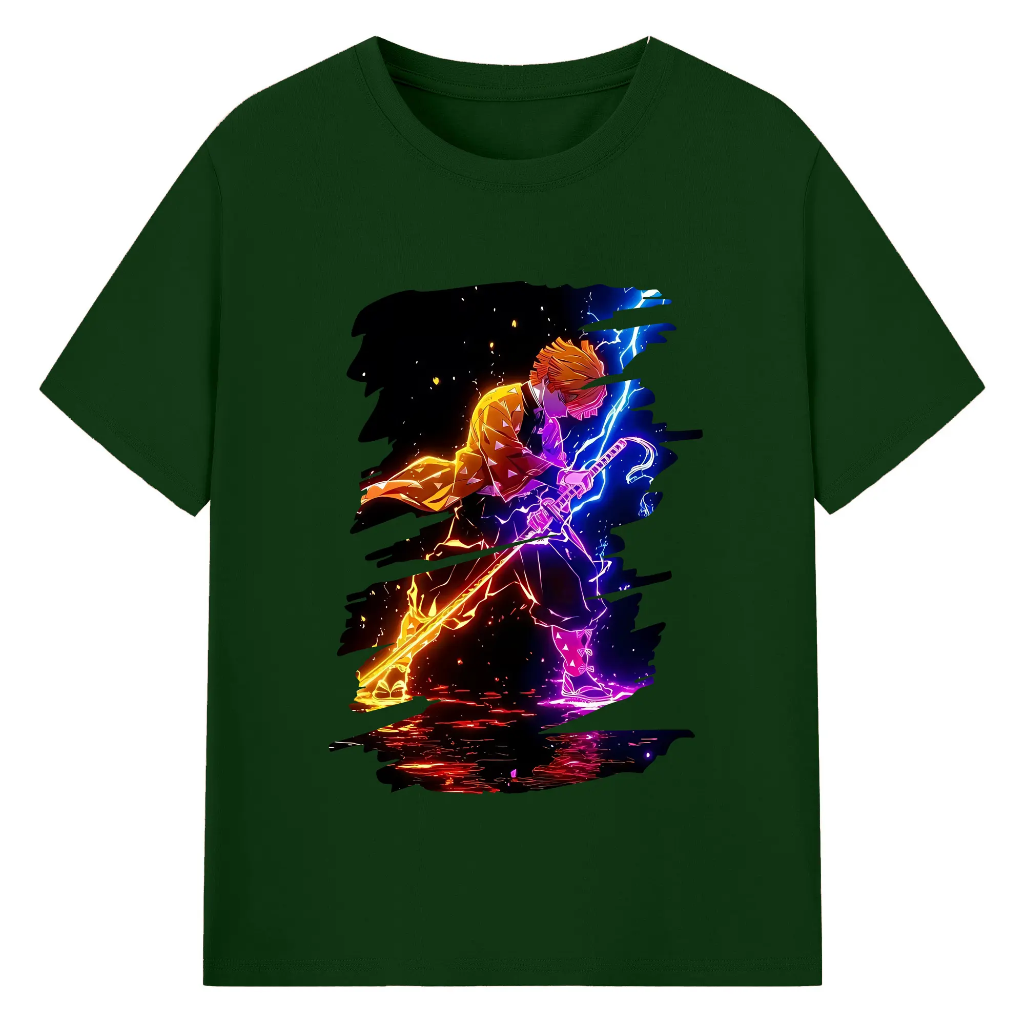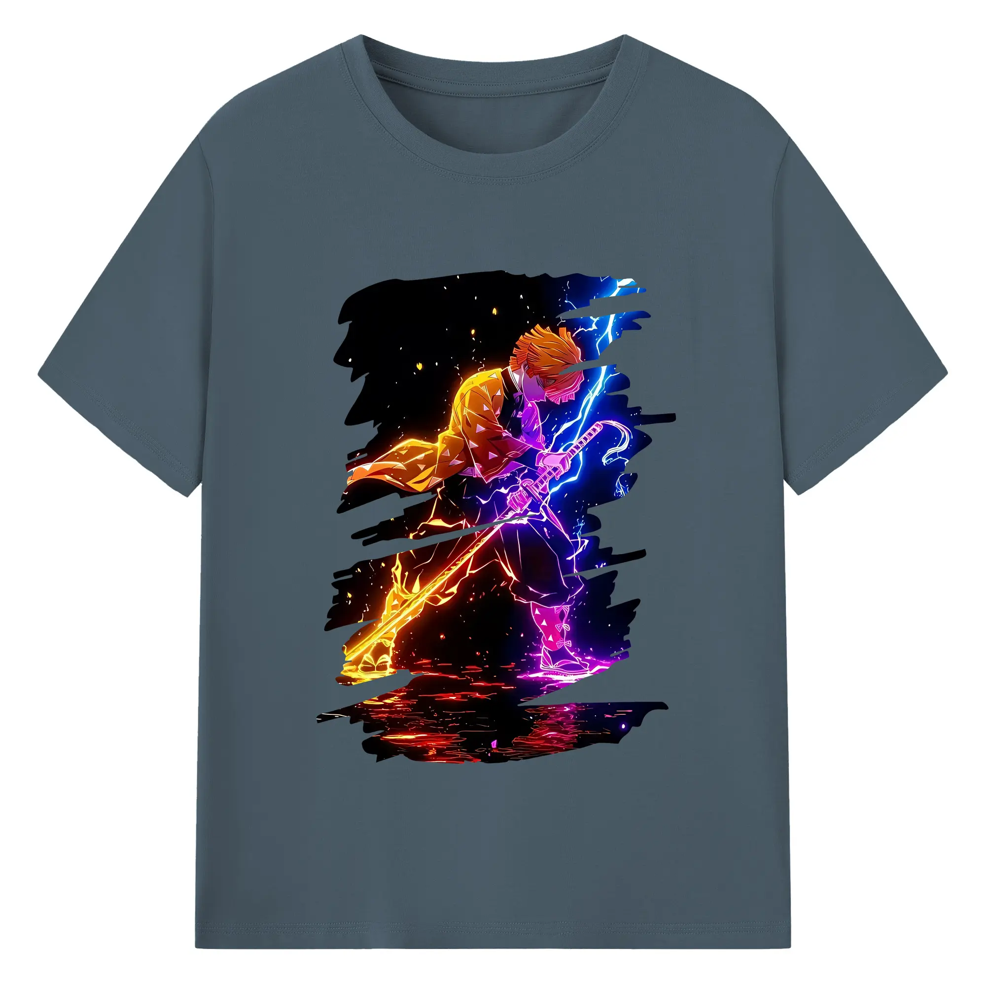 鬼滅の刃 グッズ,我妻 善逸 - 綿100% キッズTシャツ ・ フロントプリント ・ 快適 通気性 ・ スポーツ カジュアル 散歩用