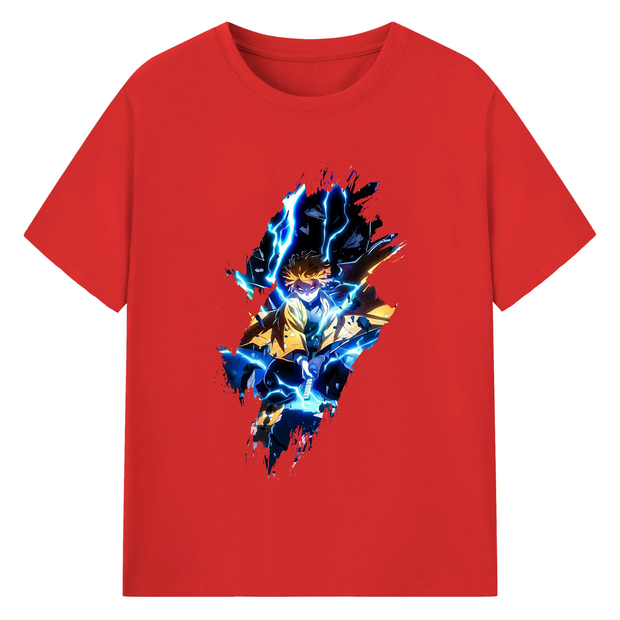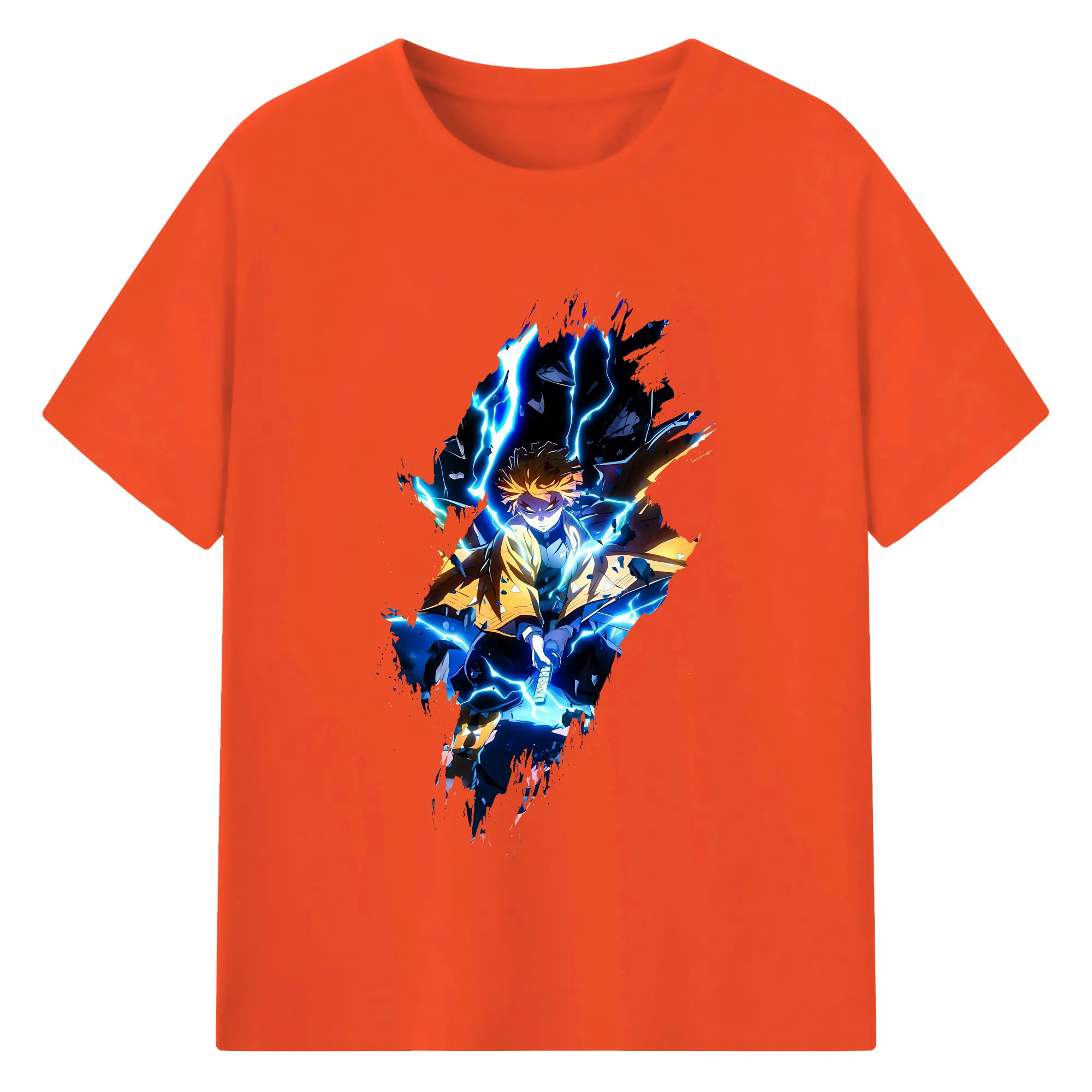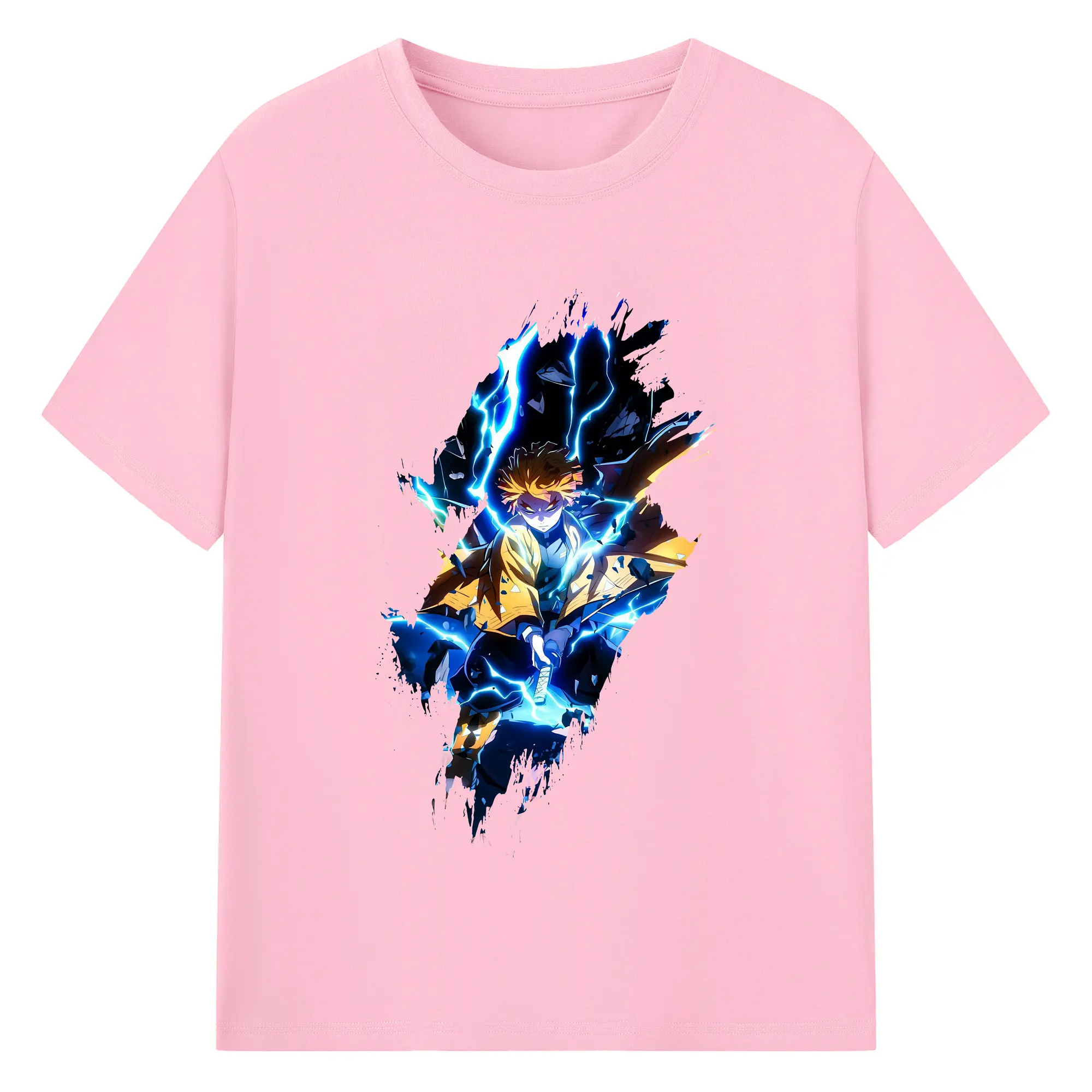 鬼滅の刃 グッズ,我妻 善逸 - 綿100% 半袖Tシャツ ・ バックプリント ・ 快適 通気性 ・ 日常使い 散歩 スポーツ用