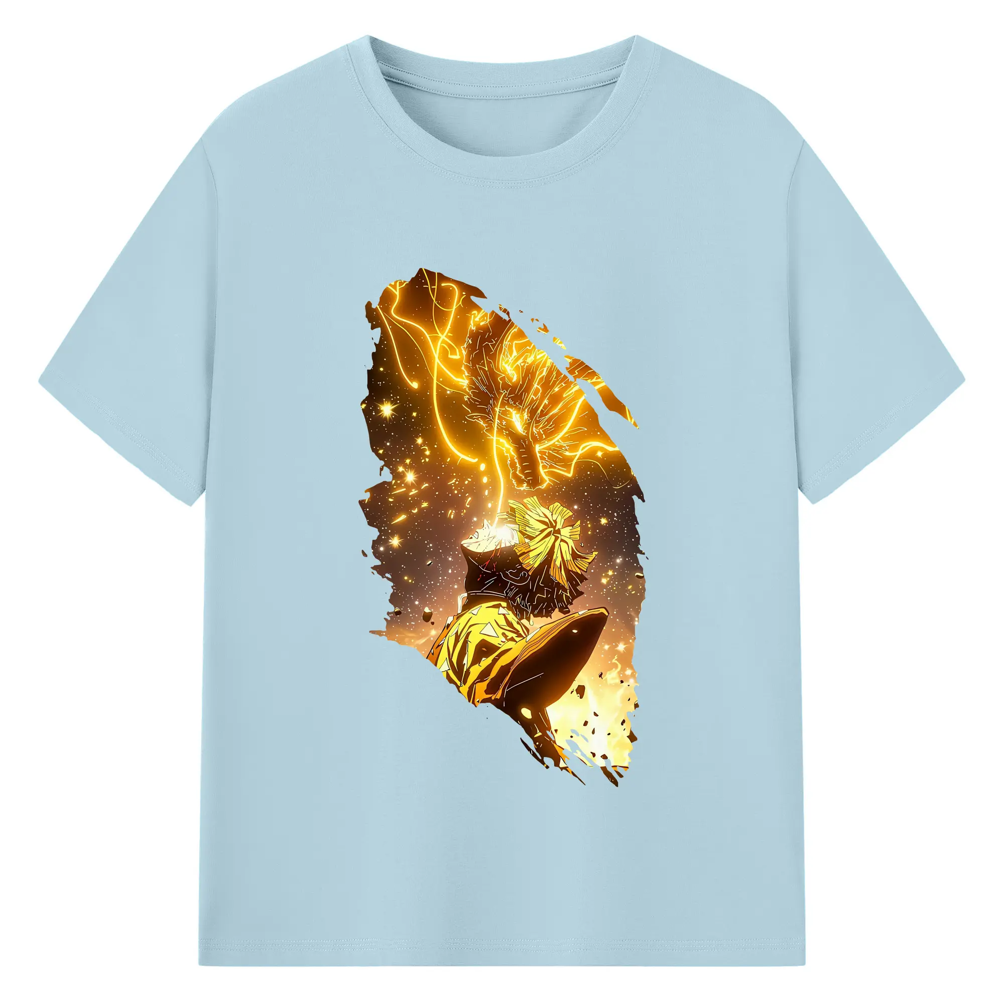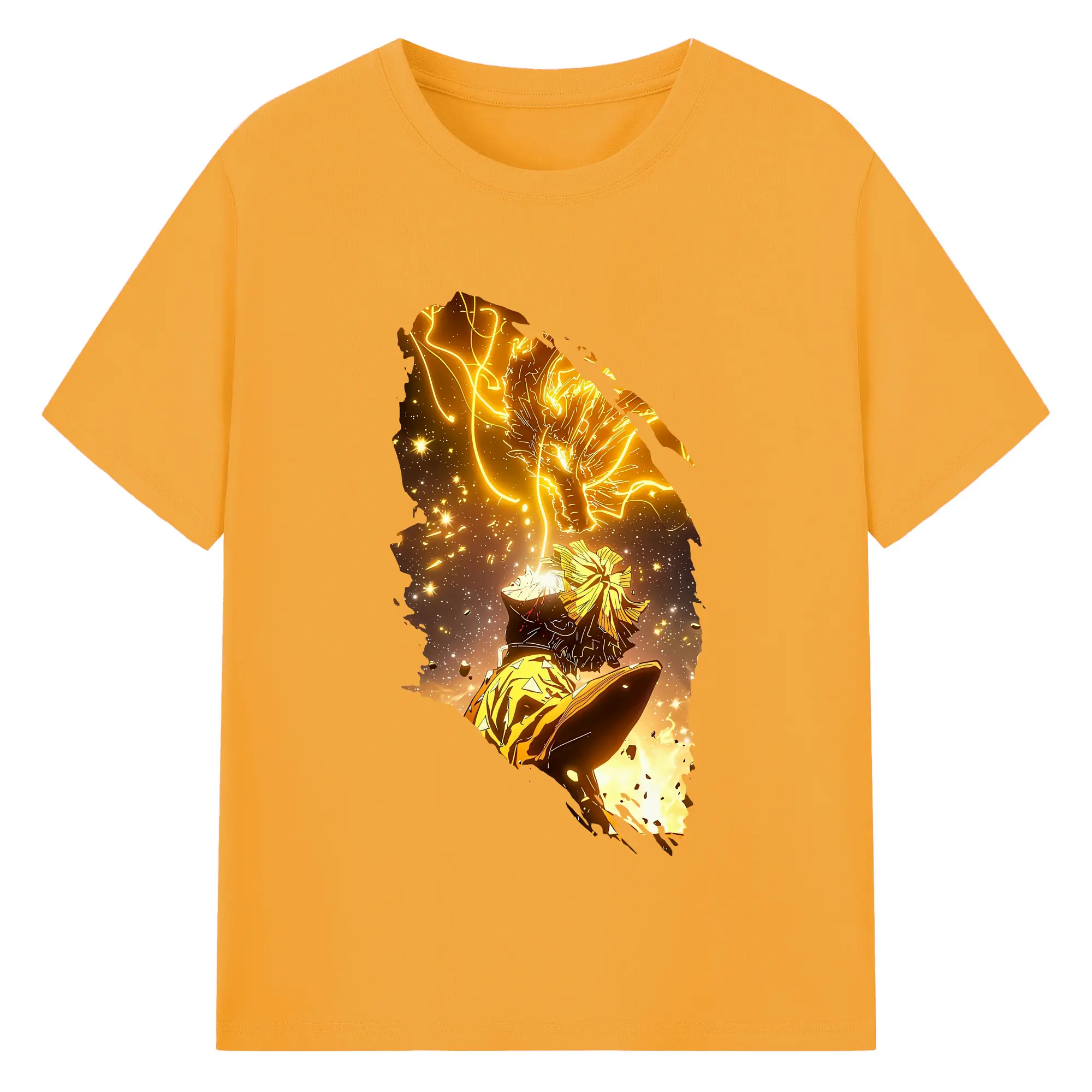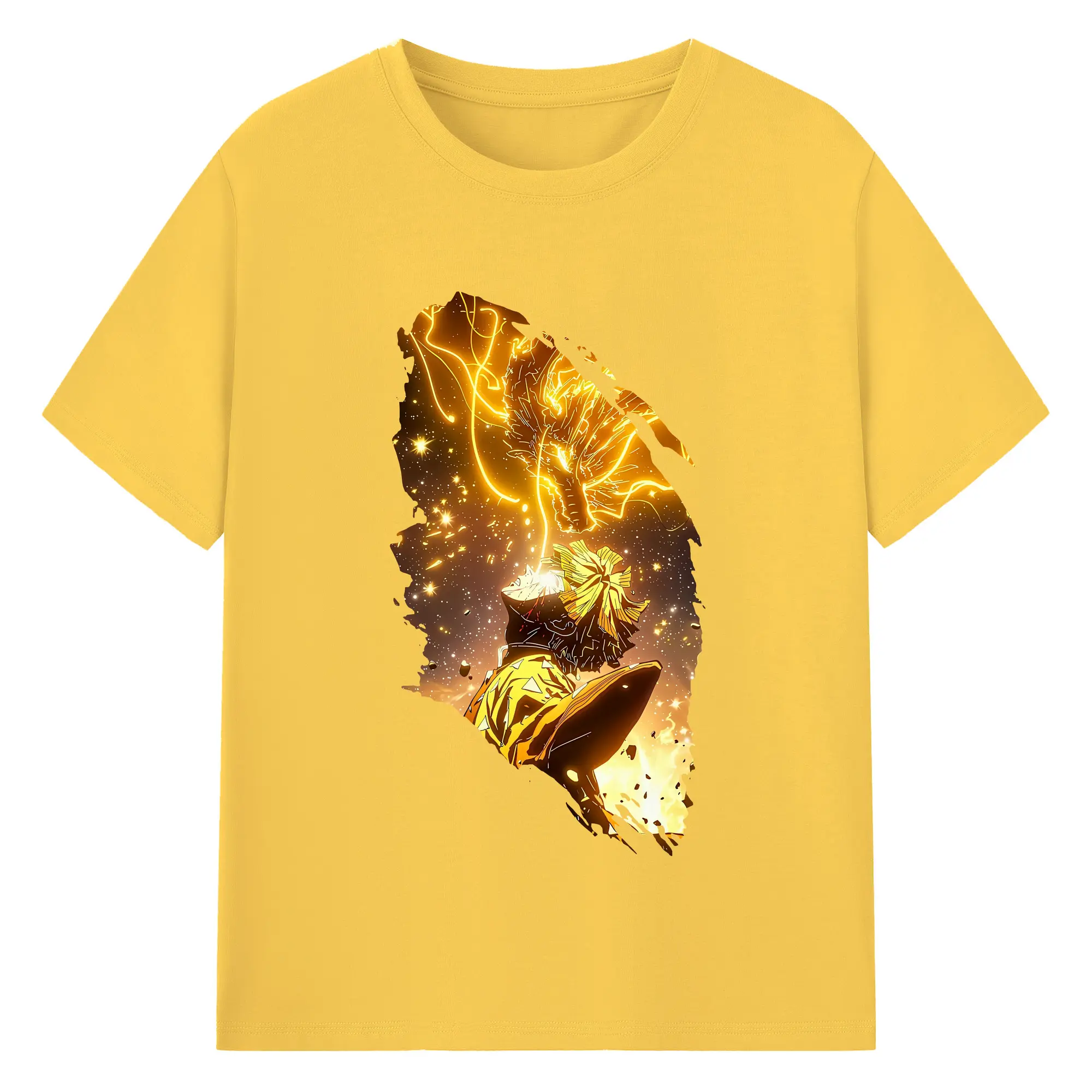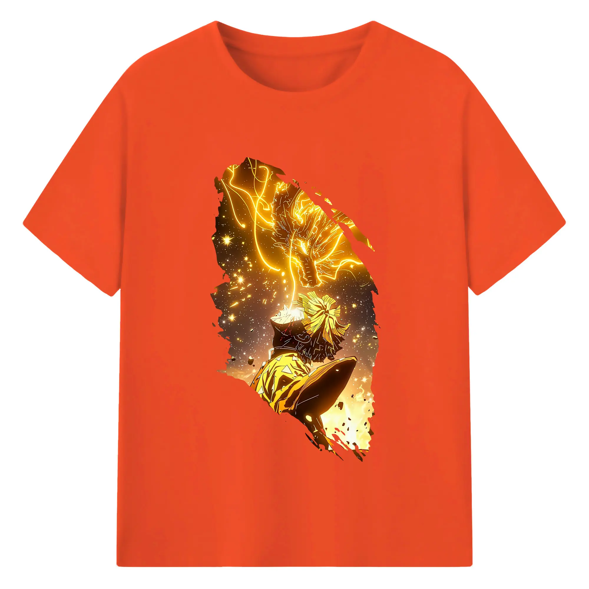 鬼滅の刃 グッズ,我妻 善逸 - 綿100% 半袖Tシャツ ・ バックプリント ・ 快適 通気性 ・ 日常使い 散歩 スポーツ用