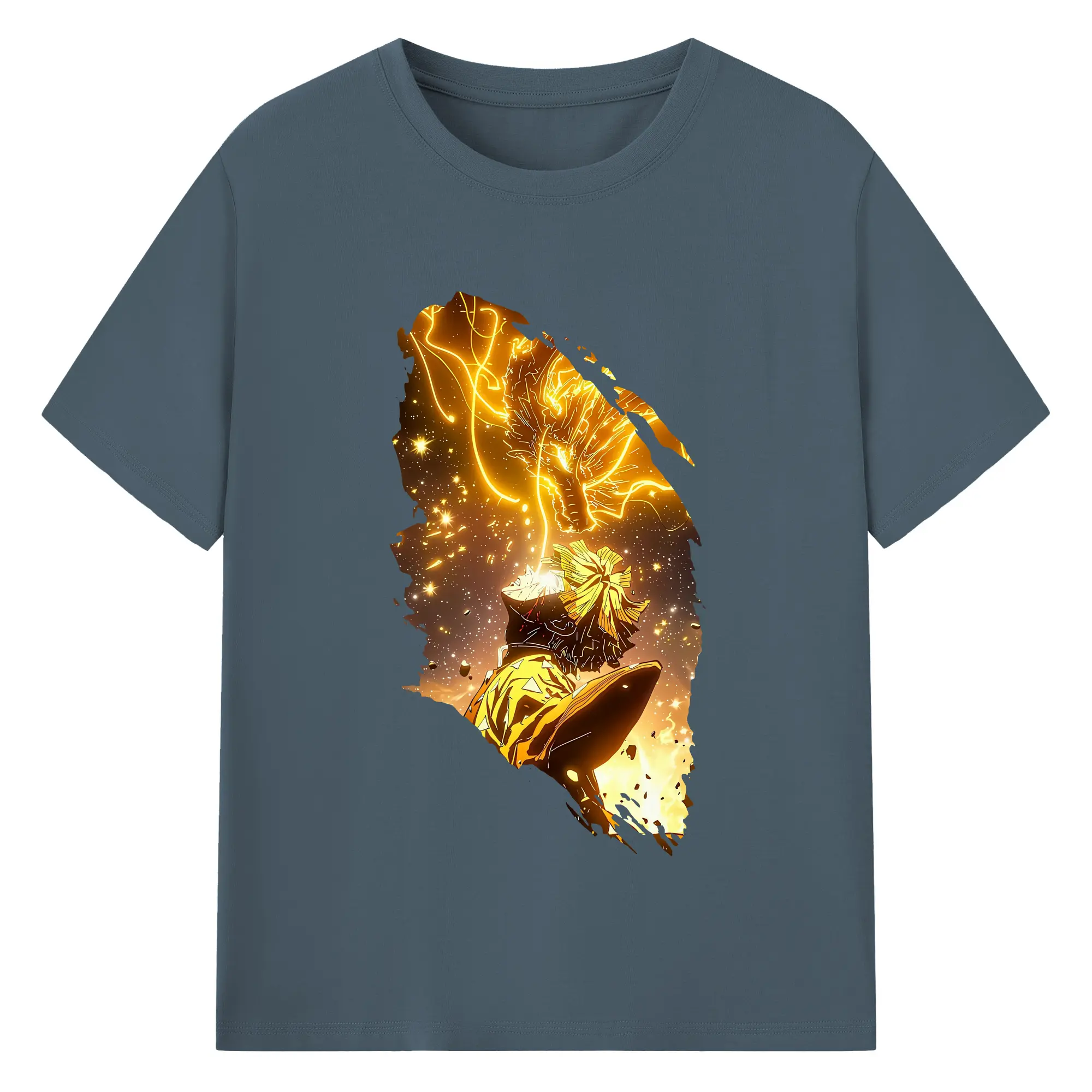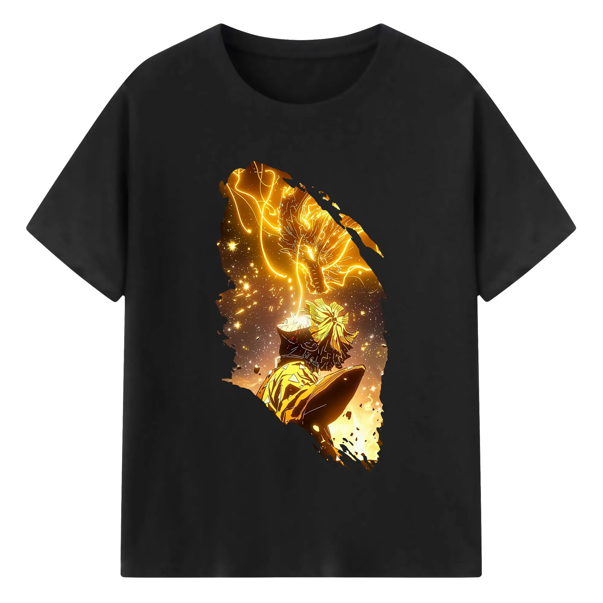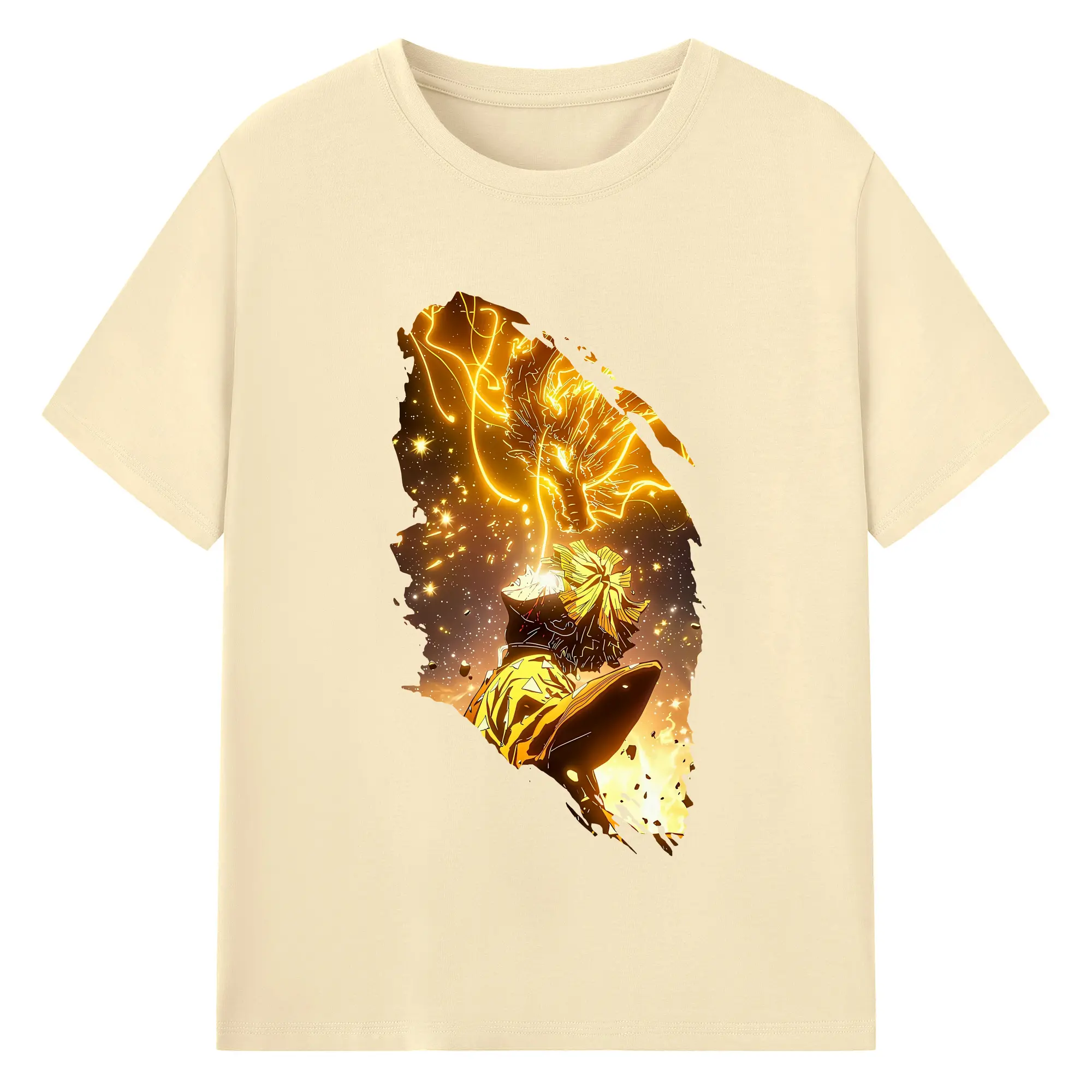 鬼滅の刃 グッズ,我妻 善逸 - 綿100% 半袖Tシャツ ・ バックプリント ・ 快適 通気性 ・ 日常使い 散歩 スポーツ用